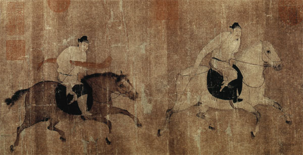 在中國(guó)古代傳統(tǒng)體育項(xiàng)目中,有一種騎在馬上以杖擊球的運(yùn)動(dòng)項(xiàng)目叫做馬球。根據(jù)文獻(xiàn)記述和考古資料證實(shí),這項(xiàng)運(yùn)動(dòng)早在中國(guó)的東漢時(shí)期就已經(jīng)流行于中原地區(qū)。這一運(yùn)動(dòng)形式除了馬以外,主要器械為球和杖。其中的球僅如拳頭大小,是用質(zhì)量輕而有韌性的木料制成的,中間挖空,外邊涂上顏色,一般呈紅色或彩繪,與現(xiàn)代馬球的白色迥異。而打馬球的棍子叫“球杖”或“鞠杖”。由于球棍頂端的彎曲部分形如陰歷月初的“半弦月”,古代詩(shī)歌又常用“月杖”或“初月”來(lái)形容它。如蔡孚《打球篇》中有“初月飛來(lái)畫杖頭”。球杖的質(zhì)地有用木制的,也有用藤制的,外邊裹以牛皮。由于這一運(yùn)動(dòng)形式具有較強(qiáng)的競(jìng)技特點(diǎn),因而在經(jīng)濟(jì)文化發(fā)達(dá)的唐代,成為了一項(xiàng)影響最廣、聲勢(shì)最大的運(yùn)動(dòng)項(xiàng)目。當(dāng)然,它的盛行是與當(dāng)時(shí)統(tǒng)治者的提倡,尤其是與皇帝的愛(ài)好是分不開的。在整個(gè)唐王朝289年間的21個(gè)皇帝中,居然有18個(gè)是馬球運(yùn)動(dòng)的愛(ài)好者。 唐朝自開國(guó)皇帝提倡馬球運(yùn)動(dòng)后,289年間馬球運(yùn)動(dòng)久盛不衰。唐中宗景龍三年,吐蕃派遣使者尚贊咄(官名)來(lái)長(zhǎng)安迎接金城公主。唐中宗邀吐蕃使者觀看漢人比賽馬球,尚贊咄見(jiàn)漢人打球藝術(shù)一般,便上前稟奏唐中宗,要與唐朝馬球隊(duì)比賽。中宗答應(yīng)了吐蕃與漢人交鋒的要求。結(jié)果。經(jīng)過(guò)幾局的較量,“吐蕃皆勝”。唐中宗見(jiàn)吐蕃人球技高超,又派皇室中的馬球高手臨淄王李隆基(就是后來(lái)的唐玄宗)、駙馬楊慎交、武延秀等四人出戰(zhàn)吐蕃十人。開賽之后,李隆基往來(lái)奔馳如風(fēng)回電激,揮動(dòng)球杖,所向無(wú)敵,連連洞穿對(duì)手大門,并大獲全勝。唐中宗大喜,賞賜了優(yōu)勝者。 七年后,唐玄宗登基,其馬球癮不減當(dāng)年。唐玄宗曾數(shù)次登樓觀看打球?!额}明皇打球圖詩(shī)》中說(shuō):“宮殿千門白晝開,三郎沉醉打球回,九齡已老韓休死,明日應(yīng)無(wú)諫疏來(lái)。”唐玄宗登基35年后,也就是天寶六年,頒詔規(guī)定軍隊(duì)須練馬球,由此馬球與軍事體育開始結(jié)緣。由于唐玄宗的球癮名揚(yáng)天下,于闐國(guó)特派使臣送給玄宗兩匹專門用于打馬球的馬。因?yàn)楫?dāng)時(shí)交通不便,從于闐(現(xiàn)新疆南部)到長(zhǎng)安,少說(shuō)要走半年,可謂萬(wàn)里迢迢。 在唐玄宗以后的皇帝中,唐穆宗李恒算得上是一個(gè)馬球迷了,以致因打球受傷而喪命。穆宗死后,繼位后的唐敬宗李湛也是日夜打球,并從各地招來(lái)一些馬球選手,一起打球,不理國(guó)事,以致引起人們的強(qiáng)烈不滿。寶歷三年,敬宗與馬球?qū)⑻K佐明等28人一起喝酒時(shí),終被蘇佐明殺掉,時(shí)年18歲。 唐代的幾個(gè)球迷皇帝中,要算唐宣宗李儇的球技最高。他擊球時(shí):“每持鞠仗乘勢(shì)奔躍,運(yùn)鞠于空中,連擊數(shù)百而馬馳不止,迅若雷電,兩年老手咸服其能”。而其后的唐僖宗竟然還想出了“擊球賭三川”的花點(diǎn)子。那是在與四位大臣一起擊球時(shí),“以先得球而擊過(guò)球門者為勝,先勝者得第一籌”。比賽結(jié)果,大臣敬以贏球的方式贏得了三川節(jié)度使的職位。此事雖說(shuō)荒唐,但也可以看出當(dāng)時(shí)的打馬球已發(fā)展到何等狂熱的程度了。 唐昭宗李曄是唐代最末一個(gè)皇帝,也是朱全忠的傀儡。當(dāng)他被朱全忠逼迫遷都洛陽(yáng)時(shí),六軍都已逃散。盡管如此狼狽,他還將十幾個(gè)馬球手帶在身邊不離左右,可見(jiàn)當(dāng)時(shí)唐朝宮廷中是如何沉湎于馬球了。 由于統(tǒng)治者的大力提倡和帶頭參與,馬球運(yùn)動(dòng)也普及到了民間,甚至婦女也成為馬球活動(dòng)的參與者。前蜀王建的“新調(diào)白馬派鞭聲,隔門摧進(jìn)打球名”指的就是皇宮內(nèi)宮女們的擊球情景。而他的妃子花蕊夫人的詩(shī)句“自教宮娥學(xué)打球,玉銨初跨柳腰柔”,同是形容女子打球優(yōu)美、活潑的姿勢(shì)。 中國(guó)古代的馬球運(yùn)動(dòng)從唐朝開始,一直到明朝,前后沿續(xù)了1000多年,演繹出許多故事,流傳下不少詩(shī)篇。遺憾的是,盛唐時(shí)的馬球熱在進(jìn)入清代后期以后,隨著西方文化的東漸和傳入的西方現(xiàn)代體育的沖擊,已經(jīng)逐漸地銷聲匿跡了。如今,我們國(guó)家開展的馬球運(yùn)動(dòng)也是從西方引進(jìn)來(lái)的。 文/崔樂(lè)泉 |