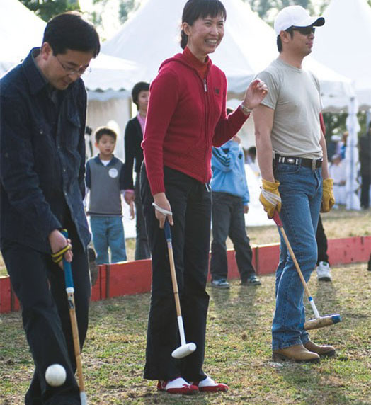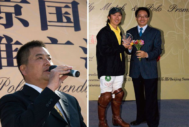 “2008北京國際馬球友誼賽暨馬球推廣沙龍”于10月11日-12日盛大開場(chǎng)。這場(chǎng)由《馬術(shù)》雜志和《Best Life 香格里拉》雜志聯(lián)合主辦的活動(dòng),在組織者的努力以及京城馬球圈兒的鼎力支持下,最終贏得了球手和來賓們的一致贊譽(yù)。 球手和賽馬 在秋意盎然的陽光時(shí)代馬球俱樂部,七項(xiàng)潔白的帳篷映在果實(shí)累累的山楂樹下,由中外馬球好手組成的黃、藍(lán)、白、紅四支球隊(duì)上場(chǎng)角逐。打馬球,雄厚的經(jīng)濟(jì)實(shí)力和充裕的時(shí)間缺一不可,當(dāng)然還需要有扎實(shí)的騎術(shù)基礎(chǔ)。因此,目前北京地區(qū)能參與馬球比賽的選手不超過40人,且相對(duì)集中在北京及周邊地區(qū)。本次友誼賽幾乎盡攬了北京所有的馬球好手,既有中國馬協(xié)馬球委員會(huì)主任夏陽,也有熱愛馬球、多次參加各國馬球賽事的景鴻投資公司董事長(zhǎng)劉詩來,年僅23歲就身為英國斯特靈大學(xué)馬球隊(duì)隊(duì)長(zhǎng)的劉漉崴,著名廣告導(dǎo)演蘇榮,馬球好手霍剛、劉南、李益民、馬云龍等。特邀的外國選手有客居中國的Oliver和Henry??偛门杏蓙碜园⒏⒌陌⒌婪?洛佩茲(Adolfo Lopez)擔(dān)任,他是3級(jí)馬球手和旅英馬球教練。本次比賽同時(shí)匯集了俱樂部和馬主會(huì)員的近40匹馬球馬參賽,其中大多為訓(xùn)練有素的專業(yè)馬球馬。 香檳四溢,豪情滿懷。為比賽的勝利,也為整個(gè)活動(dòng)的順利圓滿。 本屆贊助商 本次比賽注重馬球的推廣和嘉賓的參與,圖為來賓地桿擊球游戲。 (左圖)中國馬術(shù)協(xié)會(huì)秘書長(zhǎng)成慶致開幕詞。 (右圖)中央電視臺(tái)著名體育主持人蔡猛先生作為嘉賓主持頒獎(jiǎng)。 賽事組織者合影留念。 潔白的帳篷,藍(lán)藍(lán)的天,合著快樂的心情。 |