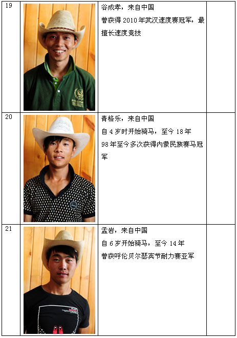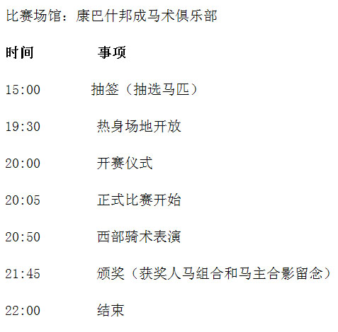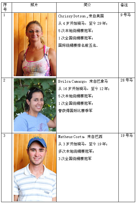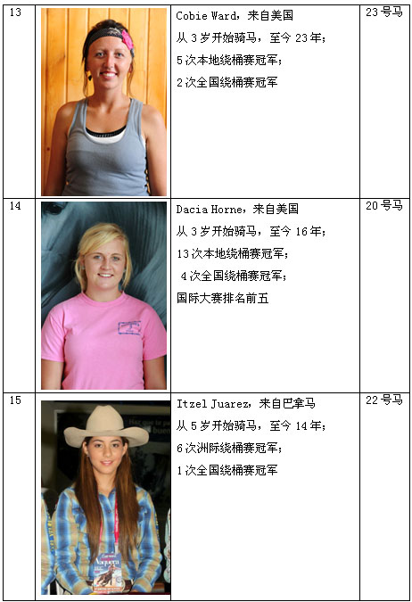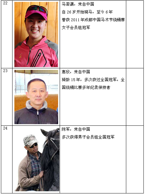 繞桶賽的由來及簡介 繞桶賽起源起于美國西部鄉(xiāng)村,起初是牛仔們農(nóng)閑時(shí)的一種游戲,在游戲中漸漸的發(fā)現(xiàn)繞桶極具趣味性,競爭性,它既鍛煉了馬匹的靈活性,又提高了騎手的騎乘水平因此參與的人越來越多,這種游戲也逐漸發(fā)展成為一種賽事。如今,在美國,繞桶賽很普及,最高獎(jiǎng)金數(shù)額百萬美元;同時(shí)美國培育了一種“夸特” 馬,以適應(yīng)高水平的比賽。它的國際最好成績?yōu)?2秒65。 繞桶賽進(jìn)入我國只有幾年時(shí)間,但參與的愛馬人士和觀眾迅速增加,已逐漸成為一種頗具趣味性,大眾性的馬術(shù)運(yùn)動(dòng)項(xiàng)目。 競賽規(guī)程 一、競賽項(xiàng)目: 西部繞桶賽 二、競賽辦法: 本次比賽是遵照中國馬術(shù)協(xié)會繞桶賽競賽規(guī)則的精神,結(jié)合中國西部牛仔繞桶賽競賽規(guī)則并根據(jù)中國目前馬匹、騎手水平和繞桶賽現(xiàn)狀而制定的競賽規(guī)則。 1.一個(gè)參賽者騎馬比賽,從馬鼻穿過開始線的任何時(shí)間開始計(jì)時(shí),以馬鼻沖過完成線為結(jié)束計(jì)時(shí)。開始線和完成線為同一條線。 2.參賽者沒有繞行任何一個(gè)桶或未按上述規(guī)定的線路繞行,比賽成績無效。 3.參賽者撞翻桶加5秒。如果碰到桶沒有被撞倒或用手扶桶是允許的,不被懲罰。 4.參賽者在比賽中從馬上掉落或騎馬摔倒本輪比賽不計(jì)成績。 5.比賽要求采用美國西部服裝裝飾。包括西部風(fēng)格的襯衫,牛仔帽子,牛仔靴,牛仔褲及腰帶。任何人不得違背規(guī)定。否則不允許進(jìn)場參賽。 6.比賽不允許使用馬刺和馬鞭。 7.參賽者聽到裁判員指令后才能進(jìn)場參賽,否則成績無效。 8.比賽采用電子計(jì)時(shí)系統(tǒng)(手動(dòng)計(jì)時(shí)備用)。 比賽分兩輪進(jìn)行。名次按兩輪比賽中成績最好的一輪決定名次。成績相同,則名次并列。 三、裁判員和仲裁: (一)裁判員名單詳見裁委會名單,不足部分由承辦單位選派。 (二)仲裁委員會成員職權(quán)范圍,按《仲裁委員會條例》的有關(guān)規(guī)定執(zhí)行。 (三)賽會只接受書面投訴,不接受口頭投訴,投訴需在該項(xiàng)賽事結(jié)束后一小時(shí)內(nèi)。 四、錄取名次和獎(jiǎng)勵(lì): 比賽錄取前6名,頒發(fā)獎(jiǎng)金、獎(jiǎng)杯及證書。 五、其它: 未盡事宜,由組委會另行通知。 比賽日程 競賽日期:2012年8月10日 參賽騎手介紹 |