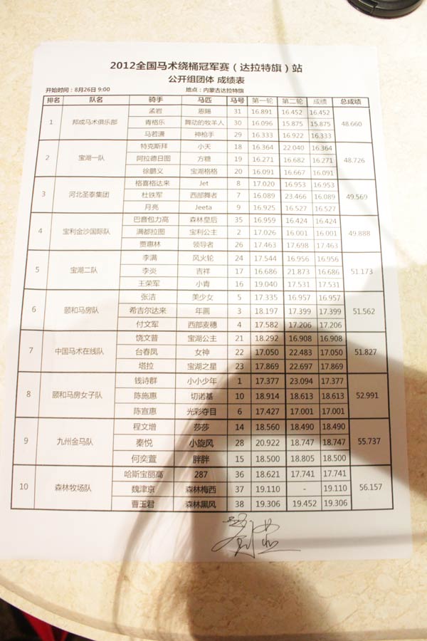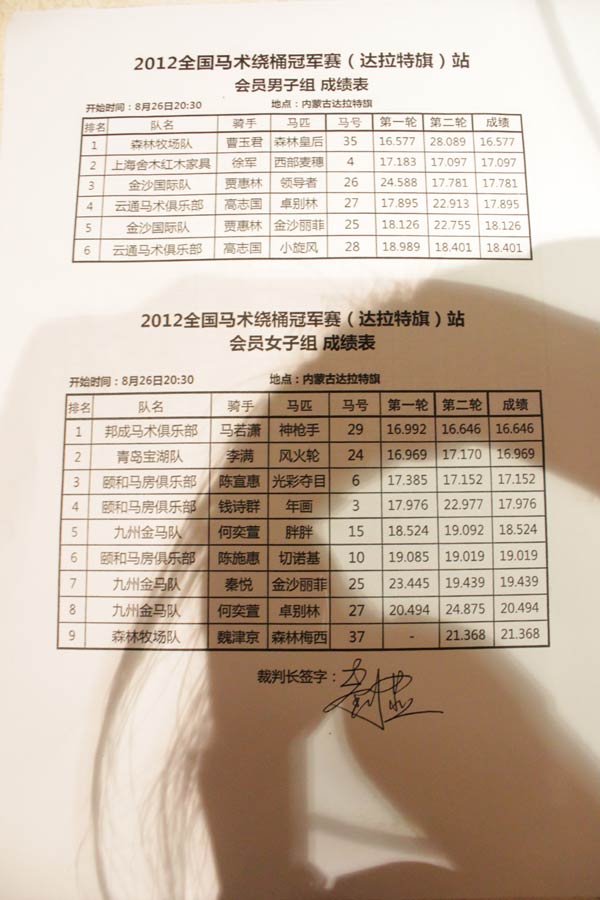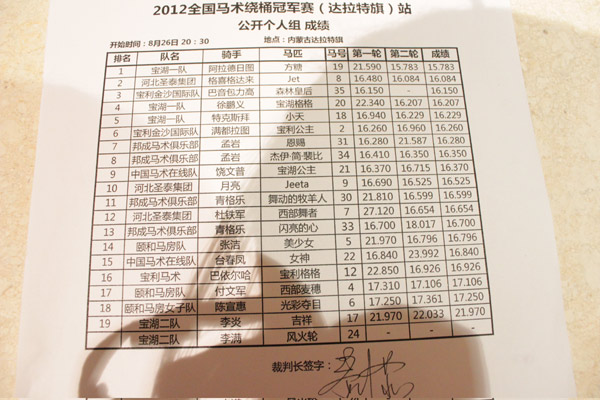 2012全國馬術(shù)繞桶冠軍賽(達拉特旗站)成績單