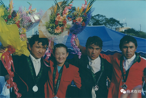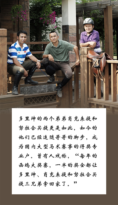 1982年12月8日,中國馬術(shù)協(xié)會(huì)成為國際馬術(shù)聯(lián)合會(huì)正式成員,自此中國馬術(shù)邁出了重要的一步。至2022年,中國的馬術(shù)運(yùn)動(dòng)已歷經(jīng)四十年風(fēng)風(fēng)雨雨。《馬術(shù)》雜志推出《中國馬術(shù)四十年》特別策劃,講述那些為中國馬術(shù)做出貢獻(xiàn)的人物故事。時(shí)光易逝,彩云易散,縱然歷史的車輪滾滾向前,我們依舊能在時(shí)光的車轍中,找到值得我們銘記的那些人、那些事。 初見多里坤·阿拜,他默默坐在騎手中央,并不起眼,提到采訪,他站起身,滿臉隨和,“好啊,這里比較吵,你們看去后面采訪行不行?”說話之間,他已經(jīng)站起身,帶著我們向后走。時(shí)光給他的臉上添了幾道皺紋,但依舊能看得出當(dāng)年那年輕帥氣的臉。眼前這位個(gè)子不高、長相溫和、戴著沾了馬場土灰的鳥巢大師賽帽子的中年男人,很難與8屆全運(yùn)會(huì)元老,帶領(lǐng)家族兄弟7人走向馬術(shù)賽場的如此有感染力、有威信的家族大哥聯(lián)系起來。 這位站在鏡頭前,看似有點(diǎn)兒拘謹(jǐn)?shù)闹心耆耸亲尯芏?,尤其是家鄉(xiāng),新疆維吾爾自治區(qū)的年輕人肅然起敬、譽(yù)為傳奇的真正馬語者。 提到多里坤,家鄉(xiāng)的親戚,鄰里街坊都知道他有一連串傲人的成績,11歲獲得內(nèi)蒙古馬術(shù)錦標(biāo)賽速度冠軍、15歲獲全國馬術(shù)錦標(biāo)賽場地障礙賽亞軍、日本國際馬術(shù)大賽場地障礙賽第六名、21歲成為全運(yùn)會(huì)馬術(shù)團(tuán)體冠軍成員。這些成績似乎都在訴說著他在馬術(shù)領(lǐng)域是多么有天賦,畢竟年紀(jì)輕輕就獲得了諸多成就。但熟知的他人一定明白,這些成績背后的不易。 多里坤·騎馬40年 父親的支持 多里坤的父親是新疆伊犁哈薩克自治州昭蘇種馬場的一位獸醫(yī),很小的時(shí)候,多里坤就經(jīng)常騎在馬背上跟著父親四處行醫(yī),并漸漸顯露出了他的馬術(shù)天賦。1982年年僅10歲的多里坤被新疆隊(duì)的領(lǐng)導(dǎo)發(fā)現(xiàn),于是來給多里坤的父親做工作,希望他能進(jìn)入馬術(shù)隊(duì)?!捌鸪醺赣H是不同意的,但是因?yàn)槲液芟矚g,最終還是尊重了我的選擇,連帶父親最喜歡的大青馬一起,都托付給了伊犁體育局?!?/div> 經(jīng)過一年的訓(xùn)練,11歲的多里坤一出場就拿到了1000米冠軍,還破了比賽記錄。在之后的四年里,他拿到了很多速度賽的冠軍,破了多項(xiàng)紀(jì)錄,捧了多個(gè)獎(jiǎng)杯。1987年,多里坤被挑入新疆隊(duì),訓(xùn)練基地在烏魯木齊。因?yàn)殡x家遠(yuǎn),父親放心不下,跟著多里坤一起到了馬術(shù)隊(duì)訓(xùn)練。但埋頭苦練了一段時(shí)間后,家里的來信不得不讓多里坤放棄了自己的馬術(shù)事業(yè)。 “家里6個(gè)孩子,我排行老二,父親來烏魯木齊陪我,家里根本忙不過來,家中的牛沒人照料,都死了?!睘榱苏疹櫦?,多里坤只得跟著父親回去。但不到一年的時(shí)間,家里又接到新疆馬術(shù)隊(duì)的電報(bào),張漢文教練三次邀請(qǐng)多里坤回烏魯木齊體工二大隊(duì)訓(xùn)練,感受到了真誠,多里坤父親最終同意了多里坤一個(gè)人回馬術(shù)隊(duì)訓(xùn)練。也是從這個(gè)時(shí)候起,多里坤從一位速度賽騎手,轉(zhuǎn)型成為場地障礙騎手。 經(jīng)過一年的訓(xùn)練,在1988年,新疆隊(duì)來到北京參加全國馬術(shù)場地障礙錦標(biāo)賽。那個(gè)時(shí)候交通還不是很方便,他們乘火車整整10天才來到北京,之后準(zhǔn)備了一個(gè)月,大家都是既承擔(dān)繁重的訓(xùn)練工作,同時(shí)承擔(dān)馬工和后勤工作。就這樣,功夫不負(fù)有心人,新疆隊(duì)在這次比賽中獲得了亞軍。也因著這樣的機(jī)會(huì),多里坤獲得了入選國家隊(duì),代表中國參加日本國際馬術(shù)大賽的機(jī)會(huì)。“那個(gè)時(shí)候才15歲,心里還是怕的,隊(duì)友們都回去了,只剩下我,在北京體育大學(xué)又訓(xùn)練了一個(gè)月。好在抽簽時(shí)很幸運(yùn),拿了個(gè)好馬,取得了個(gè)人第六的成績?!?/div> 2001年,廣州九運(yùn)會(huì),新疆隊(duì)獲得團(tuán)體第二,多里坤、加納古麗、努拉合買提、吉恩斯(從左至右) 時(shí)間轉(zhuǎn)到1991年,新疆隊(duì)終于籌到資金,把包含多里坤在內(nèi)的幾名馬術(shù)運(yùn)動(dòng)員送往吉爾吉斯訓(xùn)練。兩年后,多里坤回到烏魯木齊,準(zhǔn)備1993年的全運(yùn)會(huì)。期間,他回到家看望了一次久別的家人?!案杏X支撐著家庭的、曾經(jīng)印象中高大的父親,一下子老了很多。我也沒想到,那次竟是最后一次見父親。” 回到烏魯木齊之后,多里坤就總牽掛著家人。有一次,他夢(mèng)到了父親,但夢(mèng)到父親去世了。醒來時(shí)滿臉淚痕。隊(duì)友們都問,你昨晚干嘛了?又哭又叫的喊你父親。心里陣陣不安的多里坤,急忙寫信給家里詢問情況。家里來信說一切都好,叫多里坤安心準(zhǔn)備,打好比賽。雖然家里的回信,讓多里坤的不安得到了少許緩解,但莫名的陰郁總是揮之不去。 這陰郁直接影響到了10月份參加的全運(yùn)會(huì)比賽賽場。一向競技水準(zhǔn)相當(dāng)穩(wěn)定的多里坤,居然頻頻出現(xiàn)失誤,當(dāng)天個(gè)人比賽一無所獲。好在第二天的團(tuán)體賽上,多里坤發(fā)揮正常,與隊(duì)友一起,為新疆隊(duì)拿下了團(tuán)體冠軍。 雖然多里坤已經(jīng)