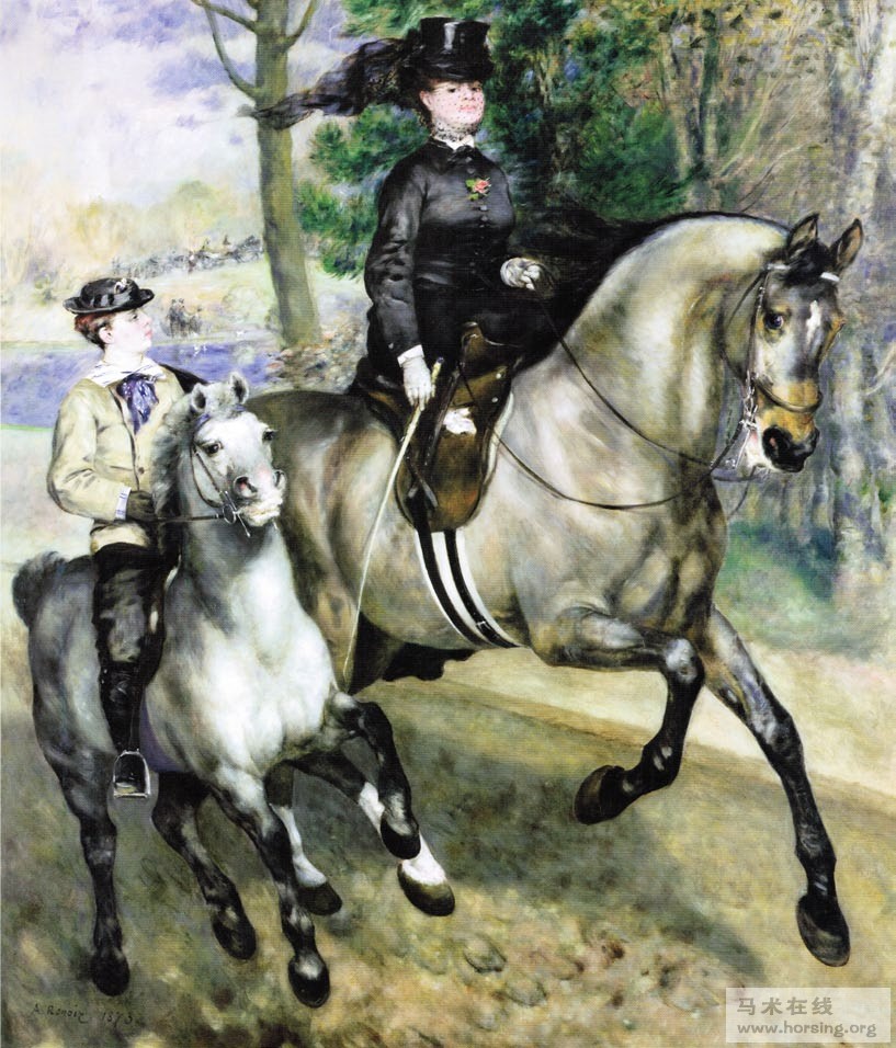皮埃爾·奧古斯特·雷諾阿(1841-1919 年) 徜徉布洛涅的女騎士,油畫。 私人藏品 皮埃爾·奧古斯特·雷諾阿出生于法國(guó)中西部的里摩日市,所屬上維埃納省。他只是法國(guó)普通工薪階層家庭的孩子,幼年時(shí),常會(huì)為了補(bǔ)貼家用而去工廠做工,跟隨老師傅學(xué)手藝。而正是瓷器廠的工作開啟了他人生的藝術(shù)之門,他為瓷器及屏風(fēng)作畫,對(duì)圖案獨(dú)特的設(shè)計(jì)及精致的繪畫技藝均表現(xiàn)出了超越常人的天賦。之后的幾年,他進(jìn)入藝術(shù)學(xué)院進(jìn)行了系統(tǒng)專業(yè)的學(xué)習(xí)。直到1861 年,他跟隨著名的古典派瑞士畫家格萊爾學(xué)徒,那些年,他甚至常處于沒(méi)錢購(gòu)買顏料的窘境,但他卻一直未曾放棄夢(mèng)想。 雷諾阿是法國(guó)印象主義畫派的先驅(qū)。他的畫作以甜美、悠閑、溫暖為基調(diào),描繪人物及動(dòng)物間親密、坦誠(chéng)、充滿活力的感覺。雷諾阿認(rèn)為繪畫并非科學(xué)地分析光線,也并非巧心地安排布局,繪畫是要帶給觀者愉悅,讓繪畫掛置的環(huán)境充滿了畫家想要的感覺。 這幅畫作是雷諾阿于1873 年所創(chuàng)。準(zhǔn)確地說(shuō),在這幅作品問(wèn)世之前,雷諾阿并不是一位擅長(zhǎng)于創(chuàng)作以馬為題材畫作的藝術(shù)家。然而,藝術(shù)的靈感往往只來(lái)源于一瞬間。此次,他以顛覆性的手法向世人呈現(xiàn)了這樣一幅優(yōu)雅的畫面:法國(guó)女騎士與仰慕她的少年相伴,徜徉在位于巴黎西方16 區(qū)的布洛涅森林公園。他們一同漫步林間步道,欣賞著園區(qū)內(nèi)著名的景觀湖,那份發(fā)自心底的愉悅通過(guò)聲音、表情、神態(tài)、動(dòng)作傳遞開來(lái),著實(shí)羨煞讀者。 而若你稍加留意,會(huì)看到女騎士特殊的騎姿——騎側(cè)鞍。在19 世紀(jì)中期的歐洲,貴婦的著裝通常都是一襲長(zhǎng)裙,在她們騎馬的時(shí)候亦如此。歐洲的傳統(tǒng)觀念認(rèn)為,女士如果像男士一樣雙腿夾緊馬背騎乘,是很粗魯?shù)谋憩F(xiàn)。因此,為了彰顯女性騎馬的獨(dú)有魅力,專門設(shè)計(jì)了一種新型的側(cè)騎馬鞍,這種鞍子的馬鐙是向外側(cè)張開的,適合側(cè)騎時(shí)腳尖向外踩鐙,馬鞍的一側(cè)設(shè)有犄角,用來(lái)卡在兩腿中間,防止騎士從馬鞍滑下。直到1900 年,隨著女權(quán)主義的興起以及女性越來(lái)越多地參與騎馬運(yùn)動(dòng),女騎士也逐步開始跨鞍騎乘,并延續(xù)至今。 編譯/肖男 |