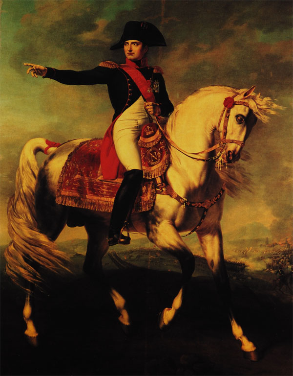 拿破侖一世的馬術(shù)畫像【1810年】 布面油畫,293×224 cm;羅馬,拿破侖博物館 圍繞拿破侖?波拿巴(1769-1821年)的坐騎有許多秘密和故事。他的坐騎中最有名的就是一匹叫做馬倫戈的矮小的白色阿拉伯馬,它也是皇帝的愛馬。1810年,拿破侖曾騎著馬倫戈獲得了馬倫戈戰(zhàn)役的勝利(便以此為其命名)。而且根據(jù)傳說,在幾乎所有其它的戰(zhàn)役中,它都是拿破侖的坐騎。 拿破侖喜歡矮小的白色阿拉伯馬。它的顏色令其在一群馬中顯得尤為突出。因此,在拿破侖的大軍中很容易辨認(rèn)他的存在。他的馬廄里飼養(yǎng)了150匹駿馬,其中大多數(shù)都是矮小的白色馬。 《馬倫戈,拿破侖坐騎的神話》(2000年)的作者吉爾?漢密爾頓指出,法國的檔案材料中并未有證據(jù)證明拿破侖曾有過一匹名叫馬倫戈的坐騎。但是,拿破侖常給自己的坐騎取綽號。人們假設(shè),馬倫戈有可能是一匹名叫阿里(或阿利)的馬的愛稱。 |