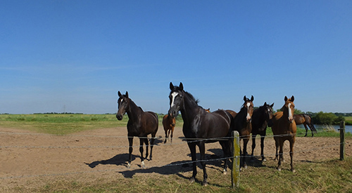 好像注定此生與馬有緣,來到德國不久就在馬年得子,巧的是德國老公居然也屬馬!而老公最大的愛好是育馬、養(yǎng)馬、騎馬和玩古典馬車。四萬多平米的馬場,十幾匹漢諾威溫血寶馬時而奔騰跳躍,時而悠閑食草,藍天白云下,一幅魅力無窮的鄉(xiāng)野畫卷,而我的生活從此基本上就是與馬朝夕相處。 年年春天得馬駒 跟老公相識不久時,正是復(fù)活節(jié)前夕,一匹小馬駒誕生了。老公很貼心地請我給小馬駒取個中國名字。因為小馬駒的父系名字均以 Q 字打頭,小馬駒是一匹漂亮的雌性舞步馬,故此得名“倩影”。此后每年這個時節(jié)家里都會添一兩匹小馬駒,為小馬駒命名也就成了我們生活里的一大樂趣。 家里的馬駒都是老公根據(jù)多年的經(jīng)驗和國家馬種中心提供的名馬名錄,為家里的母馬配種所得的“名門之后”,每匹馬的“身份證”上,都標(biāo)注著上溯四代的背景資料,而在種馬基地的檔案資料里則可追溯到 150 年前、祖上 20 代。 如今在德國,為了馬匹的優(yōu)生優(yōu)育,小馬駒均由人工控制在春天出生,哺乳期在溫暖的天氣里度過,馬駒心情好,身體壯。家里的兩匹專門負責(zé)生育的母馬(舞步和障礙馬各一)每年交替做母親,獸醫(yī)給母馬做過幾次身體檢查之后,就帶著我們選購好的名馬精子,上門給母馬人工授精。馬跟人一樣,也是十月懷胎,而小馬駒降生基本上無須助產(chǎn)。去年的小“旋風(fēng)”降生時,我們大人恰巧都不在家,只有我那 12 歲的兒子在旁邊用電話向匆匆趕回的老公全程實況報道。今年出生的小“黑王”竟然在全無前兆的情況下,自己就臥在馬棚里了! “這是一匹不同尋常的小公馬!”我老公興奮地把香檳帶到馬棚里跟我干杯,明顯的“重男輕女”嘛!“倩影”和“旋風(fēng)”出生時就沒有這個待遇。我當(dāng)然也知道個中緣由:出色的公馬將來都有入選“國家公務(wù)員”成為種馬的機會,這就好比買獎券,已經(jīng)有了中大獎的幾率啊! 小馬駒上“幼兒園” 小馬駒半歲左右就得離開母馬,被送去“幼兒園”跟同齡的小馬們一起過集體生活了。我本以為母馬和馬駒都會傷心,可是老公說,馬是群居動物,只要有同伴兒在,他們很快就會忘記母親,母馬們也會因為擺脫了總來嘬奶頭的小馬駒而感到輕松。母馬對剛出生的小馬駒真是舐犢情深,誰敢碰一下她的孩子,她就奮不顧身地上前跟你拼命,可是孩子離開一年之后她就再也不認識它們,她們的記憶里只有在身邊的“老幺”。小馬駒離開使母馬身體上輕松之后,她們真的就沒有一點兒難過嗎?那個“很快”有多快?我很慶幸自己不是馬,遙望在草地上與“后宮老姐妹們”一起貌似無所謂地悠閑吃著草的母馬,想起最初送女兒和兒子上幼兒園的情景,不由得替她們心酸。 我們家里除了兩匹輪流生育的母馬和孩子們練習(xí)騎術(shù)用的乖巧溫和的老馬,還有一些自家有馬沒棚的客居馬。那些比較出色的比賽用馬和小馬駒們都被送到附近一個叫“黑莊”的馬場寄宿培訓(xùn)。在那里,馬匹根據(jù)年齡、性別和比賽項目分組生活并接受培訓(xùn)。我們常常去那里看望小馬們,并旁聽成年馬(三、四歲以上)的培訓(xùn)課程。每次一到“黑莊”我們就直奔“幼兒園”,小馬們成長速度驚人,幾周不見就快認不出了。老公說,小馬駒一個多月大的時候身上就被烙上一個印記——“H”(漢諾威溫血馬)和號碼,不怕認不出,也不怕丟。而他則根本不需要這些標(biāo)志就可以輕松地從馬群里找到我們自家的馬駒。 最幸福的馬駒是在兩三歲的“中班”,它們在夏季都會被放養(yǎng)在寬闊美麗、草肥水清的威悉河畔,因為還沒有“功課”,每日的生活就是跟小伙伴兒們盡情奔跑、撒歡,當(dāng)然也像所有的成年馬兒一樣,一天里有 16 個小時都在咀嚼吃草。因為馬的胃很小,食物很快就被消化掉了,他們必須不停地吃。 “世界王子”與“教父” 懂行的人都知道,全世界的馬是歐洲的最好;歐洲的馬是德國的最好;德國的馬是漢諾威溫血馬最好。溫血馬不像冷血馬那樣蠻勁兒大、能出苦力拉車干農(nóng)活,也不似熱血馬那樣能猛沖快跑,適合速度賽的賭馬活動。溫血馬不僅外形矯健帥氣,而且聰明伶俐、善于學(xué)習(xí),其中障礙賽馬騰跳姿勢優(yōu)美靈活;宮廷舞步馬則通人性一般,隨著音樂節(jié)奏和主人的指令翩翩起舞。這不僅要求騎手騎術(shù)高超,騎手與駿馬的強大的學(xué)習(xí)能力和與騎手的默契配合也極為重要。我家地處下薩克森州,正是漢諾威溫血寶馬的故鄉(xiāng)。 我家小馬駒們上“幼兒園”后,就過上了集體生活,3-4歲就開始接受正規(guī)嚴格的訓(xùn)練。如今成績最好的宮廷舞步“世界王子”(Weltprinz),今年 10 歲(馬的平均壽命是 27、8 歲),已經(jīng)學(xué)會奧林匹克比賽最高難度的全套動作,屬“大學(xué)畢業(yè)”水平且獲獎無數(shù),身價超過25 萬歐元;第二號“種子選手”Vito Leone(與電影《教父》男主角同名),是一匹 7 歲的障礙賽馬,兩年前在小型馬術(shù)比賽中初試鋒芒,被眾多行家看好,作為下一個重點培養(yǎng)對象,已經(jīng)上“重點高中”了! 馬跟人一樣,名字非常重要。我家每年一個馬駒,會出“世界王子”和“教父”,也有可能出“伽比”、“瑪雅小姐”等平庸之輩。“學(xué)歷”低的馬兒們,也會接受一些普通常規(guī)訓(xùn)練,主要供馬術(shù)學(x