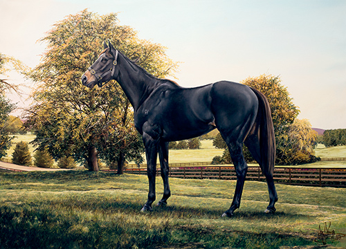 這張畫作中的馬叫 Silent Achiever,是 Valachi Downs牧場所繁育的一匹杰出賽馬。Craig 注意到這匹母馬脖頸上總會有一撮鬃毛翹起來,于是便將這一細節(jié)呈現(xiàn)在了他的畫作中。這是 Craig 最為滿意的作品之一,對此他很感謝牧場主 Kevin Hickman 所給予他的信任。