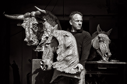 不管是人還是動物,其每一個動態(tài)姿勢的核心點就在于沒有開始,亦沒有結(jié)束,而是空間里的一個開放的故事。 我抓住了生命中的一個瞬間,并且將其定格在青銅之中。 雕塑家 Jos Dirix 的作品圍繞生命存在的自然周期,并飽含對生命的尊重。他為自己創(chuàng)作的每一件雕塑作品都注入了靈魂,讓人從中可以感受到生命的力量,這種力量源于他剛毅澎湃的內(nèi)心世界,體現(xiàn)在那種毫不遮掩修飾的強烈的真實感之中。 Jos Dirix 曾對他的作品做過這樣的闡釋:“不管是人還是動物,每一個動態(tài)的核心點就在于沒有開始,亦沒有結(jié)束,唯有空間而已。這是一個開放的故事?!边@位來自比利時林堡的雕塑家,在國際上享有聲望,其作品主要表現(xiàn)人體的張力或者是動物的行動之態(tài)。“我抓住了生命的一個瞬間,并且將其定格在青銅之中?!?/div> Jos Dirix 創(chuàng)作的這些馬、公牛和人體等雕塑都充滿活力,它們動態(tài)的姿勢彰顯出一種原始的力量和高貴,人和動物都飽含生命的能量,令人心生敬意。 在一次將真實的觀察與想象力相結(jié)合的探索中,Jos Dirix創(chuàng)作的青銅作品“男人與野獸”,以一種連續(xù)的動態(tài)手法與創(chuàng)作材料間產(chǎn)生了互動。要在保存真實與重塑藝術(shù)靈魂之間達到正確的平衡,的確是一件充滿挑戰(zhàn)的任務(wù)。 他喜歡以牛和馬為主題來進行創(chuàng)作,特別是馬,他熱愛、尊重這些忠誠的、憨厚的、充滿毅力的高貴的生命。目前中西方最有影響力的雕塑作品大都是銅制,比如羅丹的《思想者》、《青銅時代》、《自由女神像》等。Jos Dirix 選擇青銅,并不僅僅是因為它的質(zhì)感、可塑性、規(guī)格的不限性、色彩肌理豐富性等適宜做成雕塑的外在原因,更是因為其厚重感、幽遠的歷史感和文化沉淀的屬性,而這正貼合了他對所創(chuàng)作的主題的印象。 Jos Dirix 曾創(chuàng)作過一組足具中國風(fēng)的青銅馬雕塑,創(chuàng)作靈感不是來自我們漢唐時代的泥塑或彩塑馬,而是來自我們的筆墨古畫。古時的馬,在經(jīng)過了華夏先人的抽象審美的藝術(shù)加工后,他重新予之以立體的形象,仿佛真實存在過。 Jos Dirix 目前居住在比利時林堡中心地區(qū)的一個叫 NEER 的小鎮(zhèn)上,那地方靠近自然,就在 Leudal 自然保護區(qū)的邊緣。他的家是一座經(jīng)過翻新后的舊式農(nóng)舍,包括他的工作室和幾間冰島馬的馬房。除了創(chuàng)作,他每天都會騎馬,身與心都在鄉(xiāng)下的自然美景之中得到釋放。他與這些高貴的“野獸”彼此熟悉,也彼此信任,在馬背上,他可以達到平衡和節(jié)奏的完美和諧。 這種感受,雕塑家在他的另一項酷愛的事情上也曾有過,那就是練習(xí)日本柔術(shù)。柔術(shù)之道是用一種平衡的,幾乎是精神上的舞蹈來進行攻擊或收回。正是這些在一個立體空間內(nèi)對動態(tài)和力量的感覺,激發(fā)了 Jos Dirix 創(chuàng)作出那些富有表現(xiàn)力和真實感的青銅雕塑。 文/丘橦 圖/Bob Strik |