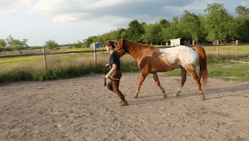 地面訓(xùn)練是每一位馬術(shù)運(yùn)動(dòng)員都應(yīng)該使用的方法。該方法是加強(qiáng)騎手與其馬的聯(lián)系以及確立自己威信的關(guān)鍵。本篇文章是五個(gè)好用而基礎(chǔ)的地面訓(xùn)練第二篇,講述如何正確牽馬。 訓(xùn)練正確牽馬 這個(gè)訓(xùn)練的目的是讓馬專(zhuān)注于你,專(zhuān)注于你的肢體語(yǔ)言。馬很容易走神,這一點(diǎn)你可以通過(guò)它們拉著你去看別的事物,或者想要超越你的行為看出。慢吞吞地在你后面的懶馬也不可能關(guān)注你,它們更關(guān)注于如何不跟上你的步伐。 本圖為前側(cè)方拍照,且示范人并不很準(zhǔn)確 當(dāng)帶領(lǐng)一匹馬時(shí),正確姿勢(shì)是讓馬的鼻子與手臂平行。既不在它前面,也不在它后面。查看馬是否領(lǐng)先于你的好方法是,拿起長(zhǎng)鞭,并將長(zhǎng)鞭水平放在身前,確保長(zhǎng)鞭橫放在手臂上,一直延伸到馬的前腿。如果馬總是用鼻子撞長(zhǎng)鞭,或者跑過(guò)這條鞭子的線,那么就是它們?cè)噲D走在前面了。我們的目標(biāo)是讓馬走在后面。 如果是正確的牽引,馬會(huì)自覺(jué)停在騎手身邊,不需要拖拽,如果騎手加快步伐,它們也會(huì)自覺(jué)跟上,如果騎手停下來(lái),馬也會(huì)停下來(lái)。 方法 要進(jìn)行這個(gè)練習(xí),需要將馬匹帶著走一圈。騎手需要兩手放在調(diào)教索,一只手比另一只手更靠近馬的咽喉革,同時(shí)較遠(yuǎn)的那只手握住長(zhǎng)鞭,長(zhǎng)鞭應(yīng)該在騎手身后,與馬的身體平行。 長(zhǎng)鞭只用于警示懶馬,當(dāng)它們不想移動(dòng)時(shí),不要用長(zhǎng)鞭打它們。如果它們還是很固執(zhí),用長(zhǎng)鞭擊打地面,要求它們加速。 當(dāng)然這取決于你的馬是一匹精力充沛的馬,還是一匹懶馬。精力充沛的馬喜歡拉它們的騎手,這個(gè)時(shí)候,每當(dāng)它們?cè)竭^(guò)手臂,騎手要停下來(lái)?yè)u晃牽引繩。這是求它們后退,如果它們沒(méi)有響應(yīng),施加壓力。一旦按照騎手的要求做了,也要適當(dāng)獎(jiǎng)勵(lì)馬匹。 如果是懶馬,也可以多進(jìn)行步伐的快慢變化,當(dāng)騎手加快步伐時(shí),它們也應(yīng)該加快步伐,如果它們不這樣做,用鞭子抽打地面要求它們前進(jìn)。這樣的變化能讓它們專(zhuān)注于騎手的要求。最后,如果馬匹能做到不施加壓力,而跟著你的步伐加快或減慢速度,就可以給它們一些獎(jiǎng)勵(lì)了。 這個(gè)訓(xùn)練不僅可以讓馬專(zhuān)注于你,而且還會(huì)建立馬對(duì)騎手個(gè)人空間的尊重。如果超越到騎手身前,那它就是不尊重你。它們學(xué)會(huì)跟在你畫(huà)的那條線后面,是它們尊重你是領(lǐng)導(dǎo)者的表現(xiàn)。同時(shí),這個(gè)訓(xùn)練也教會(huì)了馬對(duì)騎手肢體語(yǔ)言做出反應(yīng),當(dāng)你減速時(shí),它要減速;你加速時(shí),它也要加速。 |