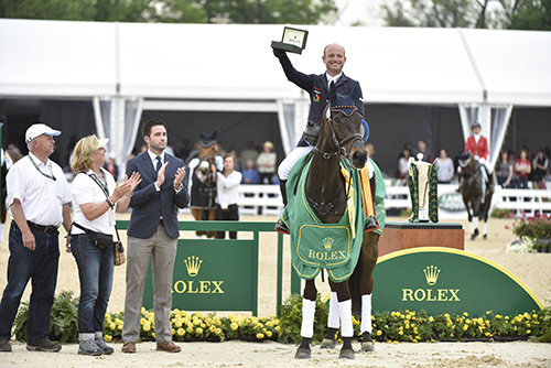 勞力士的三項(xiàng)賽大滿貫殊榮,一直為全球頂尖騎手和賽駒所爭相競逐,能夠在肯塔基、伯明頓及伯利舉行的其中一項(xiàng)賽事中取勝,已算是成就非凡,而在此三地賽事中連續(xù)勝出,可堪稱出類拔萃。自創(chuàng)辦至今,僅有英國三項(xiàng)賽標(biāo)志性騎手、傳奇女將Pippa Funnell在2003年時(shí)獲得過該榮譽(yù)。 英國當(dāng)?shù)貢r(shí)間5月8日,2015-2016賽季FEI三項(xiàng)賽經(jīng)典賽在英國伯明頓莊園結(jié)束了最后一天的爭奪。德國名將 Michael Jung(邁克爾·榮格)和他的16歲愛駒La Biosthetique Sam FBW憑借完美發(fā)揮,以34.4罰分的成績,成為該項(xiàng)賽事67年歷史上第一位奪冠的德國騎手。同時(shí),成為第二位獲得馬術(shù)三項(xiàng)賽勞力士大滿貫的騎手。 “三連冠”偉業(yè)終于完成 Michael Jung憑借著在盛裝舞步比賽和越野障礙賽中的出色發(fā)揮,帶著巨大的優(yōu)勢進(jìn)入到最后一項(xiàng)場地障礙賽中。這也就意味著,只要Michael Jung不出現(xiàn)重大失誤,伯明頓三項(xiàng)賽以及勞力士大滿貫的金杯就會被他收入囊中。所有人都在期待著這一歷史性時(shí)刻。當(dāng)天的伯明頓莊園驕陽似火,Michael Jung最后一位出場。他在現(xiàn)場15000名觀眾安靜的注視下,冷靜且熟練的控制著Sam進(jìn)入主賽場。在接近障礙之時(shí),他和馬瞬間爆發(fā)凌空躍起,13個(gè)障礙一氣呵成,以完美的表現(xiàn)結(jié)束了比賽。在沖過終點(diǎn)的一剎那,現(xiàn)場氣氛達(dá)到高潮,所有人都在為他歡呼、喝彩。賽后,Michael Jung抑制不住自己的興奮,“我一直提醒自己,要將本場比賽作為普通的賽事來對待,但是當(dāng)奪冠并創(chuàng)造歷史以后,還是會有些激動。” 自小便喜歡騎馬 Michael Jung出生于馬術(shù)世家,可謂是根正苗紅,似乎生來就流淌著騎手的血液。他的爺爺是有名的騎手,他的父親Joachim Jung曾經(jīng)參加過馬術(shù)比賽,擔(dān)任過馬術(shù)教練。不僅如此,家人還在德國擁有一個(gè)馬術(shù)中 心。 因?yàn)榧彝サ脑?,Michael Jung自小便和各種馬頻繁接觸,并被這項(xiàng)運(yùn)動所深深吸引。六歲開始騎馬,八歲搬到馬房去住,從此便一發(fā)不可收拾,在馬術(shù)路上越走越遠(yuǎn)。父親作為他的入門教練,深深地影響了Michael Jung的馬術(shù)生涯,直到現(xiàn)在,他都把父親當(dāng)做偶像。被馬術(shù)熏陶長大的他,有著過人的天賦,在 2003 年時(shí)就初露鋒芒,曾經(jīng)獲得青年騎手歐洲錦標(biāo)賽冠軍。 與愛駒 Sam 的不解之緣 2009年, Michael Jung獲得了HSBC FE的世界杯冠軍,并憑借此冠軍開始被人們所廣泛熟知。在那次比賽上,他和自己的愛駒La Biosthetique Sam FBW共同出戰(zhàn),一鳴驚人,后又摘得在法國楓丹白露( Fontainebleau)舉行的歐錦賽個(gè)人銅牌,成為馬術(shù)圈內(nèi)當(dāng)之無愧的黃金組合。Michael Jung是愛馬之人,喜歡和馬相處、訓(xùn)練。在他看來,Sam不僅是他比賽的好搭檔,更是他生命中不可或缺的伙伴?!癝am會一直和我住在一起,直到它生命的盡頭?!?/div> 長期與馬相處的他,琢磨出一套高效的現(xiàn)代培訓(xùn)方法。他在訓(xùn)練馬的過程中,會高度關(guān)注其跳躍技巧的精準(zhǔn) , 減少它拒絕跳躍的機(jī)會,從而幫助馬匹正確順利地跳過每個(gè)障礙。Michael Jung曾說過,他不騎小馬,因?yàn)樗鼈冞€無法完全利用起小跑。成熟的馬匹可以在比賽過程中讓其后肢參與進(jìn)來,產(chǎn)生較大的推力,來將步伐伸展到最大。堅(jiān)持對馬匹進(jìn)行正確扎實(shí)的訓(xùn)練,使他在馬術(shù)賽場上長年占據(jù)霸主地位。 三十歲生日的雙份大禮 Michael Jung的職業(yè)巔峰莫過于 2012年的倫敦奧運(yùn)會。德國媒體曾經(jīng)用“金色星期二”和 " 下了一場獎牌雨 " 來形容德國隊(duì)收獲頗豐的奧運(yùn)會馬術(shù)項(xiàng)目。對于 Michael Jung又何嘗不是如此呢? 比賽當(dāng)天是他 30歲生日,相比于團(tuán)體賽的出色發(fā)揮,個(gè)人賽的這枚金牌多少有些靠運(yùn)氣。在最后一輪比賽中,領(lǐng)先的瑞典女騎手的賽馬Wega碰掉了一根橫木。由于對手這個(gè)失誤,Michael Jung追趕了上來,繼德國隊(duì)團(tuán)體金牌幾小時(shí)后又獲得一枚個(gè)人金牌。賽后他開玩笑道,“我曾夢想著完美的發(fā)揮可以給我?guī)斫鹋?,但沒想到一下得了兩塊?!惫慌Φ娜诉\(yùn)氣都不會差! 傷病是家常便飯 在外人看來,Michael Jung是集奧運(yùn)會、世界杯與歐錦賽冠軍于一身的三項(xiàng)賽騎手,是當(dāng)今馬術(shù)三項(xiàng)賽界無可爭議的世界第一。但只有他自己知道,這些優(yōu)秀的戰(zhàn)績是多少汗水和艱辛換來的。自成名至今,Michael Jung一直四處比賽,戰(zhàn)功赫赫,但也大傷小傷不斷。在 2014年的德國比賽中,他曾摔斷過自己的鎖骨。在2015年的英國伯利馬術(shù)三項(xiàng)賽中,他的脛骨被摔掉一塊,擔(dān)心去醫(yī)院會耽誤比賽,便自己做了簡單處理。一周后,拖著一瘸一拐的傷腿,出現(xiàn)在了歐洲錦標(biāo)賽上,完成比賽后才趕去醫(yī)院。這次的摔傷,使他的腿部被嵌入兩顆螺絲。 “我只是一名騎手” 即使?jié)M身傷病,Michael Jung也從沒有想過放棄騎馬。因?yàn)樵谒闹?,馬術(shù)已經(jīng)不僅僅是他的職業(yè),更是他生活中的一部分?!皬男?,訓(xùn)練馬、騎馬就是我的最大愛好,所以我才成為一名騎手。贏得比賽并不是我的最終目
