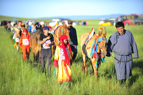 黑馬指的是黑色的馬,同時在體育報道中指的是爆冷門取得好成績的人或馬。阿布嘎黑馬是指一個馬品種,是生長在錫盟阿布嘎草原上黑色的馬,阿布嘎女子黑馬連在60年代曾受到過周恩來總理的高度贊揚.在這次大賽馬中,來自阿布嘎的馬成為了比賽中的“黑馬”,顛覆了整個內(nèi)蒙古草原。 盛夏時節(jié),初入草原,便感受到了“天似穹廬,籠罩四野”的大景象,覺得這首歌謠說的純粹是天和地的關系,這和人是沒有關系的,人到草原,就像一滴水融入大海,人太渺小了。 我們驅(qū)車奔馳在遼闊的錫林郭勒盟大草原上,目的地是西烏珠穆沁旗的政府所在地巴拉嘠爾高勒鎮(zhèn),那里將舉辦一年一度的傳統(tǒng)草原大賽馬(30.5公里耐力賽)。我們電視團隊五人小分隊,先行進入草原,采訪即將參加比賽的各地馬主、選手。我坐在前排副駕的位置上,視野相對開闊,無際的草原上幾百公里幾乎沒有參照物,我有時會感覺是坐在一種模擬的駕駛艙中,原地不動,草原從兩邊劃過。我想,在這樣遙遠無邊的空間里,人是無法靠兩腳去走的。偉大的自然賜予了人一種相互聯(lián)系的精靈,那就是馬。在草原上,馬雖然軀體和人一樣渺小,但馬有速度,馬的速度縮小了草原的空間,打破了草原的局限性,人便真正擁有了草原。 錫林郭勒是漢語音譯,意思就是美麗的河,我們在錫林河畔采訪馬術俱樂部的江樹軍先生,采訪調(diào)馬師巴特,因為江先生和巴特老師連夜去草原接小騎手迷了路,誤了點,我們是起了個大早,卻干了個晚集。早晨7點多鐘的時候,太陽的光芒很強烈,有內(nèi)地中午11點鐘的感覺。在監(jiān)視器上看,馬背上鑲嵌了一層刺眼的藍光,我忽然覺得有點莊周夢蝶的味道。雖然腳上的皮鞋都被露草濕透了,可采到了江先生,巴特老師的真言也值得。他們說:蒙古馬和其它混血馬的區(qū)別是,蒙古馬耐力好,中、短距離速度稍慢于其它改良馬。我們問那為啥還選擇蒙古馬參賽,他們說蒙古馬是蒙古族文化的一部分,蒙古馬長久奔跑的耐力好,越長距離就越顯優(yōu)勢,再說也是蒙族人精神的象征。蒙古馬在草原的生存能力極強,當草原變成茫茫雪原時,懷著身孕的蒙古馬,領著小馬駒,刨開積雪吃枯草養(yǎng)育后代。帶著蒙古馬去參加比賽,就是為了傳承這種文化,名利倒在其次,但也絕對差不了。 西烏珠穆沁旗簡稱西烏旗,“烏珠穆沁”意思是“摘葡萄者”,他們是從長葡萄的新疆那邊來的。這里的草原是世界四大草原之一錫林郭勒草原的典型區(qū)域和蒙古馬的核心區(qū),風光旖旎,蒙古族文化習俗保存的十分完整。我們趕到鎮(zhèn)里,看到不少人傳蒙古袍,街道很多馬匹穿來穿去。 在30.5公里的賽道上布置了25個固定機位。我們是雨中進入草原賽道的,今年雨水足,草原水草豐茂。有的地方的草快長到人的腰部,草原因為有草皮覆蓋,沒有水土流失,所以很少溝坎,但草原并不是平坦的,有山包,有坡地,就像大海一樣,遠看平展,近看波濤起伏。 2010年7月17日凌晨4點鐘,我們和大部隊趕到賽道起點,這里在小鎮(zhèn)的西南方向,在特別遼闊的成吉思汗瞭望山下,賽道基本為東南方向,臨近終點時向主會場沖刺。馬主門昨夜已開上輕型卡車在這里夜宿。太陽升的很快,草地上濕漉漉的,夜里露水很重,我很高興,希望馬奔跑時減少塵土。草原上有名的馬主、調(diào)馬師們,象呼倫貝爾的芒來(首屆冠軍),通遼市的松林(近兩屆冠軍),二連浩特的包昌(蒙古國賽馬冠軍)等在參賽馬中走來走去,裝作不經(jīng)意的樣子,可眼光又在馬身上飄來飄去,他們在看對手馬的狀態(tài),好馬能不能跑好,關鍵在昨天夜里,比如夜草吃的合不合適。這就是兵法上說的知己知彼,百戰(zhàn)不殆。西烏旗連續(xù)舉辦了好幾屆賽馬,只是上屆才得上名次,這次渴望更上一層樓,參賽的蒙古馬調(diào)的不錯,毛色發(fā)亮,肌肉發(fā)達,胸肋突出無贅肉,還找了個老騎手,小矮人。通遼市的馬主松林是近年的冠軍得主,他的馬是半血馬,已經(jīng)連續(xù)兩屆了,這次再奪冠就是三連冠了,不過他去年的冠軍馬,已轉(zhuǎn)手賣給了他人,也報名參加了今天的比賽,只是到現(xiàn)在馬上就要比賽了還不見冠軍馬的蹤影。松林預測今年報名馬雖少但好馬多于往年,比賽會更加激烈。 在賽道起點的排列中,有一位中年女選手引起了我們的注意,采訪中她笑著說,要是拿了冠軍,就再買匹馬。來自西烏旗的扎寶力格說,昨天黃昏時分,他們還穿上民族服裝,為賽馬舉行了香薰儀式,祈求好的成績,保佑騎手和馬兒的平安。 太陽從一個山包后升起,陽光充滿力量的照射在草原上,無際的青草更加滴翠。70多匹賽馬一字排開,上一屆的冠軍馬還是沒有來。 發(fā)令槍響!1號馬率先沖出,馬群隨后跟上,往東南方向飛馳而去。小飛機俯沖航拍,驚了一匹馬,選手從馬背上掉下來,剛才有決心奪冠的女選手,剛跑了一公里,就掉隊了。我坐上導演車,也向終點追去,路上看到了沒有騎手的馬,依然頑強的向前跑著。比賽開始,速度達到每小時50公里左右,轉(zhuǎn)眼就拉開了一條線,五公里處已分出三個集團。 有幾匹來自阿旗的純蒙古馬和眾多半血馬混在一起,樣子雖不如其它馬好看,但跑起來卻十分輕松。 我的車在賽道上,一會兒顛入小山谷,一會兒從天際線上爬坡、下坡,一會兒走S形道路,一會兒直線行駛在廣闊的草地上,我們在車內(nèi)體會著騎手的感覺。等我們趕到
