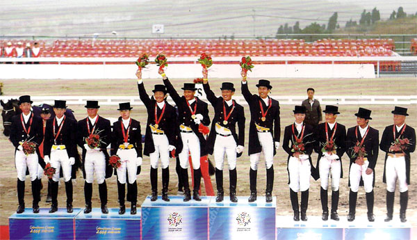 全運會馬術(shù)比賽設(shè)置與奧運會稍有不同,奧運會中的一塊三項賽個人金牌在全運會上改成了12000米速度賽馬金牌,但均設(shè)六塊金牌。在第十一屆全運會上,廣東隊奪得兩枚金牌,獨占鰲頭,新疆隊、上海隊、湖北隊、香港隊各摘得一枚金牌。 首塊金牌:盛裝舞步團體 戲劇性場面出現(xiàn)在產(chǎn)生金牌前最后一個出場的運動員,他就是全國錦標賽冠軍廣東選手顧兵。他的表演決定廣東奪冠還是新疆奪冠,只要他穩(wěn)定發(fā)揮,廣東的冠軍就會到手。前八個動作都十分順利,突然一陣狂風(fēng)卷入賽場,一個紅色花盆隨風(fēng)刮到馬的蹄前,瞬間場地一半擋板也隨風(fēng)倒下。此時,場外的觀眾都為顧兵擔(dān)心和惋惜,我也感覺顧兵不太走運,人馬一亂肯定失金??纱藭r的顧兵如入無人之境,依舊做著動作。這時工作人員到場內(nèi)告知,比賽暫停。隨后,顧兵掉轉(zhuǎn)馬頭在場邊依舊做動作。鈴聲響起,裁判決定從第九個動作重新開始,顧兵十分穩(wěn)健地開始了比賽,結(jié)果他以出色的表演使廣東超出新疆2分多,從而贏得了這枚金牌。丹麥籍教練約翰十分感慨,對顧兵臨危不亂的鎮(zhèn)定給予極高的贊揚。 第二塊金牌:盛裝舞步個人 痛失團體金牌的新疆隊,已沒有退路。北京奧運會唯一的馬術(shù)女騎手劉麗娜開始向金牌沖擊,她必須拿出奧運騎手的勇氣,她成功了。新疆體育局黨組書記李光明說:“劉麗娜是能打硬仗的新疆姑娘。”賽后,廣東教練白捷勇評論說:“劉麗娜表現(xiàn)固然好,但顧兵的策略不對,他太求穩(wěn)了。在團體中求穩(wěn)成功了,但今天如果更放開些,也同樣有可能沖金?!?/div> 第三塊金牌:三項賽團體 經(jīng)過前兩天的盛裝舞步團體和個人比賽之后,第三天三項賽團體比賽的局面更為嚴峻。暫排在第一名的廣東隊僅與第二名的上海隊差10分;第三名的山東隊與第四名的江蘇隊差8分,這就意味著第三天的場地障礙賽無論哪個隊多打掉兩、三根桿,就會失去金牌和獎牌。結(jié)果,之前暫排在第二名的上海隊在最后一項場地障礙上演了大翻盤,最終獲得金牌。廣東隊獲得銀牌、山東隊獲得銅牌。特別值得提的是,山東隊第一次參加全國馬術(shù)大賽就拿到了銅牌,可以說是創(chuàng)造了一個奇跡。 第四塊金牌:場地障礙賽團體 廣東、香港、上海第一輪后排在前三名,廣東三人只罰4分,香港和上海各罰12分。第二輪比賽,香港隊發(fā)揮失常,上海隊最后出場的張濱打掉了一桿,使得廣東隊最后獲得冠軍。 第五塊金牌:場地障礙賽個人 香港隊在2008年奧運會上有非常出色的表現(xiàn),但這次全運會由于檢疫的原因,只能臨時從歐洲購買百萬元左右的馬運入中國,所以人馬配合上自然不夠穩(wěn)定。團體比賽首輪罰零分的林子心,一不小心從場地東側(cè)圍欄跳出了場外,引得在場觀眾哈哈大笑。定神一看,圍欄確實很像一道障礙,可能是選手稍一走神兒,就把圍欄當(dāng)成了障礙。據(jù)說出現(xiàn)這種情況,即使在歐美也是罕見的,這也成了馬術(shù)界的永久花絮。香港隊的選手的確是技高一籌,林立信以兩輪罰零分的絕對優(yōu)勢奪得冠軍,而來自廣東的李振強兩輪罰4分名列第二。 第六塊金牌:速度賽馬(12000米) 速度賽馬和上屆全運會一樣仍為12000米距離,比賽形成一邊倒的形勢,代表湖北隊的北京馬主郭進訓(xùn)練的三匹馬,成為了關(guān)注的焦點。匯海精英和匯海大圣以15分34秒和15分54秒的成績分獲冠、亞軍,而金銀莊主(六歲扇馬)因沖刺時彎道換腿蹬空,造成右前腿骨折,按照國際慣例實行了安樂死,引起熱議并成為焦點。湖北奪得速度賽馬金、銀牌很好理解,這是因為北京馬主郭進的馬代表湖北參賽,這種做法符合全運會相關(guān)規(guī)定。而死馬一事就相對復(fù)雜,可以聽聽不同的聲音。 通過本屆全運會的速度賽,我們發(fā)現(xiàn)了其中的一些提高與不足之處。 為了確保賽馬的安全,競委會采取了多項措施: 1、對馬匹健康的檢驗檢測進行了嚴格把關(guān)。本次全運會,有國際獸醫(yī)以及香港賽馬會的相關(guān)人士組成的驗馬評審團,如果發(fā)現(xiàn)參賽馬匹有跛行、瘸腿等情況,將在待檢區(qū)等待接受復(fù)檢,如果復(fù)檢不合格,賽馬就必須退出比賽。而在檢測過程中,最初待參賽馬匹有77匹,后來縮減為40匹。又經(jīng)過層層檢測,包括香港和澳門相關(guān)部門出示的馬匹退役證明,以及臨近比賽前因為身體健康狀況被淘汰的9匹馬,最后出現(xiàn)在全運會速度賽賽場上的馬匹數(shù)量為19匹。 2、按照國際馬術(shù)協(xié)會“馬的利益高于一切”的原則,任何情況下,騎乘人應(yīng)當(dāng)善待馬匹,愛護馬具及俱樂部設(shè)施,絕對禁止虐待和傷害馬匹的行為。否則,騎乘人將被取消騎乘資格,并對因其行為造成的馬匹受損害承擔(dān)賠償責(zé)任。在今年全運會上,各支參賽隊的愛馬意識越來越高。從對馬匹的愛護,到按規(guī)則進行馬匹的檢驗檢疫,以及比賽過程中寧可犧牲成績也要保護馬匹的安全,這樣在保護了馬匹同時,馬主的利益也得到了保障。為了確保賽馬的安全,競委會采取了多項措施,譬如比賽中途設(shè)立多個監(jiān)控點,裁判一旦發(fā)現(xiàn)賽馬有過度疲勞或受傷的跡象,有權(quán)立即示意騎手停止比賽,并協(xié)調(diào)專業(yè)救護人員對賽馬進行緊急處理。而在比賽終點還安排了獸