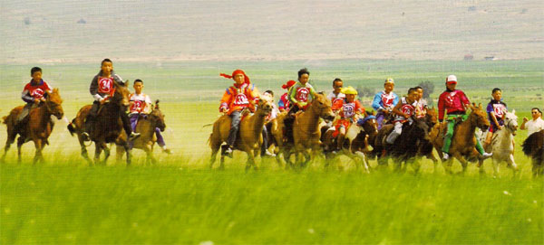 人爭馬競將上演 從北京沿八達(dá)嶺高速公路一直向北,過張家口、張北、太仆寺旗到錫林浩特市再向東140公里就到了西烏珠穆沁旗。錫林郭勒草原擁有天然草場面積20萬平方公里.是中國國土面積的四十八分之一,與英國的總面積相近。烏珠穆沁草原也是錫林郭勒大草原的核心區(qū),蒙古馬核心類型--烏珠穆沁馬就盛產(chǎn)于此,這里是最華麗、最壯美的地段,素有“天堂草原”之美稱。 早晨6點(diǎn),蘇醒的天堂草原躁動(dòng)起來,扎營在成吉思汗瞭望山附近的百多匹蒙古馬開始向起點(diǎn)聚集。 總指揮烏日圖那順正在組織從鎮(zhèn)里來的小騎手有秩序地下車。曾是戰(zhàn)斗機(jī)飛行員的賈明德老師已駕駛他的美式飛機(jī)開始滑行,他的任務(wù)是超低空距馬10米拍攝,太近馬會受驚嚇,太遠(yuǎn)又會看不清號碼。飛機(jī)從天空轟鳴而過,不一會兒馬已平靜下來。 草原的天就像少女的臉說變就變,而草原賽馬更是變化無常。比賽快開始了...... 突然北側(cè)有三匹馬先后沖了出去,其他馬匹聞聲而動(dòng),裁判長只好被迫發(fā)令,因?yàn)橐谢剡@些狂奔馬群幾乎是不可能的事。好在30.5公里漫長的征途,早幾秒鐘發(fā)令的影響微乎其微。 馬不揚(yáng)鞭自奮蹄 相傳在八百多年前成百思汗曾路過此地,自己的兩匹心愛的馬丟失了,便登上了山頂向遠(yuǎn)處張望,發(fā)現(xiàn)他們正在安然地吃草,于是后人就把這座山叫做成吉思汗瞭望山,它位于天堂草原的一端,也就是著名的西烏旗全國草原耐力賽的起點(diǎn)。 天上飛機(jī)的轟鳴不能淹沒馬蹄奮起的腳步聲,它似乎在與地面綠草軟墊上飛奔的馬匹爭斗,成群的駿馬像滾滾洪潮席卷而來。首先沖出的是來自東烏旗的67號那日蘇和他的黑馬,去年冠軍得主紅山軍馬場的36號阿拉木斯和他的白馬緊隨其后,呼倫貝爾市的26號伊勒斯格的栗色馬處在第三位。河北古邊城馬術(shù)俱樂部68號紅馬沙城,來自通遼的1 2號紅全和他的馬大黃及東道主西烏旗的9號德成的白馬也處在領(lǐng)先地位。 在草原上,馬通常沒有名字,是根據(jù)各自的顏色來命名,如一匹黃色馬就叫小黃或大黃,這使得很多來自都市的愛馬人士不得其解。 此時(shí),來自本地的一匹棕馬不慎滑倒,騎手無奈地退出了比賽。接著又有4匹馬被遠(yuǎn)遠(yuǎn)拋在后面...... 比賽已進(jìn)行了5公里,馬兒們天性不甘落后,騎手盡量控制馬的速度,保持馬的體力。來自東烏旗的67號那日蘇的黑馬依日領(lǐng)先,但作為長距離賽馬來講,開始就一直領(lǐng)先未必是好事,如果馬持續(xù)領(lǐng)先也會喪失其斗志。根據(jù)比賽經(jīng)驗(yàn),最終的冠軍常常是在第一集團(tuán)的后部或第二集團(tuán)。這時(shí),來自呼倫貝爾的26號伊勒斯格的栗色馬在轉(zhuǎn)彎時(shí)趁機(jī)超越處在了第二位。 比賽中路線的選擇對最終的比賽結(jié)果影響很大,此時(shí)從空中俯瞰,馬群從一個(gè)扇面拉成了一條綢緞,涌動(dòng)在草原深處。 30.5公里的比賽中,路線并非一馬平川,整個(gè)賽道有7、8個(gè)上、下坡,正像選手們的心情七上八下。 在一個(gè)急轉(zhuǎn)彎的上坡時(shí),一輛拍攝車拐彎過猛,將本賽奪標(biāo)熱門、來自二連浩特的62號黃馬嚇驚,騎手格日樂圖不慎落馬,好在他的小手緊緊抓住了韁繩,引出一場虛驚。在運(yùn)動(dòng)中,馬與人相比,有更大的偶然性,有經(jīng)驗(yàn)的騎手深知其中奧妙。 接近10公里處,馬匹順序有了新的變化,26號騎手伊勒斯格超過了36號處在首位,河北懷來古邊城的68號馬沙城已落在20位開外,東蘇旗的1號阿木古楞的棕馬和通遼的12號紅全的大黃馬進(jìn)入了第一集團(tuán)。 20公里處,36號阿拉木斯、26號伊勒斯格、38號額勒布格(西烏旗栗馬)、25號寶音賀希格(呼倫貝爾7歲栗馬)、1號阿木古楞、12號紅全即將展開沖刺。 離比賽結(jié)束還有5公里了,似乎也是該加速的時(shí)候了,有經(jīng)驗(yàn)的調(diào)馬師看路線時(shí)幾乎都讓小騎手們認(rèn)準(zhǔn)左邊的小房子,這意味著離比賽結(jié)束還有5公里了。再次揚(yáng)鞭他們不再抓韁后仰控馬了,馬將全力馳騁,誰的體能好將會淋漓盡致的表現(xiàn)出來速度越來越快,人小體輕的選手們用身體控制著在馬上的平衡,35號錢達(dá)孟(紅山軍馬場紅馬)、38號額勒布格的兩匹駿馬似乎已經(jīng)沒有能力再加速,眼睜睜的看著后來居上的25號、1號、12號一點(diǎn)點(diǎn)趕超。 此時(shí)25號寶音賀希格沖到第一位,隨后是1號阿木古楞、36號阿拉木斯、26號伊勒斯格、92號桑斯日(阿旗黑馬)、32號額爾登巴乙拉(紅山軍馬廠栗馬)、28號都仁吉日嘎啦(呼倫貝爾栗馬)、12號紅全。在草原上,獎(jiǎng)金和冠軍榮譽(yù)相比,養(yǎng)馬人更看中的是榮譽(yù)。 離終點(diǎn)越來越近了,3公里,2公里,1公里最后一刻來自通遼后旗海流圖鎮(zhèn)的12號紅全和他的馬大黃以43分的成績率先沖過終點(diǎn),勇奪冠軍。不足35公斤、15歲的小騎手紅全十分開心,他拍拍身下的大黃馬,稚嫩的臉上露出了率真的笑容。這時(shí)冠軍的馬主也走了過來夸獎(jiǎng)?wù)f“這小孩能拽住馬,非常聰明。今天的沖刺不早不晚,真是個(gè)小天才”一邊說邊摸著小紅全的腦袋。 獲得第二、三名的是呼倫貝爾的25號寶音賀希格和26號伊勒斯格的兩匹栗馬。東烏旗的1號阿木古楞的栗馬也將第四納入囊中。同時(shí)他們分別獲