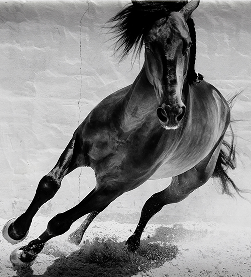 好的攝影作品總是能定格我們眼睛所錯落的瞬間美麗。拋卻機遇,優(yōu)秀的攝影師總需要為一張好照片的誕生付出諸多心血。而動物攝影對于攝影師而言難度更大,需要的技巧更是比其他攝影類型都要高。 Lena Saugen,挪威著名馬攝影師,自8歲于冰島接觸馬后便與其結下不解之緣。在她的拍攝生涯中難忘的經歷有很多,而這幅攝影作品無疑凝聚了更多的心血與付出。2014年7月,Lena踏上了尋找盧西塔諾馬的旅程,來自葡萄牙Coudelaria Vila Vicosa的一匹種馬最終在Lena Saugen的鏡頭中展現(xiàn)了奔躍的魅力和力量。 照片拍攝的當天Lena Saugen共為30余匹馬進行拍攝,它們皆品貌非凡,健美有力。Lena Saugen從不吝嗇對馬兒的贊美,但無疑這一匹更受其青睞:“總有一些極為出色的馬,像這匹種馬,它真的很頑皮 , 也喜歡炫耀,是一個優(yōu)秀種馬的極好個例,它將馬的美麗、強大、矯健——表現(xiàn)?!?/div> Lena Saugen的攝影才華與其對馬兒的熱愛使她創(chuàng)造了許多優(yōu)秀的作品。整幅攝影作品居中構圖,身處畫面中部的馬兒不拘俗套,頭身斜穿畫面,左側雙蹄騰空,鬃毛迎風飛起,動態(tài)十足。攝影師創(chuàng)意新穎,抓住了馬兒調轉方向的一瞬,泥沙四濺,騰躍不息。頭部卻直面鏡頭,目光堅毅。這樣的角度選擇既極好地表現(xiàn)了馬兒的身體線條又抓住了其頭部的具體特征。中國東晉畫家顧愷之就當時的繪畫提出了“以形寫神”的主張,要“形”、“神”并重,強調表現(xiàn)人物精神面貌時,對眼睛的處理最為重要,而Lena Saugen對馬的熱愛使其總能把握住不同馬兒的性格。這幅作品里馬兒的眼神對其性格的表現(xiàn)起到了重要的作用。作為室外攝影,她的作品在取光上一向頗為精巧,這幅攝影作品在后期的加工中,攝影師將影調定為暗冷,色彩上選擇黑白。天地混沌,毛色上乘的馬兒打破了黑白攝影作品的沉悶與黯淡,而灰色背景又極好地襯托馬兒之冷峻剛毅,作品整體上氣氛緊張,而又給人以恢弘大氣之感。 攝影師簡介 Lena Saugen,挪威著名攝影師,擅長馬匹攝影,為多家馬術類雜志社工作,亦供職于挪威廣播公司,并從事與馬有關的文章編輯和葡萄牙、西班牙的藝術項目工作。在格拉斯哥大學求學時Lena Saugen萌發(fā)了對攝影的興趣,后成為專業(yè)攝影師。對于馬的熱愛和其專業(yè)的拍攝技術使她在馬攝影領域聲名過人,她的攝影作品構思精巧,色彩不俗,極富動感,傳達了不同馬的性格,表現(xiàn)了人與自然的和諧與愛。 文/李娜 圖/Lena Saugen |