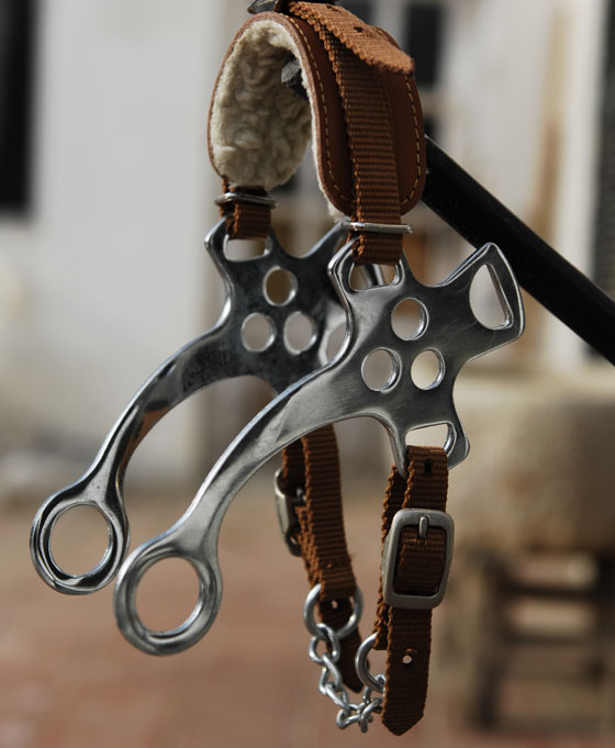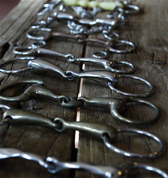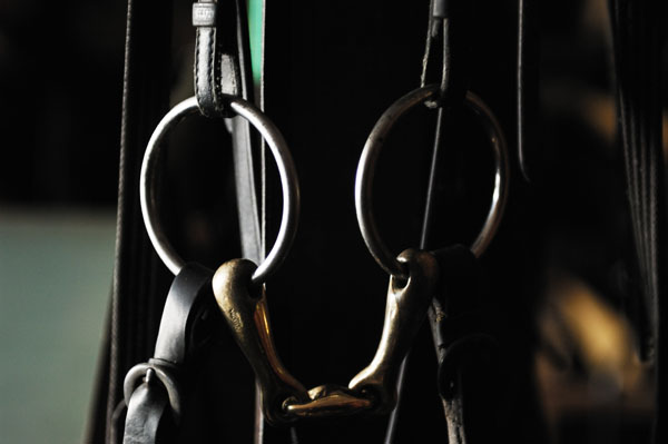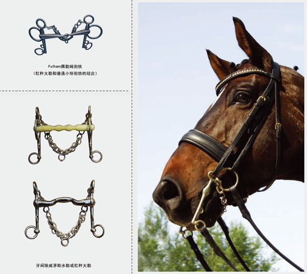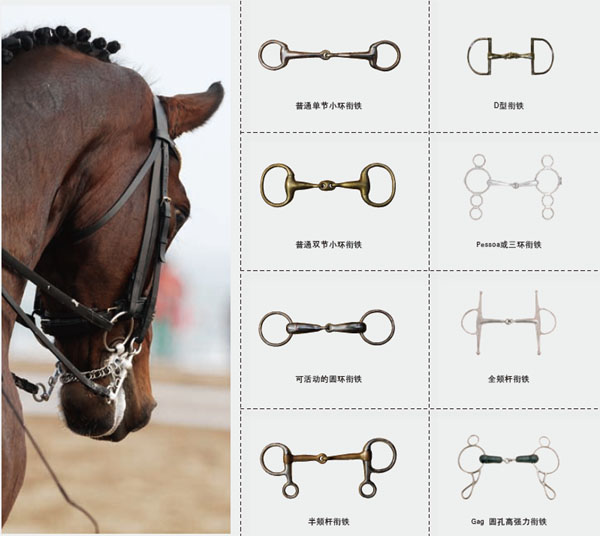 18世紀(jì)法國騎馬大師Francois Robichon de la Gueriniere常說,“如果銜鐵真的擁有讓馬匹輕口并完全服從的神奇能力,那么,任何一匹馬或任何一位騎手只要去趟馬具店,便可以掌握到騎馬的奧秘了”。他解釋講,一位訓(xùn)練有素的騎手只需要最簡單且最柔和的銜鐵便可得到馬匹的極度服從。也就是說,騎手通過教育和訓(xùn)練,來最終控制馬匹,而非通過使用強硬或功能復(fù)雜的銜鐵。馬身上的裝備越多,則說明騎手的騎術(shù)越差。 每年馬具店和馬具銷售目錄上都會推出形式各樣的銜鐵新品種,對于一位新馬主而言,很難知道自己到底應(yīng)該選擇哪一個。最簡單的拇指規(guī)則便是從最簡單柔和的開始用。如果騎手試圖通過強硬的銜鐵,而非教育和恰當(dāng)?shù)挠?xùn)練方法來征服馬匹,那么無法在市面上找到足夠強硬的銜鐵來控制馬匹。如果騎手一開始使用殘忍且會對馬匹造成巨大疼痛的特殊裝備,時間會證明一切的。不過,即便是像普通小環(huán)銜鐵這樣最簡單的銜鐵也都會有各種各樣不同的形狀,寬度和厚度。今天,就讓我們來介紹一下如何為馬匹挑選配戴適當(dāng)?shù)你曡F吧。 馬的嘴巴與挑選銜鐵的關(guān)系 在挑選和配戴銜鐵之前,第一個要了解的便是馬嘴巴的不同形狀會在哪些方面影響到銜鐵的挑選。 馬的嘴巴很多樣化,但卻常被忽視。在去馬具店選購新銜鐵前,應(yīng)好好觀察一下自己的馬匹。首先,從外側(cè)觀察馬的嘴巴;這匹馬是否是大腦袋,口鼻突出,嘴巴相當(dāng)大,比如說溫血馬?又或者正好相反,它的鼻子很精致,嘴巴很小,例如阿拉伯馬或純血馬?為了做到精確,還可以用光滑面的馬鞭或吸管來實際測量出馬嘴的寬度。將馬鞭或吸管放到馬嘴里的中間位置,就像配戴銜鐵一樣。然后,在嘴唇兩側(cè)外的馬鞭或吸管上做出標(biāo)記,一量便知。這便是將要選購銜鐵的最小寬度。通常情況下,如果是單節(jié)小環(huán)銜鐵,應(yīng)長出所測量寬度0.5-1厘米,而雙節(jié)小環(huán)銜鐵,佩勒姆銜鐵,或杠桿大勒,則只應(yīng)長出2毫米左右。銜鐵的寬度是要看中間橫桿的寬度。一般來講,大多數(shù)高14.3-16掌(即1.49-1.62米)的小型到中型馬匹應(yīng)選購12.5-13厘米寬的銜鐵,而頭比較大的大型馬則需配戴13.5厘米或甚至更寬的銜鐵。 現(xiàn)在,再來看一下馬嘴的內(nèi)部。通常大家都認為較厚的銜鐵相對較輕的銜鐵,力度更柔和些。這條原則在大多數(shù)時候是適用的,但在極端的情況下,有些銜鐵會非常的厚,馬嘴內(nèi)幾乎沒有足夠的空間來容納它。多數(shù)馬匹的舌頭和上腭之間都有足夠的空間,并喜歡這種超厚的銜鐵。但那些有厚厚的舌頭,且上腭較平的馬匹,嘴里的空間就相對小很多。例如,矮馬,阿拉伯馬和一些純血馬通常會喜歡薄一些的銜鐵,配戴起來會舒服很多。通常,我都會認為,厚度超過18毫米的銜鐵就會太厚,阿拉伯馬和速度賽馬一般都限制在16毫米厚。如果騎手還沒有在馬鞍上找到安全感,手亂且不穩(wěn),那么最好是要為這匹高大的溫血馬選購一個21毫米厚的銜鐵了。 在決定了馬匹需要的銜鐵寬度和厚度之后,便要選擇到底是買哪個款式的。由于銜鐵有很多不同的形狀,從而對馬匹起到不同的作用,因此,在銜鐵的款式選擇上,會非常棘手。 根據(jù)不同銜鐵對馬匹嘴巴和頭部的不同作用,可以將銜鐵分為以下五大家族。 銜鐵的五大家族 水勒韁可選配以下五類銜鐵: ? ? 普通小環(huán)銜鐵 ? ? 威茅斯水勒或杠桿大勒,可單獨使用,亦可在雙韁中,和普通小環(huán)銜鐵配合使用 ? ? 佩勒姆銜鐵 ? ? 圓孔高強力銜鐵 ? ? 無銜鐵水勒或Hackamore 在深入主題之前,我們應(yīng)該提醒自己的是,將馬匹頭部控制在最佳位置,從而掌控馬匹速度和方向的過程中,銜鐵只是其中一個很小的環(huán)節(jié),在任何時候,都不能認為銜鐵是馬匹形態(tài)和態(tài)度的主要原因。并不是銜鐵在訓(xùn)練馬匹,而是騎手。馬匹頭部的形態(tài)好壞取決于早期的訓(xùn)練,且一定是在配戴較柔和銜鐵的情況下進行訓(xùn)練。早期訓(xùn)練的重點是讓騎手手部用力柔和,騎坐和雙腿安靜且有效,逐漸讓馬匹更加柔軟,腰部和后肢踏進,力量從后向前推進,形成屈撓的外觀。而銜鐵在整個環(huán)節(jié)中,是最靠后的一個。單單依靠強硬的銜鐵和不?;蝿拥碾p手,只能會讓馬匹變得僵硬,行動受限。 綜上所述,騎手應(yīng)該明白了銜鐵的作用所在,以及為什么一定要選擇某一款式。銜鐵可以通過對馬頭的1到7個部位施加壓力,來控制馬匹。這七個部位分別是:嘴角,牙間隙,舌頭,項部,馬勒凹槽,鼻子和上腭。 現(xiàn)在,讓我們先來研究一下普通小環(huán)銜鐵。 普通小環(huán)銜鐵 多數(shù)馬匹都會樂意地接受普通小環(huán)銜鐵,大多數(shù)馬匹都是從配戴這種銜鐵來開始它們一生的訓(xùn)練和比賽生涯的。普通小環(huán)銜鐵可以是單節(jié)或雙節(jié)的,兩側(cè)用來連接水勒的環(huán)也可以是不同形狀的。 最常見且最簡單的便是可活動的圓環(huán)銜鐵,由兩個可活動的圓環(huán)和一個橫桿組成,橫桿中間是單節(jié)連接。當(dāng)騎手用力拉韁繩的時候,這種銜鐵會對馬嘴角施加壓力。相對雙節(jié)結(jié)構(gòu),單節(jié)的小環(huán)銜鐵對馬嘴和舌頭的擠壓作用更強。根據(jù)馬頭的不同位置,這些壓力和銜鐵的整體作用效果會有所不同。當(dāng)馬匹放