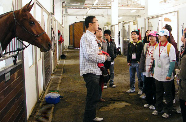 4月24日,中國農業(yè)大學愛馬者協(xié)會的幾十位動物醫(yī)學專業(yè)的學生來到天津環(huán)亞國際馬球會參觀學習。此次活動,旨在通過實習,讓更多的同學了解馬產(chǎn)業(yè)目前在中國的發(fā)展狀況、馬場的日常工作及馬獸醫(yī)目前的就業(yè)情況等。天津環(huán)亞馬球會獸醫(yī)師主要向同學們詳細講解和演示了賽馬修蹄的程序、有關工具和一些實踐中的小訣竅,并且隨后參觀學習了場地馬術訓練。一天的參觀學習雖然短暫,但對于大家都是難得的實踐機會,能讓這些動物醫(yī)學專業(yè)的學生多多接觸馬匹了解馬獸醫(yī)行業(yè)并能夠熱愛上這一行業(yè)是組織方所期望的。 |