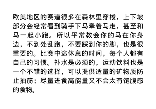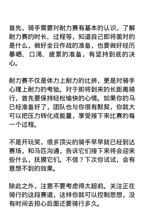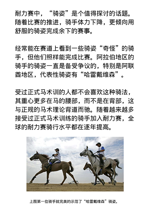 俗話說:“騎乘中,馬最不需要的就是坐在上面的人?!?/div> 耐力賽門檻低,只要有基礎(chǔ)騎馬經(jīng)驗(yàn)就可以參加比賽,但耐力賽本身對騎手體力要求一點(diǎn)也不低。騎手的重心和騎姿會很大程度影響馬匹的平衡,這也就要求賽事過程中,騎手需要在長時(shí)間和多變地形中始終保持良好的騎姿,和馬匹默契地配合。 經(jīng)歷一百多公里的長途比賽,身體難免會勞累酸痛,但相對于比賽帶來的樂趣和滿足感,這些都不重要。每一位耐力賽老手,骨子里都有一定程度的“瘋狂”。筆者在澳洲比賽時(shí),基本都是凌晨兩三點(diǎn)開賽,國內(nèi)大約是早上四五點(diǎn)開賽,在馬來西亞一般是下午四五點(diǎn)開賽,一直騎到半夜兩三點(diǎn)……. 筆者也會經(jīng)常問自己,為什么選這個(gè)項(xiàng)目“折磨”自己??墒敲慨?dāng)騎上馬背,這個(gè)想法就消失了。正是這點(diǎn)“瘋狂”,讓耐力賽騎手們一次又一次地超越自己。 有人說耐力賽屬于極限運(yùn)動,但其實(shí)耐力賽騎手分為兩大類——專業(yè)騎手和業(yè)余愛好者。馬匹亦然。所以速度并不是這項(xiàng)運(yùn)動的全部。 平衡的騎姿 依據(jù)個(gè)人的調(diào)整 體能準(zhǔn)備 心理準(zhǔn)備 作者介紹 潘映彤,中國香港著名耐力賽騎手,自 2012 年以來以青年騎手身份參加第一場 FEI 耐力賽,之后常年活躍于國內(nèi)外國際耐力賽事,曾代表中國香港出戰(zhàn)法國諾曼底世界馬術(shù)大賽。BP EQUINE LTD 營運(yùn)總監(jiān)。擁有 BHS STAGE 4 馬房經(jīng)理、資深職業(yè)騎手、教學(xué)資格和多年教學(xué)經(jīng)驗(yàn)。香港大學(xué)SPACE康樂與運(yùn)動管理系,并曾修讀蘇格蘭愛丁堡大學(xué)馬科營養(yǎng)課程。 對耐力項(xiàng)目感興趣的朋友歡迎收看中國馬術(shù)協(xié)會官網(wǎng)主辦,《馬術(shù)》雜志承辦的《【馭見·世錦賽征途】耐力賽參賽與訓(xùn)練經(jīng)驗(yàn)線上分享會》。 分享嘉賓 賈惠林:國際馬聯(lián)精英騎手 賈惠林,國際馬聯(lián)精英騎手。代表中國參加了2014年和2018年世界馬術(shù)大會和2016年的世界錦標(biāo)賽,并成為中國唯一一位在國際馬聯(lián)原賽制四星級比賽中完賽的騎手,同時(shí)現(xiàn)在也獲得了2022年世界錦標(biāo)賽的參賽入場券。截止至2022年8月31日共完成了14場160公里耐力賽,也是目前中國完成三星級比賽次數(shù)最多的騎手(累計(jì)完成14次)。 王志強(qiáng):兩次參與FEI耐力五大難賽道 王志強(qiáng),2015年進(jìn)入耐力項(xiàng)目,共參加國內(nèi)國際馬術(shù)耐力比賽40多場。2018年參加了世界馬術(shù)運(yùn)動會。兩次參與FEI耐力五大難賽道,法國弗洛哈克3星160公里16名,迪拜王子杯沙漠高溫賽道81名。法國哥斯達(dá)浩斯、楓丹白露,德國八本豪森3星160公里分獲第六和兩個(gè)第十。今年6月25日,獲世界錦標(biāo)賽耐力賽資格。 |