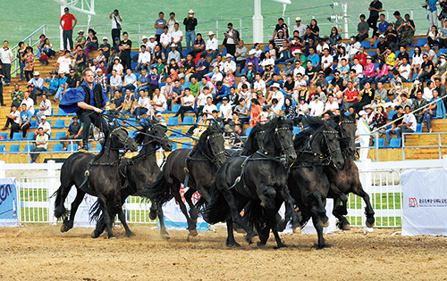 在表演之外,他為人謙遜,說(shuō)話謹(jǐn)慎,性情寬和,感覺(jué)跟站在8匹奔跑的黑色弗里斯蘭馬背上、與風(fēng)浪搏斗時(shí)勇猛的他,或者在障礙賽中跳障礙的他實(shí)在有點(diǎn)不像??墒?,對(duì)于這位來(lái)自馬術(shù)世家的傳統(tǒng)馬術(shù)表演者 Gabor Szegedi 而言,表演時(shí)充分展示自己國(guó)家的傳統(tǒng)馬術(shù)力量的興奮和野心,以及表演之后給予馬匹足夠的關(guān)愛(ài)和照料都很正常,沒(méi)有什么做作,也不帶些許虛偽。他跟許許多多實(shí)實(shí)在在的馬術(shù)人一樣,只是在用一顆純粹的心面對(duì)現(xiàn)代馬術(shù)無(wú)數(shù)的挑戰(zhàn)。 《馬術(shù)》:你為何決定要來(lái)一個(gè)離匈牙利這么遠(yuǎn)的國(guó)家? Gabor Szegedi:現(xiàn)在想來(lái),這就像是一種命運(yùn)的安排。在我來(lái)中國(guó)之前,在匈牙利就曾想跟一個(gè)朋友商量一些關(guān)于我個(gè)人在馬術(shù)發(fā)展上的問(wèn)題,這個(gè)人叫Vajk Bakaity,因?yàn)樗?dāng)時(shí)已經(jīng)在中國(guó)工作,我沒(méi)能跟他聯(lián)系上。他原本并不知道我找過(guò)他,但很巧的是過(guò)了幾天,他突然給我打了電話。他勸我應(yīng)該來(lái)中國(guó),我應(yīng)該跟他合作起來(lái),除了可以在中國(guó)參加障礙賽以外,我還可以把我的馬術(shù)秀帶到中國(guó),中國(guó)人肯定會(huì)很喜歡。 那時(shí)候我還在挪威工作,從職業(yè)的角度來(lái)看我算是取得了一定成果,我在挪威教的小學(xué)生自己也學(xué)會(huì)表演了,而且參賽的表現(xiàn)也很好。可是,我逐漸意識(shí)到應(yīng)該擴(kuò)大自己的世界,朋友說(shuō)的話不斷在我的腦中循環(huán),始終放不下。他第二次打電話勸我的時(shí)候,我就決定要向待了 10 年的挪威告別了,也要告別匈牙利,把自己的馬術(shù)文化帶到一個(gè)有同樣偉大馬術(shù)文化的國(guó)家。 《馬術(shù)》:你是如何在中國(guó)開(kāi)始馬術(shù)表演生涯的? Gabor Szegedi:這也源于一個(gè)巧合。我來(lái)中國(guó)原本是要做西部巨人馬術(shù)俱樂(lè)部的障礙教練,不過(guò)俱樂(lè)部的主人駱翔在我還沒(méi)來(lái)之前買了 6 匹黑色弗里斯蘭馬,他告訴我這些馬以后就是我的責(zé)任了,我想怎么訓(xùn)練他們就怎么訓(xùn)練。我對(duì)俱樂(lè)部當(dāng)時(shí)就對(duì)我有這么大的信任和支持深為感謝。剛到北京的第一天,下飛機(jī)之后的幾個(gè)小時(shí)我就認(rèn)識(shí)了一直到現(xiàn)在都在支持我的人娜佳(Nadya Kozinets),因?yàn)槲覍⑹撬齼鹤拥鸟R術(shù)教練。娜佳作為一個(gè)中國(guó)文學(xué)的博士、漢學(xué)家和障礙馬馬主教會(huì)了我很多東西,就連現(xiàn)在我也有很多事情是在她的幫助下解決的。 我開(kāi)始訓(xùn)練那 6 匹黑馬,教他們做匈牙利語(yǔ)里名叫“草原 5 匹馬”的表演。可令我沒(méi)想到的是,訓(xùn)練弗里斯蘭馬做匈牙利傳統(tǒng)的馬術(shù)表演會(huì)如此艱難。弗里斯蘭馬跟匈牙利馬不一樣,有時(shí)候會(huì)突然變得緊張,需要更長(zhǎng)時(shí)間和更多的練習(xí)才能學(xué)會(huì)同一件事情。有一段時(shí)間,我差點(diǎn)承認(rèn)失敗,自己也覺(jué)得可能我就是做不到。后來(lái),我花了漫長(zhǎng)的 5 個(gè)月終于成功將這些馬練出來(lái),并可以進(jìn)行這個(gè)表演。我們從馬場(chǎng)舉辦的表演開(kāi)始,進(jìn)而慢慢參加更大的活動(dòng),同年 10 月,我們就登上了浪琴表北京大師賽的舞臺(tái)。現(xiàn)在我會(huì)帶著 8 匹馬表演,而且近期我們正打算繼續(xù)增加表演馬匹的數(shù)量。 《馬術(shù)》:做這種表演肯定要承受很大的壓力,那你對(duì)要參加的活動(dòng)有什么組織方面的要求嗎? Gabor Szegedi:做表演的時(shí)候,我們的目標(biāo)是給觀眾傳達(dá)表演的力量,讓他們覺(jué)得整件事情很輕松,因此他們并不能看到背后的工作有多重??梢哉f(shuō),這是一種藝術(shù),而且為了做到這一點(diǎn),我們需要組織方在場(chǎng)地和馬匹安置方面給予一點(diǎn)幫助。 我每次跟大家只說(shuō)一句:如果我的馬睡得不踏實(shí),我也睡得不踏實(shí)。意思是,我們表演之前給馬匹提供的條件一定要好,一定要保證他們安全,可以休息好。我爸爸教過(guò)我一句話:馬匹是替我們跑在地面上的“同事”。有時(shí)候,我們?nèi)サ牡胤奖容^遠(yuǎn),要運(yùn)輸?shù)臅r(shí)間長(zhǎng),需要組織方給馬提供馬房,給我們提供休息的地方。表演的場(chǎng)地最好要夠大,地面要干,且盡可能平整。大家可以想像,從站在馬背上的角度,5 匹馬可能還好轉(zhuǎn)彎,動(dòng)作還有一定的緩沖度,但是 8 匹或者更多馬的群體隊(duì)伍已經(jīng)很長(zhǎng),我需要足夠的地方才能讓他們跑起來(lái)。如果場(chǎng)地太小或者太滑,很有可能馬匹會(huì)失去平衡,摔倒,甚至發(fā)生更嚴(yán)重的事故。其實(shí)這些大家只要用心一想就會(huì)明白。 《馬術(shù)》:你對(duì)自己的表現(xiàn)有怎樣的要求? Gabor Szegedi:我尊重觀眾,所以我希望每一次都能發(fā)揮出自己最好的表現(xiàn)。我們有時(shí)候會(huì)為了一個(gè)表演跟馬匹一起坐 30-40個(gè)小時(shí)的車,帶著幾百公斤的設(shè)備,我和助理經(jīng)常只能在夜里或者凌晨洗馬具,因?yàn)槿魏我粋€(gè)小東西,一個(gè)小細(xì)節(jié)都可