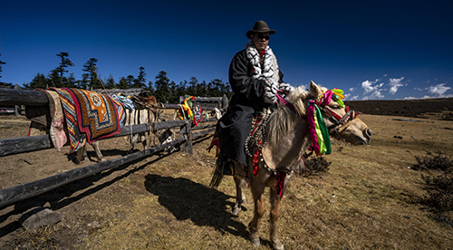 1626年春季的一天,在葡萄牙南部小鎮(zhèn)法魯,傳教士卡布萊爾在自己簡(jiǎn)樸的尖頂農(nóng)舍里,仔細(xì)地將古樸的搖椅蓋上防塵罩布,輕輕地拉上所有的窗簾,走出了狹長(zhǎng)的門廊,他要翻越千座大山,走向東方,尋找香格里拉…… 1924年春季的一天,俄羅斯探險(xiǎn)家尼古拉·羅列赫,把自己兩層的木屋拆下來,鋸成木材賣掉,戴上圓筒皮帽,來到印馬斯克車站,他要跨越千條江河,走向東方,尋找香格里拉…… 還有來自葡萄牙的卡瑟拉,來自美國(guó)的洛佩茲,來自英國(guó)的拜勒,來自匈牙利的喬瑪,來自法國(guó)的大衛(wèi)·尼爾……從17世紀(jì)20年代開始,一批批來自西方、南亞、中亞的不同膚色、不同民族、不同信仰的人們,像著了魔似的,以傳教、探險(xiǎn)、游歷等方式,義無反顧,前仆后繼地?fù)湎驂?mèng)中的香格里拉。 而我也正是被美妙傳說所吸引,被浩瀚的典籍所嘆服、被雄壯的雪山所震撼,他們牽引著我,也踏上了這場(chǎng)追逐神跡的旅程。 傳說中的香巴拉,那里常年鮮花盛開,那里四季五谷豐登,還有滿山碩果飄香,人人壽命以百年千年計(jì)算,只有活膩了的人,才會(huì)去尋求涅槃轉(zhuǎn)世的感覺。 怎樣才能進(jìn)入香巴拉呢?傳說中的上師可以踩云、乘風(fēng),我自然無力效仿,不過我選擇了最古老的騎馬方式。在滇西北,有一條世界上最高、最險(xiǎn)、最美的路,這條路跨越世界屋脊,盤轉(zhuǎn)于雪山奔流之中。上千年來,一隊(duì)隊(duì)世代與馬打交代的高原馬幫就穿行在這路上。 馬幫主要由馬鍋頭和趕馬人組成。馬鍋頭是馬幫的首領(lǐng),也是趕馬人的雇主,直接領(lǐng)導(dǎo)馬幫的運(yùn)輸活動(dòng)。每次上路,馬鍋頭和趕馬人各司其職,該走就走,該停就停,井然有序。馬腳子一般負(fù)責(zé)10匹左右的騾馬,一個(gè)馬腳子和他所照管的騾馬以及貨物被稱為“一把”。這樣幾“把”、幾十“把”在一起就結(jié)成了馬幫。 趕馬人承擔(dān)著馬幫的大部分雜活累活:每天早晚要生火做飯,早上上馱,下午下馱,要收、搭帳篷,晚上睡到半夜還要爬起來看看騾馬有沒有跑失。每天上馱下馱的時(shí)候,趕馬人要把自己負(fù)責(zé)的10多匹騾馬所馱的上千斤貨物抬上抬下,一天兩次,如遇江河或惡劣天氣,甚至更多。趕馬人每天不管多苦多累,都要伺候好騾馬,一日三餐,要先讓騾馬吃好,才輪到打發(fā)自己。 馬幫多使用母馬和公驢雜交所生的騾子作為運(yùn)輸工具,它們的體格不大,性情溫順,特別能負(fù)重。雖然它們的爆發(fā)力與奔跑速度無法跟馬匹相比,但它們的耐力卻遠(yuǎn)在馬及毛驢之上。馬幫對(duì)頭騾的選擇十分講究,它體型高大健壯,反應(yīng)靈敏,進(jìn)藏經(jīng)驗(yàn)豐富。馬幫把頭騾打扮得非常漂亮,它身披錦鞍銅蹬,脖懸響鈴,尾系紅絲絳。走在路上,馬幫頭騾的響鈴聲能傳出很遠(yuǎn)。 在令人炫目的峽谷、常年積雪的山峰、無邊無際的草原上,他們?cè)谶@條道路上行走、生活,他們不卑不亢地依賴著自然、對(duì)抗著自然,在寒風(fēng)中誦經(jīng)高歌,余音繞著風(fēng)馬旗直上雪山之巔。日復(fù)一日、年復(fù)一年,在風(fēng)餐露宿的艱難行程中,用清悠的鈴聲和奔波的馬蹄聲打破了千百年山林深谷的寧?kù)o,開辟了一條通往域外的經(jīng)貿(mào)之路。 在雪域高原奔波謀生的特殊經(jīng)歷,造就了他們講信用、重義氣的性格;鍛煉了他們明辨是非的勇氣和能力。他們憑借自己的剛毅、勇敢和智慧,用心血和汗水澆灌了一條生存之路、探險(xiǎn)之路和人生之路。 我想傳說中的香格里拉應(yīng)該就是這樣一種內(nèi)心的追求,香巴拉既不是神秘消失的瑪雅遺址,也不是捕風(fēng)捉影的外星幻境,更不是虛無縹緲的海市蜃樓,它是圣明的佛祖和代代相傳的賢人弟子締造的獨(dú)特的精神家園。它不是凡人在今生中不能輕易抵達(dá)的彼岸世界,而是可以通過自身拼搏達(dá)到的彼岸天堂。 馬幫每次踏上征程,都是一次生與死的體驗(yàn)之旅。茶馬古道的艱險(xiǎn)超乎尋常,然而沿途壯麗的自然景觀卻可以激發(fā)人潛在的勇氣、力量和忍耐。使人的靈魂得到升華,在這條道路上行走,感受生生不息的拼搏精神,通過馬幫一步步看到的瑰麗風(fēng)景確是實(shí)實(shí)在在烙印在我心底的福田秒國(guó)。 文、圖/大呂 |