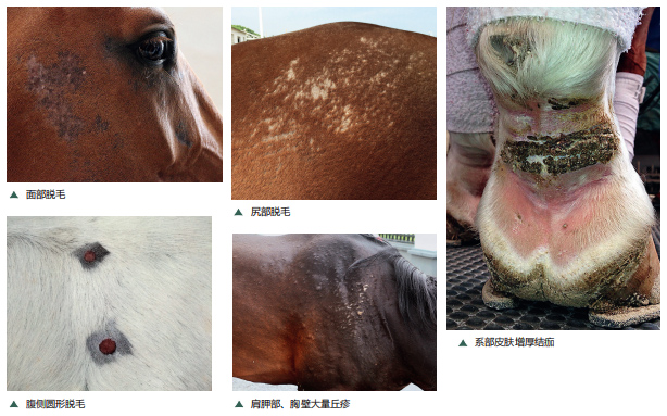 其它如尾根皮膚增厚結(jié)痂、口鼻部丘疹(疣)、頸部表皮破損有滲出液、系部皮膚破損化膿等情況,在此就不一一列圖了。 皮膚病的病因很多,且癥狀多樣,所以不能簡單地憑癥狀就判斷是什么原因引起的皮膚病。有時由不同原因引起的皮膚病可能表現(xiàn)出相似的癥狀,比如系部皮炎和血管炎都可以表現(xiàn)出系部結(jié)痂。有時即使是同一種皮膚病也會有不同的癥狀,例如馬類肉瘤的其中一型表現(xiàn)為環(huán)狀脫毛,另一型則表現(xiàn)為菜花樣外觀。所以,僅憑癥狀很容易將皮膚病混淆,而確定病因是成功治療皮膚病的關(guān)鍵。 進行皮膚病的診斷除了需要有豐富的經(jīng)驗,還需要一些輔助診斷措施,比如細胞學檢查、皮膚活組織檢查、過敏試驗、血清學試驗等。不經(jīng)獸醫(yī)診斷就用藥的話,浪費時間和金錢不說,如果耽誤治療或者使病情加重就得不償失了。此外,所用藥物對于馬兒的安全性也得不到保證。因此,不建議大家自己給馬治療。 當懷疑愛馬患了皮膚病時,大家可以通過觀察來收集一些皮膚病的相關(guān)信息并提供給獸醫(yī)。這些信息包括以下方面:有哪些癥狀?什么時候發(fā)生的?最開始發(fā)生病變的地方癥狀如何?癥狀有沒有變化?其他馬是否有相似癥狀?如果有其他馬感染,他們是否共用梳洗工具?最近飲食、香波、廄欄等管理方面是否有變化?該馬以前是否患過皮膚病?如果是長期反復(fù)發(fā)生的皮膚病,是在某個季節(jié)出現(xiàn)還是整年都有?把這些相關(guān)信息詳細地記錄下來,然后向獸醫(yī)咨詢或帶著愛馬就診,這些信息對于獸醫(yī)進行診斷將會有很大的幫助。 雖然皮膚病同其它疾病相比損害較小,但是也讓人不勝其煩,有時治療起來見效較慢。以下幾點可以預(yù)防和減少皮膚病的發(fā)生: 第一,定期環(huán)境消毒,保持環(huán)境干凈; 第二,定期給馬驅(qū)蟲,可以避免體內(nèi)外寄生蟲引起的皮膚病,如馬盤尾絲蟲病、馬尖尾線蟲病等; 第三,控制昆蟲,使用驅(qū)蟲劑并清理污水、腐爛的植物等,以此預(yù)防由昆蟲叮咬引起的過敏反應(yīng)等問題; 第四,有條件的話,馬匹的用具盡量不要混用,或者對共用的用具定期消毒; 第五,對于已經(jīng)患細菌性、真菌性、體表寄生蟲性皮膚病的患馬,必要時要將其隔離; 第六,在多雨潮濕的地區(qū),注意保持馬體表和廄舍的干燥。 最后,對于外傷要積極處理,以免繼發(fā)細菌、真菌感染,或肉芽組織過多、淋巴管炎等問題。此外還要注意,這些病可以傳染給人和其他動物,因此在接觸患馬時要注意做好防護。 文、圖/海瀾馬醫(yī)院 包苞 |