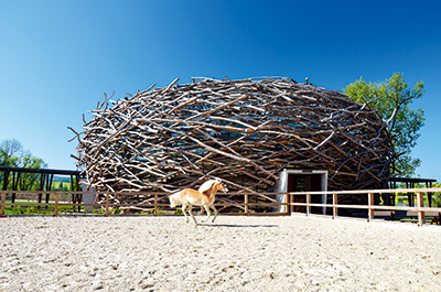 一個(gè)能成為旅人們心之向往的遠(yuǎn)方,或許是因?yàn)槟莾旱纳酱谰白阋詼焓幮撵`,或許是因?yàn)橐皇自?shī)抒發(fā)了太深沉的期許,亦或是一個(gè)動(dòng)人的故事就那么讓你著迷了。它出現(xiàn)在你視野里的時(shí)間不一定,一個(gè)偶然,就牽動(dòng)了你的心。 可是一個(gè)破舊荒蕪的農(nóng)場(chǎng),會(huì)有什么吸引力? 在捷克共和國(guó)的Olbramovice省,距離布拉格向南50公里,有一處農(nóng)場(chǎng),周圍是典型的山麓地區(qū)景觀,有大片森林、廣闊的草地、濕地和連城網(wǎng)狀的池塘。農(nóng)場(chǎng)建于19世紀(jì),包括一座帶有煙囪的釀酒廠,不過(guò)從20世紀(jì)80年代末開始它就被閑置下來(lái),農(nóng)場(chǎng)里的建筑物也很快衰敗。唯一留下來(lái)的居民就是住在釀酒廠煙囪上的鸛鳥。 2006年SGL Projekt設(shè)計(jì)公司應(yīng)邀設(shè)計(jì)改造一處農(nóng)場(chǎng),用于會(huì)議、公司展示、舉辦公司活動(dòng)和休閑娛樂(lè)活動(dòng)。他們看中了這座建于19世紀(jì)的農(nóng)場(chǎng),并因?yàn)樽?926年起就一直居住在釀酒廠煙囪里的鸛鳥而最終將其買下。 “鸛鳥的鳥巢對(duì)我們來(lái)說(shuō)是一種象征,影響了我們對(duì)于馬場(chǎng)的設(shè)計(jì)概念及該項(xiàng)目的主題設(shè)計(jì)。我們是被鸛鳥的忠誠(chéng)吸引了!有近90代鸛鳥每年從非洲飛回這個(gè)農(nóng)場(chǎng),于是我們盡力設(shè)計(jì)好它,也為了讓人們?cè)俅位氐竭@里來(lái)?!?/div> 這些鳥筑巢的耐力也深深吸引了建筑師們。數(shù)十年來(lái),它們筑的巢不管是形狀還是使用的材料都始終如一,并且一直都在同一個(gè)地方,從未想過(guò)要變個(gè)花樣來(lái)。推陳出新一直都是困擾當(dāng)今建筑師和施工人員的一個(gè)難題,而鸛鳥沒(méi)有選擇其他地方,也不想標(biāo)新立異與其他鳥競(jìng)爭(zhēng)。這成為建筑師們領(lǐng)會(huì)建筑精神的一個(gè)啟示。這些建筑師們謙遜的接受這些鸛鳥的指引,對(duì)這座農(nóng)場(chǎng)進(jìn)行整體設(shè)計(jì)和改造。 舊農(nóng)場(chǎng)由一個(gè)幾乎方形的封閉院子和一個(gè)豬舍組成。院子里包括兩處住宅、一個(gè)釀酒廠、一個(gè)谷倉(cāng)和一個(gè)馬廄。貴重的物品都保留了下來(lái),質(zhì)量不佳的建筑都被清除掉了,并在原址上建起了新的。住宅的院子里包括一個(gè)接待室、一個(gè)酒店、會(huì)議大廳、餐廳、游泳池、保齡球室和為貴賓準(zhǔn)備的帶有私家花園的房子。 除了住宅院子,設(shè)計(jì)師們還專為動(dòng)物另建了一處新院子。在這部分區(qū)域內(nèi)設(shè)計(jì)師按照鸛鳥巢的形狀設(shè)計(jì)了一個(gè)圓形的馬場(chǎng)。其外部直徑34米,高12.5米。該 建筑 最多的時(shí)候用于騎馬,不過(guò)在進(jìn)行簡(jiǎn)單的改造之后,就可以臨時(shí)變成一個(gè)舉辦會(huì)議、文娛活動(dòng)的場(chǎng)所。馬場(chǎng)就安置在馬廄的附近,并與餐館直接相連,支撐結(jié)構(gòu)由膠合木梁制成,包層用的是聚碳酸酯材料,最外層的橡樹枝結(jié)構(gòu)使得建筑別具特色,同時(shí)也提 供了遮陰。這些長(zhǎng)7米、9米或11米的橡樹枝被牢牢固定在建筑物的最外層上,總計(jì)約有200噸重。 在建筑物的頂部中央有一個(gè)直徑8米的自然光口,作用是加強(qiáng)內(nèi)部空間自然空氣的流通。自然通風(fēng)設(shè)計(jì)為場(chǎng)館提供了一個(gè)良好的環(huán)境氛圍。場(chǎng)館的騎馬廠區(qū)專為馬術(shù)運(yùn)動(dòng)而設(shè)計(jì),地面由沙子覆蓋,并裝有毛細(xì)灌溉系統(tǒng)。在進(jìn)行其他活動(dòng)的時(shí)候,可以用膠合板將沙地蓋上。騎馬區(qū)由一圈保護(hù)欄圍起,觀眾看臺(tái)有大約200人的坐席,在樓上還設(shè)計(jì)有貴賓看臺(tái)。 鸛鳥巢農(nóng)場(chǎng)于2010年建成,馬場(chǎng)成為這個(gè)農(nóng)場(chǎng)區(qū)的地標(biāo)。農(nóng)場(chǎng)與鸛鳥的故事使得這個(gè)地方多了一種浪漫色彩。它曾熱鬧過(guò),后來(lái)被舍棄,漫長(zhǎng)孤寂的歲月里只有鸛鳥每年如約的陪伴和守護(hù)。農(nóng)場(chǎng)像一位風(fēng)燭殘年的老人,鸛鳥像是它的子孫,也幾乎是愛侶。在我們看來(lái),鸛鳥巢農(nóng)場(chǎng)是幸運(yùn)的,它雖失去了寧?kù)o,卻煥發(fā)了生機(jī)?,F(xiàn)在越來(lái)越多的人來(lái)到這里度假,騎馬。后來(lái),SGL Projekt 設(shè)計(jì)公司還為農(nóng)場(chǎng)設(shè)計(jì)了一個(gè)動(dòng)物保護(hù)中心,最近還建成了一個(gè)更大的矩形騎馬場(chǎng)。 文/吳曼 圖/SGL Projekt |