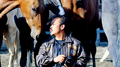 野馬集團(tuán)的酒店是建在山上的,可是怎么看都不像,正面連著街道,遠(yuǎn)觀近勘都不曉得山在哪兒,可是在酒店里面九曲十八彎那么一繞,電梯四層上去,出了某一扇小門竟然還是地面。哦,果然是在山上的。酒店層層錯(cuò)落的房間,頭腦偷懶一點(diǎn)的人怎么都繞不明白,這么復(fù)雜的格局究竟是如何在一個(gè)人的腦子里嫁接清楚的。 更讓你摸不著頭腦的是酒店里無處不在的落地大鏡子,究竟是墻的面積比較大還是鏡子比較大?走著看著你總會自覺不自覺地多瞄自己幾眼,形象如何,姿態(tài)又怎樣?那么多不知從哪兒收羅過來的各種經(jīng)歷過歲月滄桑打磨了的戰(zhàn)車、水車、紡車,以及各種看不出名堂的車,還有鼓、扁擔(dān)、蓑衣……羅列不盡,無處不勾起你對那久遠(yuǎn)民間生活的豐富聯(lián)想。還有各種動物的標(biāo)本,時(shí)不時(shí)就會在某個(gè)角落里忽一現(xiàn)身,自然的氣息也來混淆你的記憶。筆者每每走不出去又倒不回來的時(shí)候總不忘問一句:這迷宮似的酒店究竟是哪路大神設(shè)計(jì)的?得到的答案都是:“我們老大!” 彌散著干草味的馬房,威斯恩的豪華馬廄里住著全世界最大的汗血馬主的數(shù)百匹寶馬。馬房地面每天都要沖洗三次,難道這些汗血馬還有潔癖不成?馬廄的自動飲水裝置更像是馬兒們的玩具,頭壓下去就自動往馬臉上、嘴里噴水,呲呲,樂此不疲。所有的木質(zhì)馬槽都是有故事的,不知它們經(jīng)歷了幾朝幾代,又是經(jīng)過了多少輾轉(zhuǎn)才從我們祖國山河的某個(gè)角落歸宿到此。除了汗血,也還有熱血、溫血、冷血,小矮馬和野馬。到底有多少這樣的馬房,筆者始終沒數(shù)明白,因?yàn)檫@地方實(shí)在是太繞了。 那些遒勁蒼涼枝干正是“生而一千年不死,死而一千年不倒,倒而一千年不朽”的大漠英雄樹——胡楊;那些立著躺著的長長短短的柱狀石頭都是歷經(jīng)億萬年沉淀的硅化木;那些被高高低低支起來的一塊塊都是天外來客,有一些敲敲還挺動聽,據(jù)說不少國家領(lǐng)導(dǎo)人都來敲過;那些面目輪廓算得清晰的草原石人刻畫的都曾是草原人中活出了精彩的角色;還有這些不起眼的小石頭上面竟然隱約可見祖先們的粗糙巖畫;就連這么些個(gè)樓梯扶手都曾是某個(gè)富貴豪門家的拴馬樁,早就見夠了繁華冷落,世事輪回…… 聽說要見到這個(gè)傳說中的老大了,很有一陣緊張。遠(yuǎn)遠(yuǎn)看到有一個(gè)人正指揮在建的工程,藍(lán)色的運(yùn)動款 T 恤,修身地推出了圓鼓鼓的肚子,黝黑的膚色,半禿的頂,一撮濃黑的小胡子跳躍般發(fā)出粗獷的聲音,好一個(gè)“胡人”。直到走近了,“胡人”伸出手來,筆者也不敢相信,這就是老大嗎?整顆心就像是懸在了半空里,上也不是,下也不行。這位老大已經(jīng)一天沒吃飯了,黝黑的皮膚也遮不住更黑的黑眼圈,不過眼神透露著一股子“勁兒”。 晚餐就在園子里的一個(gè)蒙古包里,餐前餐后老大是一點(diǎn)兒沒閑著,看到包里哪兒有一點(diǎn)點(diǎn)不順眼隨即提出來,身邊的幾個(gè)姑娘立即行動,里里外外馬上搞定。筆者向來是不善言辭的,這回更不知道該說些什么,只能傻兮兮地笑著聽老大忙不迭地張羅,偶爾終于絞盡腦汁抓到一個(gè)點(diǎn)要追問下去,卻根本跟不上老大的節(jié)奏。上一秒剛聽到烏孫王、細(xì)君公主,還在懊惱這都是誰啊,下一秒就轉(zhuǎn)到了天山和西部地貌,偶爾還穿插著,這個(gè)案臺擺的位置不對,那個(gè)果醬怎么沒上……老大只是簡單吃了點(diǎn),就和衣側(cè)躺在包里的榻上,他要趕緊瞇上一會兒,因?yàn)橥硪恍┻€要招待幾位要人。 老大帶著一行訪客逛生態(tài)園的時(shí)候,看他指著這兒那兒。這兒以后會是一個(gè)室內(nèi)馬場;這塊地方我留出 X 米寬的距離,干什么都行;這邊會是一整面的顯示屏;這些小房子馬上就建好了,我之前從北京弄回來世界各地的名犬,就養(yǎng)在那邊的馬房里,到時(shí)候得把它們都轉(zhuǎn)移到這里,上面布置成大鳥籠子…… 他像電影《盜夢空間》里的造夢者一樣可以直接在腦子里完成整座城市的建設(shè),不同的是他很快就可以將那些夢境變成現(xiàn)實(shí)。他在湖南買了兩座老宅子,一座是左宗棠的,另一座是王震的。他將這宅子都拆卸了,一磚一瓦一梁一木翻山越嶺萬里迢迢地運(yùn)回來,再搬到他的古生態(tài)園里從新組裝了,為這兩位先人蓋兩座博物館。 老大的右眼眶上有一道明顯的傷疤,那是多年前為我國申報(bào)世界遺產(chǎn)去航拍阿爾泰山,乘著動力傘馭風(fēng)飛行,不過氣流不順從千米高空墜落下來,他與死神擦肩而過,留下了這印記。他的攝影作品包羅了西域的風(fēng)情、地貌、人物和駿馬。酒店和生態(tài)園有多間油畫展廳,展出的油畫都是他請中亞的功勛畫師照著他的的攝影作品畫出的。在一組講述絲綢之路的作品中,他要畫師把自己也畫進(jìn)故事里,或是一個(gè)粗莽的馬夫,或是征戰(zhàn)沙場的將士,這樣撫慰自己回不去曾經(jīng)的心。他在國內(nèi)首次成功繁育了一對雙胞胎汗血馬,很可惜其中一匹剛出生不久便夭折了,他請畫師按照之前給它拍過的照片畫成了畫,還將這小馬做成了標(biāo)本,永遠(yuǎn)奔跑在他的藝術(shù)空間里。 他打獵,像個(gè)野人,辦公室里滿是“原始的氣息”,各種野生動物的皮毛標(biāo)本栩栩如生,