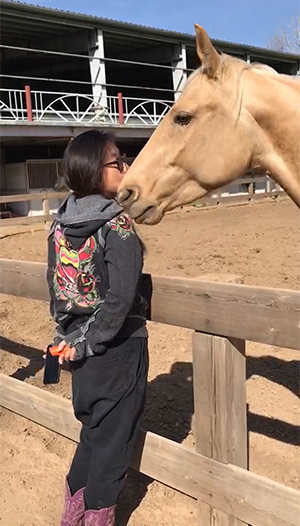 我的小母馬2020年4月滿4周 歲,名字叫Pocahontas,小名Poca , 朋友們親切地叫她“撲克”,家人則一致稱呼她為“馬柒”,因為家里大小寵物前面有六個了,她排行第七。撲克是一匹金色的夸特馬。 北京順義的大馬場是我們的游樂園,有放牧的沙土草地,也有安全奔跑的標(biāo)準(zhǔn)訓(xùn)練場所。教練員和運動馬在工作和訓(xùn)練的時候,撲克就在旁邊的草場地里與小伙伴嬉戲打鬧,爭風(fēng)吃醋。對了,撲克的玩伴是頭毛驢,是一頭會說話的小毛驢,在我們家寵里排行老六,是撲克的小哥哥。 第一次接觸馬是因為女兒,小時候帶她騎小矮馬在河邊溜達,中學(xué)時代帶她嘗試馬場馬術(shù),加入了北京最老牌馬術(shù)俱樂部的會員。后來也許跟許多家長的經(jīng)歷一樣,孩子半途而廢,媽媽從此愛上了馬。能夠放棄職業(yè)做全職媽媽,我感覺幸運,也非常滿足,直到女兒去美國上大學(xué),生活和規(guī)律完全改變了。女兒在南加利福尼亞大學(xué)讀文學(xué)系,媽媽當(dāng)時幻想過陪讀同時再修一個電影學(xué)學(xué)位,女兒嫌棄地暗示絕不允許跟她在同一所學(xué)校。她心目中媽媽的生活是這樣子的:坐在馬背上溜達,有節(jié)奏地起伏,她還特意用手比劃了一下那個節(jié)奏的優(yōu)雅飄揚。 主觀和客觀的多方面因素,使得我在馬背上本就有限的時間越來越少。也許是自我逃避,我找不到女兒腦海里馬背飄揚的感覺,直到遇見德國馴馬師和表演藝術(shù)家Diane黛安娜大姐,我對馬術(shù)的興趣終于開始有了系統(tǒng)和方向。黛安娜大姐在北京工作的時候,有段日子我們幾乎每個周末都聚在一起,話題離不開馬和調(diào)訓(xùn)。向她學(xué)習(xí)的最好方式莫過于我也擁有一匹自己的馬,一匹小馬,從頭開始,把書本知識在場地里實踐和消化。黛安娜大姐說過,如果我是一匹馬,應(yīng)該是夸特馬! 第一次見到撲克的時候,她幾乎全身都裹著泥漿,一雙眼睛顯得分外明亮,充滿智慧。她安靜又敏銳地觀察著我的一舉一動,小心翼翼地靠近著她余生的伙伴。與其說我成為了撲克的主人,還不如說撲克從此擁有了我。 Pocahontas(寶嘉康蒂),這個美麗的名字原屬于北美洲的一個美麗的印第安公主,原意是“愛嬉戲的”“調(diào)皮的”。撲克的父系母系都是美國西部馬術(shù)中的截牛馬(Cutting),身材相對高大而敏捷。撲克完全具備了夸特馬短程所需的完美爆發(fā)力,靈活敏捷,最令我欣賞的特質(zhì)是她的安靜、勇敢和善良。在黛安娜大姐的引導(dǎo)下,撲克從初級鞍下訓(xùn)練、自主平衡和服從開始,一天比一天健壯、自信、善解人意。在這個過程中,收獲最大的是我自己,從動物心理學(xué)和運動生理學(xué)開始,我學(xué)習(xí)觀察馬的內(nèi)在與外在,學(xué)習(xí)馬術(shù)作為表演藝術(shù)和運動競技的各個類別、歷史軌跡,考察、研究成熟國家的工業(yè)化市場。開闊眼界和知識的魅力,遠遠超過了所謂的“馬上貴族氣質(zhì)”,或者西部狂野能給予我的外在虛榮與滿足。撲克2020年才四周歲,未來方向是西部狂野,還是競技場上較量,或者成為一個養(yǎng)尊處優(yōu)的大寵物?她的前途命運牢牢掌握在我的手中,她與我同步學(xué)習(xí)和成長。我將選擇和決定撲克的未來,誰規(guī)定是馬就一定要被人騎乘?不過,我最重要的選擇方向,還是填充女兒的那一幅圖畫,那幅媽媽騎在一匹美麗的駿馬上優(yōu)雅飄揚的圖畫。 黛安娜大姐因為市場原因不得不提前離開中國,非常遺憾我們的周末活動沒有了。馬場搬遷的動蕩、瘟疫全球化趨勢等各種原因,使得撲克的初級訓(xùn)練日程被迫擱置。黛安娜大姐從德國再來北京的計劃也無限期推遲,我需要重新規(guī)劃我和撲克的生活和訓(xùn)練日程。 春天如期而至,夏天即將來臨,我將用今年余下的時間來考慮和規(guī)劃明年的計劃。2020年注定是動蕩、停滯、悠閑的一年。 圖、文/崔紅 |