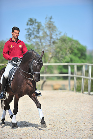 理想情況是當(dāng)盛裝舞步的馬在最高程度的收縮時(shí)仍保持放松。因?yàn)榇藭r(shí)的它動(dòng)感十足、富有彈性、擺動(dòng)穩(wěn)定而且賞心悅目。騎手不必有過(guò)多推動(dòng),也不必特別用力,他只需要安靜地坐著。此時(shí)馬的平衡非常好。 放松不僅對(duì)馬的肌肉,脛腱和骨骼有益,而且還對(duì)馬的內(nèi)心有益。從馬匹訓(xùn)練一開(kāi)始,放松就是我們要達(dá)到的首要目標(biāo)。但是,當(dāng)騎手開(kāi)始讓馬收縮,使其更加具有活力且富有表現(xiàn)力時(shí),卻老是發(fā)生錯(cuò)誤。由于收縮工作比熱身要難得多,于是緊張會(huì)悄然而至。 對(duì)我來(lái)說(shuō),關(guān)鍵是絕對(duì)確保熱身時(shí)馬有最高程度的放松——在騎手要開(kāi)始進(jìn)行任何收縮工作之前,它已經(jīng)放松且柔軟。如果馬在輕松的工作中還沒(méi)有達(dá)到放松和柔軟,那么讓它在更有難度的工作中去達(dá)到放松和柔軟是不可能的。當(dāng)在熱身場(chǎng)觀(guān)察大獎(jiǎng)賽參賽馬時(shí),你會(huì)相當(dāng)肯定地發(fā)現(xiàn)它們中的一些從沒(méi)有達(dá)到真正的放松和伸展。因此,當(dāng)騎手讓馬做收縮時(shí),馬的頸部升高并變短,背部緊張。某種程度上馬是表現(xiàn)出了節(jié)奏,但它并沒(méi)有通過(guò)有活力的后肢和擺動(dòng)的背部使后軀降低。所有的大獎(jiǎng)賽騎手——無(wú)論是業(yè)余的還是專(zhuān)業(yè)的騎手——都面臨這種挑戰(zhàn),因此我總是在這方面要下足功夫。我努力試著讓馬在最難的動(dòng)作中既是有力、活躍有節(jié)奏的,同時(shí)又不失去柔軟和擺動(dòng)的背部。 熱身 不管我騎的是一匹4歲的馬還是一匹大獎(jiǎng)賽馬,它們熱身的前15分鐘實(shí)質(zhì)上是一樣的。