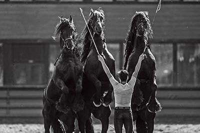 汗血寶馬的故事流傳了兩千多年,傳說(shuō)它能“日行千里,夜行八百”,奔跑時(shí)流的汗是血紅色的。今天,故事的主人公就是來(lái)自新疆古生態(tài)園汗血馬基地的汗血馬表演隊(duì)隊(duì)長(zhǎng)——韓齊,天山腳下的天馬騎士。 韓齊是一名錫伯族的小伙子,來(lái)自新疆伊犁霍城縣。家里養(yǎng)馬,從小就跟著爺爺在草原上策馬奔騰。在他八歲那年,父親給他買(mǎi)了一匹小馬駒。韓齊如獲珍寶,天天和小馬駒在一起,照顧、訓(xùn)練它:“我們家世代沒(méi)有斷過(guò)馬,小時(shí)候就騎著馬去打比賽,叼羊。我可以感覺(jué)出它們心情的變化,同樣它們也可以感覺(jué)到我心情不好的時(shí)候。和馬相處,就像跟兄弟在一起一樣?!表n齊從小這些賽馬、叼羊、打獵、繁育馬、調(diào)教生馬的經(jīng)歷,讓他練就了一身本領(lǐng),也和馬產(chǎn)生了不一樣的感情。 初中畢業(yè)后,韓齊進(jìn)入伊犁一所大專(zhuān)院校學(xué)習(xí)畜牧獸醫(yī)專(zhuān)業(yè),通過(guò)不斷學(xué)習(xí),對(duì)馬的身體結(jié)構(gòu)、生長(zhǎng)期、飼養(yǎng)方法,他都熟稔于心。畢業(yè)后,韓齊進(jìn)入一家做伊犁馬繁育的馬場(chǎng)工作:“當(dāng)時(shí)我是從最底層開(kāi)始干,在那邊負(fù)責(zé)鏟馬糞和喂馬這些工作,但只要一有空我就會(huì)往實(shí)驗(yàn)室湊,我也想學(xué)他們?cè)趺醋霾杉ぷ??!?/div> 在伊犁馬場(chǎng)工作的那段時(shí)間,韓齊第一次接觸并騎乘到了汗血馬,一下子就愛(ài)上了身型矯健、四肢纖長(zhǎng)、步履輕盈和個(gè)性不羈的汗血馬?!爱?dāng)時(shí)還小嘛,每周只能騎那么幾次汗血馬不夠過(guò)癮,覺(jué)得能在大場(chǎng)地里騎著汗血馬奔騰是一件很酷的事?!庇谑窃谂笥训慕榻B下,韓齊來(lái)到了新疆古生態(tài)園汗血馬基地,開(kāi)啟了一段全新的旅程。 韓齊的學(xué)習(xí)能力很強(qiáng),來(lái)到汗血馬基地沒(méi)幾年就當(dāng)上了汗血馬表演隊(duì)的隊(duì)長(zhǎng),帶領(lǐng)表演隊(duì)的隊(duì)員們每天進(jìn)行訓(xùn)練和彩排,為表演做準(zhǔn)備。 每人都有各自負(fù)責(zé)的馬匹,早上第一件事便是刷馬,檢查馬的身體和表現(xiàn)是否有異常。接下來(lái)便是第一場(chǎng)訓(xùn)練,騎自己的英式馬進(jìn)行騎乘訓(xùn)練。畢竟是馬背表演,騎乘技術(shù)和基礎(chǔ)還是必須要強(qiáng)調(diào)的,通過(guò)做一些路線(xiàn)和障礙練習(xí),來(lái)鞏固自己騎乘的基本功,這樣才能在表演時(shí)更自如地呈現(xiàn)。 第一匹馬騎完打理好放回馬房后,拉出表演馬做無(wú)鞍的驏騎訓(xùn)練。馬拉出來(lái)先打圈熱身,直接翻身上馬練習(xí)自己表演的動(dòng)作,使馬或站立或臣服。 現(xiàn)在韓齊手里有四匹他負(fù)責(zé)的馬,“古阿亞樂(lè)”、“粉泡”、“玉石眼”和“戰(zhàn)神"。 “古阿亞樂(lè)”算是韓齊在英式騎乘上的老師:“大家都說(shuō)一個(gè)新騎手能從成熟馬身上學(xué)到很多東西,剛剛來(lái)到汗血馬基地的我就從這匹‘老馬’身上學(xué)到很多英式騎乘的技巧和訓(xùn)練方式?!?/div> “粉泡這匹馬的名字還是我的前女友起的,因?yàn)檫@匹馬一出汗身上就會(huì)變成嫩嫩的粉色;還有就是這匹馬脾氣特別暴躁,像小炮仗似的一點(diǎn)就著,所以才叫它粉泡?!?/div> “玉石眼”是韓齊來(lái)到汗血馬基地后騎乘的第一匹表演馬,到現(xiàn)在還是愛(ài)不釋手。期間這匹馬幾次被分到其他人的手里,后都被韓齊要了回來(lái)?,F(xiàn)在韓齊準(zhǔn)備重新訓(xùn)練這匹馬,做“立馬”動(dòng)作,雖說(shuō)現(xiàn)在立的時(shí)間不夠長(zhǎng),但韓齊相信“玉石眼”的能力,相信他早晚有一天能把這個(gè)動(dòng)作做到第一。 “戰(zhàn)神”算是汗血馬基地的一塊金字招牌,是韓齊的手下愛(ài)將。雖說(shuō)這匹馬2018年才分到韓齊的手里,但這對(duì)人馬組合現(xiàn)在的配合卻已是相當(dāng)?shù)哪酢?/div> “說(shuō)實(shí)話(huà),這匹馬最初分到我手里的時(shí)候,我還挺害怕的,因?yàn)閺那皼](méi)有接觸過(guò)這種直立行走的動(dòng)作,而且覺(jué)得這個(gè)動(dòng)作看起來(lái)難度非常大,非常刺激,但同時(shí)又有點(diǎn)危險(xiǎn)?!?/div> 當(dāng)時(shí)負(fù)責(zé)調(diào)教“戰(zhàn)神”的騎手離職了,便把它分給了另一名騎手,但“戰(zhàn)神”的狀態(tài)卻一直沒(méi)有發(fā)揮出來(lái),動(dòng)作也做的不是那么漂亮。作為表演隊(duì)的隊(duì)長(zhǎng),韓齊覺(jué)得自己需要負(fù)起這個(gè)責(zé)任,去做點(diǎn)什么。雖說(shuō)“戰(zhàn)神”不在自己手里,但每天韓齊都會(huì)去觀察別的騎手對(duì)它進(jìn)行的訓(xùn)練,分析動(dòng)作要領(lǐng)和馬不同的狀態(tài)。一段時(shí)間過(guò)后,抱著試一試的心態(tài),韓齊把“戰(zhàn)神”要了過(guò)來(lái)。剛開(kāi)始的兩三天也不是那么的愉快,“我的脾氣暴躁,馬的脾氣也暴躁,磨合得并不順利,我被馬咬過(guò),也因?yàn)榻?jīng)驗(yàn)不足不小心把馬弄傷過(guò)。幸運(yùn)的是我沒(méi)有放棄,慢慢放下性子和馬磨合,等大概訓(xùn)練十多天,我們終于站上了舞臺(tái)完成了一次表演。那一刻我感覺(jué)自己一下子就成長(zhǎng)了?!?/div> 心里的腳步?jīng)Q定了前進(jìn)的路,就像韓齊一樣,以夢(mèng)為馬,砥礪前行。 文/李晏萍 圖/韓齊 |