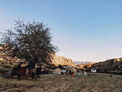 厭倦了千篇一律的都市霓虹和熙熙攘攘的吵鬧人群,愈發(fā)想要到手機信號都覆蓋不到的山里躲一份清靜。 在新疆荒野牧場創(chuàng)始人小馬哥的組織下,我們幾個又一次出發(fā)進了山里。與上次薩拉達萬峰遠山旅程不同,這次我們要去的目的地是荒野峽谷,一個充滿神秘與荒涼的地方。 快樂沒有大小,只有心之向往。 9月4日,荒野牧場一行人,還有野生廚房達人高原和戶外達人、攝影師吳奇,我們十人一大早就來到位于烏魯木齊南山的荒野牧場,開始打包收拾要帶的行囊。 這次要去的荒野峽谷并不在深山里,底盤高的大皮卡足以應付這段坎坷崎嶇的碎石路。 有了兩輛后勤車的跟隨,帳篷和食物補給不需要綁在馬鞍上自己背,倒是一股腦全扔進了車里,順便還帶了些小玩意,甚至把我晚上睡覺習慣抱著的獨角獸抱枕都扔到了車后座上。除了這些,補給車里還塞進了折疊長桌和椅子、天幕、裝飾小燈、兩口鍋、一大袋子羊肉、各種蔬菜水果、兩箱青島啤酒、德國白啤、發(fā)電機、便攜幕布等等,體驗一把遠離世俗的神仙日子。 生活需要儀式感,就像平淡的生活需要一道光。 簡餐過后,戴上牛仔帽,披上牛仔外套,蹬上牛仔馬靴,四匹馬兩輛車,載著滿車的煙火氣,去往那個我們向往的“桃花源”。 橫穿過馬場門口的公路,沖上小山坡來到一片綿延起伏的小平原,順著碎石車行道的方向慢步往前溜達著。一路高低起伏的,加之地上有好多旱獺的小洞,怕一不小心踩進去再傷及馬腿,就一直沒有跑。 車隊從旁邊經(jīng)過,打了個招呼便繼續(xù)向前走了。他們先進峽谷,找個平整的地方把營地搭起來。 沿著碎石路走了將近一個小時,來到一段相對平緩的土路,放開讓馬跑了一跑,到碎石坡路,便又收住了。 遠處群山連綿,腳下是一片村莊,天空也是半明半暗,晴空萬里夾雜著大雨瓢潑,一副黑白兩重天的景象。 再沒往前走多久,拐彎下坡經(jīng)過一段滿是碎石的山谷小路,進入了峽谷河灘。就像美國的西部片一樣,眼前是一片寂靜荒涼。 河灘路兩旁滿是造型獨特而又精致的巨大巖石,矮矮的灌木叢點綴其中;河灘路上留著清晰的被水沖刷過的痕跡,留下的全是小碎石。 往前走著,少了草原上經(jīng)常見到的那一片綠色,也沒有吃草的牛羊;峽谷紅色的巖壁在陽光下舞動,愈發(fā)顯得精致魔幻,就像是走入了電影里的美國荒野,偶爾還會看見野雞和野兔從山間竄過。 戴著牛仔帽,策馬揚鞭在河灘路上,風在耳邊呼嘯,背后揚起一陣黃沙。無需去美國,在新疆也能過一把西部牛仔的癮。 不斷深入,終于到了我們的營地,一個手機信號都觸及不到的深處。 我們四人騎馬到達時,坐后勤車提早來的幾人已經(jīng)把餐桌和天幕架好了,我們的野生廚房達人高原也拿出他的一套炊具開始準備今天的晚餐。 峽谷之荒涼,路旁有不少矮矮的灌木叢,卻沒有幾棵樹。為了方便拴馬,特意把營地扎在了地勢平坦開闊又有樹的地方,取名“一棵樹景區(qū)”。 栓好馬,喝口水休息一下,便加入扎營大隊開始搭帳篷。雖說已經(jīng)立秋,但陽光稀稀疏疏照在身上,一點都不冷。 營地選在河灘里,滿是小碎石,為了避免晚上睡覺被咯成篩子,先蹲在地上把周圍石頭全部清理干凈,才開始搭帳篷。有了上次薩拉達萬峰騎行穿越的經(jīng)歷,我們個個都練就了一身搭帳篷的本事,沒一會兒三個帳篷就起來了。 一點沒閑著,接下來又是安裝幕布、拿小燈布置營地、卸鞍喂馬、挖坑堆爐子,拿著剛剛不小心被劈斷的斧頭砍柴火,鼓風機把火吹起來,煮著一大鍋的羊肉。 這邊羊肉已經(jīng)煮上,那邊串著羊肉串,大盤雞也已經(jīng)下鍋了。忘帶醬油等調料了,便用方便面“紅燒牛肉面”調料做大盤雞。 都忙活完不知不覺天已經(jīng)黑了,羊肉和著大盤雞的香味也飄了出來,肚子叫了起來。 太陽一落下,山里的溫度一下子就降了下來,連忙找個厚外套穿上,小手也揣在口袋里不肯拿出來。 打開掛燈,點上汽油燈,圍坐在桌子旁,吃點餐前水果聊聊天,一陣倦意涌上來。 沒一會兒,已經(jīng)飄飄然的思緒又被陣陣香味拉回來。一看,兩盤新鮮出鍋的大盤雞已經(jīng)上桌了,雖說顏色沒有餐廳里的那樣濃烈,但味道絲毫不遜,爽滑麻辣的雞肉和軟糯甜潤的土豆,辣中有香、粗中帶細,一點方便面調料的味兒都吃不出。 剛摩拳擦掌地準備大開吃戒,一大盤羊肉串又被端了上來,是大廚特制的南疆烤肉,事先用雞蛋、皮牙子(洋蔥)、咸鹽、孜然和黑胡椒腌制。羊肉經(jīng)過烤爐的洗練,本就香氣四溢,又因各種調料的增色,變得更加入味。咬一口,嫩滑、焦酥、鮮咸、麻辣一瞬間都在口中翻騰起來。 大家都不說話,只有碗勺碰撞的熱鬧,這才是對美味發(fā)自內心的贊美。 第一場剛剛吃完,剛剛大鍋煮的羊肉又好了,拿著刀子趁熱把肉剃下,直接用手抓著配著皮牙子(洋蔥)一口塞到嘴里,鮮香滑嫩,香而不膩。沒一會兒,兩盆肉就全被抓光了,大骨頭也是啃得干凈,打一個滿意的飽嗝。 朋友們坐一起,大口吃肉 , 大口喝酒,聊著生活也聊著夢想,好不快活。 其實,最撫慰人心的還是人間煙火。 夜深了,月亮悄悄從山的那頭爬了上來,照亮半個夜空。披著厚厚的羊毛夾克,躺在皮卡車后面抱著我的小獨角獸,聊著最近發(fā)生的趣事,數(shù)著滿天的星星,晚風輕輕拂過。 遠處是飯桌上的觥籌交錯、言語談笑;混著馬兒吃草的咀嚼聲。沒有微信提示音的攪擾,