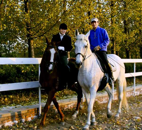 騎馬不等于馬術(shù),這是王越隴對(duì)我說的第一句話。他們?cè)诮徽劦? 個(gè)多小時(shí)里,一直用一種很虔誠的態(tài)度談?wù)擇R術(shù)。馬術(shù)這項(xiàng)可以上升到精神交流的運(yùn)動(dòng)讓他們?nèi)绨V如醉,近二十年來的堅(jiān)持只為了尋求更多成長的快樂和更完美的意境。馬術(shù)沒有止境,它是一種近乎于虔誠的信仰。 約見王越隴、宋玉榮夫妻是在一家咖啡廳。一直學(xué)習(xí)盛裝舞步的他們給人的第一印象是書卷氣。兩人六十歲上下的年紀(jì),溫文爾雅,尤其是宋玉榮,身材苗條體態(tài)輕盈得讓小她二十多歲的我自愧不如。她早先從事發(fā)動(dòng)機(jī)設(shè)計(jì),自言從小喜歡真善美的任何事物,有氣質(zhì)的、藝術(shù)的東西讓人不由自主地心生向往。王越隴曾是中國第一家風(fēng)險(xiǎn)投資公司的副總,他調(diào)侃說:是夫人把他帶進(jìn)了馬術(shù)王國。 與馬有關(guān)的日子 夫妻兩個(gè)人早年都在內(nèi)蒙牧區(qū)插隊(duì)。在那里,他們第一次接觸到馬,“那是我們騎馬的第一個(gè)階段,”王越隴說,“在插隊(duì)的那些年月里,我們生活、工作、放牧,幾乎天天都和馬在一起。那時(shí)候年紀(jì)輕,對(duì)草原、對(duì)馬有一種很新奇的感覺,覺得放馬草原是一種很浪漫、悠閑、刺激的事情,當(dāng)年很享受的?!彼χf。“馬能引重致遠(yuǎn)、堪托生死,我們都有著切膚的感受?!?/div> 回到北京后多年,在忙碌的工作學(xué)習(xí)之余,有幸觀看了一場全國馬術(shù)錦標(biāo)賽。障礙的激情超越、舞步的多姿優(yōu)美把他們深深的震撼了。從此便開始了馬術(shù)的尋夢,而且一發(fā)不可收。起初一周一次、兩次的訓(xùn)練,到退休后幾乎天天都與馬相伴在一起。接觸的越多對(duì)它的喜愛就越深?!八鼈冇醒?、有思想,從每一個(gè)動(dòng)作的訓(xùn)練中我們可以產(chǎn)生一種相惜的情感”。每一次的進(jìn)步都會(huì)使他們由衷的高興。宋玉榮說:“我們和馬一起訓(xùn)練時(shí),每一個(gè)動(dòng)作的學(xué)習(xí)都充滿了心血與艱辛。當(dāng)經(jīng)過無數(shù)次的努力終于掌握了正確的動(dòng)作時(shí),那種由于人馬合一而共同創(chuàng)造的美妙和諧,那種成就感美極了!你能體會(huì)到教徒對(duì)信仰的那種追求嗎?當(dāng)我們同馬一起進(jìn)步成長的時(shí)候,真讓人感到生命的勃發(fā)向上。沒有我們這種經(jīng)歷和年齡的人是很難體會(huì)到的?!?/div> 夫妻倆退休后的生活基本上就是:白天在馬場里騎馬訓(xùn)練,晚上回來查閱馬術(shù)資料,他們經(jīng)常在國外的馬術(shù)網(wǎng)站上搜尋各種騎術(shù)知識(shí),相互探討。動(dòng)作該怎樣做,馬該怎樣調(diào)。在那些視頻錄像中,他們仔細(xì)揣摩騎手的動(dòng)作,馬匹的狀態(tài)。在比照資料找到自己的問題后,白天就回馬場訓(xùn)練,把心得體會(huì)用在自己的馬上。宋玉榮說:“我覺得夫妻有共同愛好是件非常幸福的事。我們倆每天都會(huì)有討論的話題,在探討中可以互相幫助,互相學(xué)習(xí)。你不是孤獨(dú)的,你有一個(gè)伙伴可以隨時(shí)看著你,糾正錯(cuò)誤,并為你的成功感到高興和驕傲。”這夫妻倆的幸福生活很大程度上與馬有關(guān)。 馬術(shù)運(yùn)動(dòng)的魅力就在于它總能讓人懷有激情和夢想,勇敢地面對(duì)挑戰(zhàn)并且永不言敗。1998 年宋玉榮曾獲得國家體委頒發(fā)的盛裝舞步三級(jí)科目比賽第一名的獎(jiǎng)勵(lì)證書。2002 年參加中國馬協(xié)舉辦的首屆盛裝舞步裁判培訓(xùn)班,獲得國際A 級(jí)裁判Mr. Bernard Maurel 簽名頒發(fā)的證書。2003 年宋玉榮參加首屆中國馬術(shù)教練員培訓(xùn)班,獲得馬術(shù)教練員資格證書。2000 年,王越隴在北京庫爾班杯馬術(shù)110cm 全程障礙比賽中獲第一名。同年,在北京石景山馬術(shù)俱樂部完成了全程140cm 高度的全程超越比賽。 他們的馬都老了,“不知道還能相處多久,但我們肯定不會(huì)賣了它們。因?yàn)轳R是那么一種讓人感動(dòng)的動(dòng)物,當(dāng)我身處在黑暗的境地時(shí)會(huì)有無奈和傷心,但只要能與馬在一起,就會(huì)有重回人間的感覺,相處久了就能體會(huì)到與另一個(gè)生命進(jìn)行靈魂交流的美妙。馬不僅是你的騎乘,更是你的親人和戰(zhàn)友。我不能違背自己的良知。” 知識(shí)就是力量 在與他們的交談中,我能強(qiáng)烈地感覺到:他們對(duì)理論的重視程度遠(yuǎn)遠(yuǎn)超出了一般人的想象。他們反復(fù)強(qiáng)調(diào):“道之不存,行之不遠(yuǎn)”。宋玉榮給我講了一個(gè)真實(shí)的故事:“一天我和一位教土壤學(xué)的年近七十的老教授聊天,談起了馬。我興致勃勃地說起馬術(shù),老人靜靜的聽著。當(dāng)我說到馬的越障技術(shù)時(shí),老人突然冒出一句:‘那需要 找準(zhǔn)起跳點(diǎn)’。我一下子噎住了。半天我才問:‘您熟悉馬術(shù)?’‘不。我只看過幾分鐘的電視節(jié)目?!悄趺粗礼R跳障礙要找準(zhǔn)起跳點(diǎn)呢?’‘運(yùn)動(dòng)員跳高不也需要找準(zhǔn)起跳點(diǎn)嗎?一個(gè)道理?!耶?dāng)時(shí)非常吃驚,用‘目瞪口呆’形容毫不過分。這位老知識(shí)份子竟然說得如此專業(yè)。事后我想明白了,這是文化素質(zhì)的根基在起作用。說句老話吧:‘知識(shí)就是力量’?!?/div> 宋玉榮在