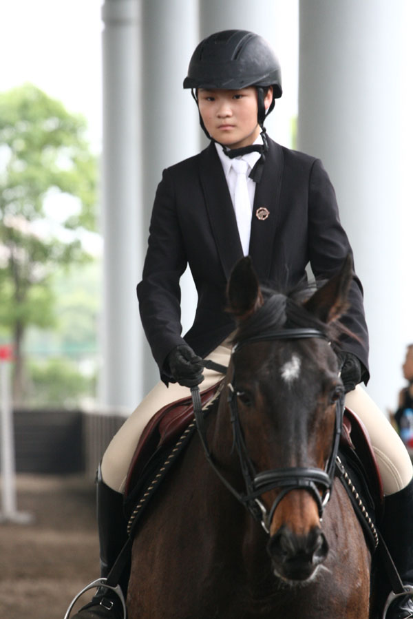 15歲的姑娘,不僅要沖刺中考,還要為2014青奧會全力以赴。10歲開始在馬背上參加比賽的她,說起自己跟馬的關系,要用“半人馬”這一形象來詮釋。她,就是為馬術癡迷的小姑娘——束昱穎。 2007年初,年僅10歲的束昱穎,參加了第三屆中國馬友環(huán)官廳水庫150 公里穿越活動,是活動中年齡最小的選手,出色完成了全程。2011年她開始在各種比賽中獲獎。2011 年5 月,上海“馬協(xié)杯”馬術公開賽馬場馬術賽個人第一名。2011 年6 月,上海市馬術業(yè)余公開賽馬場馬術賽個人第一名。2011 年11 月,上海市第一屆青少年馬術錦標賽場地障礙賽少年組(30CM-50CM) 個人第一名, 青年組(50cm-80cm) 個人第一名。 好學生 老騎手 下午6點39 分,束昱穎的父親告訴我,你現(xiàn)在可以采訪她了。昱穎放學時間是6 點30 分。她很快就接了電話,相互問候之后,我們開始了將近40 分鐘的電話溝通。作為本期的專訪嘉賓,束昱穎不僅是一名出類拔萃的青年少年女性騎手,同是還是一名備戰(zhàn)中考的初三學生。 中考的壓力不比高考小,問到她怎么處理學習與騎馬之間的時間分配問題和相互影響關系。束昱穎笑了笑說:“其實,兩者沒有沖突的時候。我周一至周五在學校上課,周末在馬場訓練。時間安排得滿滿的,很充實。”“相比同學,你花在學習上的時間少了很多個周末,會不會影響到學習成績呢?而且這么繁重的學習任務,訓練任務你怎么休息放松?”電話那頭,她很平和地說:“我一直能保持住全班前五名的成績,因為每個課間我都在惡補,使勁學習。每當學習疲倦時我常會閉上眼回想起和賽馬伙伴在一起奔騰,嬉戲的情景,放松一下心情,給頭腦做個SPA。” 束昱穎在學校也是個小名人、同學和老師都知道她是一個非常出色的騎手。平日里,經常有同學圍著她,問她馬術方面的知識。其中,女孩居多。連她的化學老師也經常請教她關于騎馬的心得和技巧。我問道:“化學老師也是馬術愛好者?”她在電話那頭又笑著說:“是受我的影響。我去問化學問題的時候,她會問我馬術問題?!焙髞砹私獾剑幕瘜W老師也是女性。 斑溪獸 半人馬 很多人認為女性在馬術運動中有天然的優(yōu)勢,她們的第六感可以毫無障礙地傳遞給馬,雙方在配合上更加默契。問及與馬交流的方式,束昱穎告訴我,跟《阿凡達》潘多拉星球納美人和斑溪獸之間交流一樣??催^電影的人都知道,想要騎一只斑溪獸并不簡單,首先要先贏得它的尊重,只有它接受了你,你才能騎上去。馬雖然性格溫和,但是駕馭起來也跟斑溪獸一樣困難,它需要去接納一個彼此尊重的騎手?!白鳛橐幻T手,必須了解馬的感情。喜歡動物的人都應該嘗試一下和馬接觸,馬可以跟你有眼神交流,你可以跟它談心,可以進行情感上的交流,馬是我們最好的朋友?!笔欧f說道。能把電影所要表達的那種彼此尊重、注重精神交流的理念運用在與馬匹的交流中,小姑娘對馬的愛可見一斑。 馬術運動是唯一一項人和動物共同完成比賽的項目。對于這個問題,束昱穎有自己的看法。在外人看來,馬術比賽是人和馬的配合;但是,在一個騎手眼里,人和馬是一起的,就像希臘神話中半人馬一樣。問她怎么想到這個形象,她說:“我喜歡《圣斗士》動畫片,發(fā)現(xiàn)射手座是半人馬的樣子,他們上半身是人形,而下半身卻是馬的身驅。半人馬這個形象最適合我們騎手跟馬之間的關系,我們是一體的?!彬T手和馬之間的關系,在騎手和觀眾眼中是兩處截然不同的風景。很多時候騎手也是觀眾席中的一員,而騎手和不同馬匹的配合又形成不一樣的風景,或許也是馬術運動如此吸引人的原因之一吧。 摔跟頭 好伙伴 2006 年,第一次隨愛好馬術的父親去馬術俱樂部參加活動,束昱穎就被這種健碩秀頎的生靈深深打動,纏著父親報名參加了俱樂部的馬術培訓班。問她為什么突然就喜歡上馬了,這么大的動物你不害怕?束昱穎說:“第一次見到馬,我就打心底喜歡上它, 想跟它交流。后來接觸多了,我就喜歡上在馬背馳騁跳躍,讓風從耳邊掠過的感覺?!?/div> 既然有第一次駕馭馬的經歷,就有第一次從馬背上摔下來的記憶。束昱穎對第一次摔跟頭沒有感到恐懼和難堪,她說摔跟頭是因為她自己與馬交流不到位,這樣反而是一種經驗的積累。作為一名騎手沒摔過就不會成長。談到平日里訓練,如果馬不配合,她是否有抱怨,對馬的表現(xiàn)不滿意,她說:“馬是沒有問題的,都是騎手的問題?!?/div> 她現(xiàn)在已經有八個很“鐵”的伙伴了,每次去馬場訓練,昱穎都會帶著糖和胡蘿卜過去。她一一跟這些伙伴打招呼,進行眼神交流,為的是加強彼此間的信任。而且這些工作是一個專業(yè)騎手必備的條件,必須在馬房里跟馬匹進行充分的交流。然后,她說了一句:“連自己的伙伴都不信任,就不要參加什么比賽了。比賽不是騎手一個人的事情,需要跟自己的伙伴商量著來,因為我們是一起的。”問到她最喜歡哪一匹馬,她說實在沒有最喜歡的,都喜歡。 束昱穎經常合作的坐騎是一匹有著純正英格蘭血統(tǒng)的賽馬(編號D354),她給它取名叫琦琦,它漂亮、活潑、聰明、忠誠也有些傲氣,最愛吃水果味的硬糖。說起這匹馬,束昱穎就給我講了一個故事?!坝幸淮挝艺谖顾蕴?,旁邊馬廄的一匹馬也伸長了腦袋來討要,我隨手給了那匹馬一顆糖。誰知琦琦竟然生氣了,高昂著脖子,扭著頭愣是不吃我給它的水果糖,我只好摟著它的脖子安慰了好