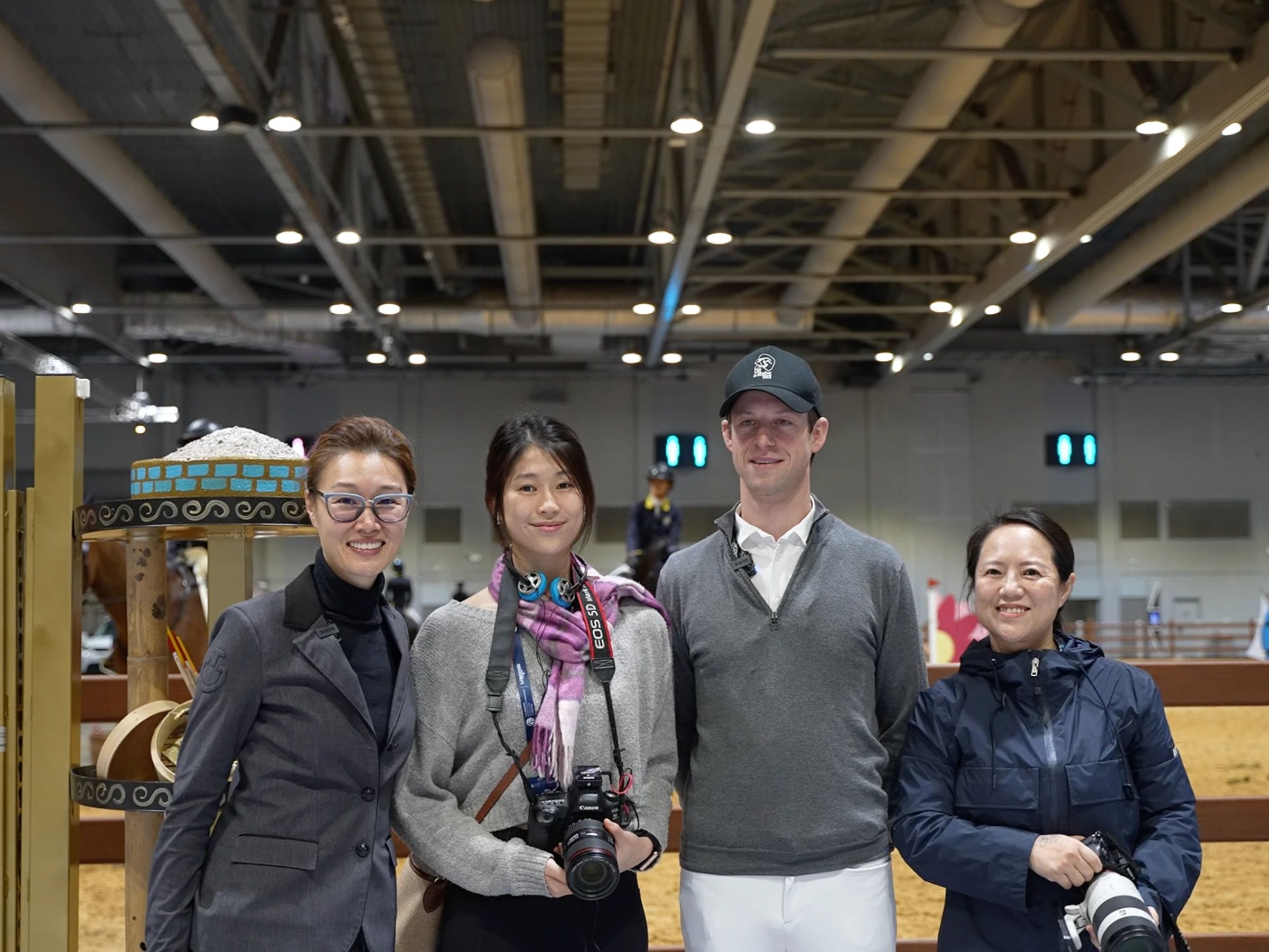 《馬術》雜志團隊在浪琴香港國際馬術盛典現(xiàn)場采訪瑞士騎手多米尼克·富勒(Dominik Fuhrer)