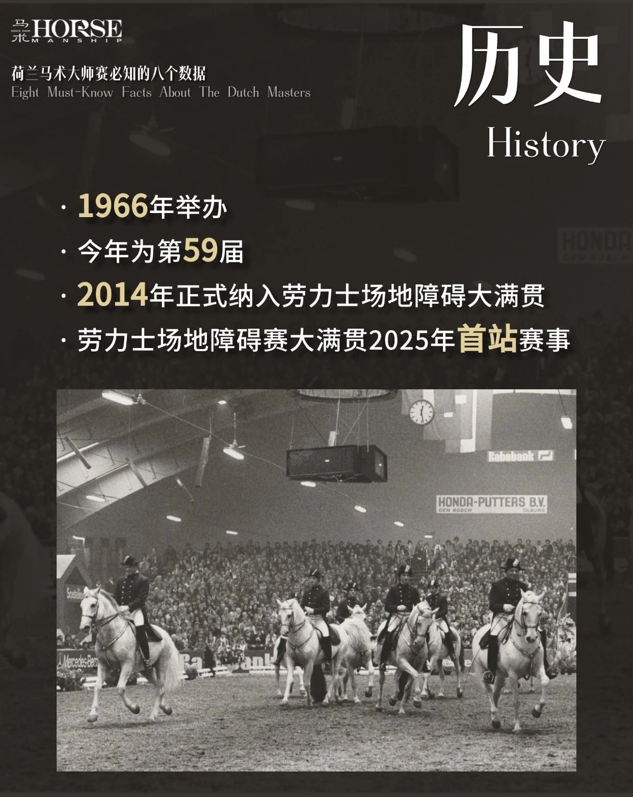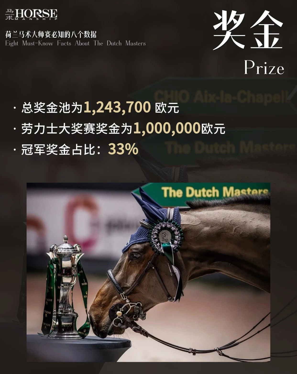 2025年荷蘭馬術大師賽于3月13~16日舉行,至今已經舉辦59年。每年3月世界頂級的人馬組合都將來到布萊班特室內場館同場競技。 好的賽事不僅是競技,也會融入生活。荷蘭馬術大師賽賽事保留了經典的室內競技場設置,具有歐洲傳統(tǒng)馬術比賽的所有風格和特點。本文將揭秘2025年荷蘭馬術大師賽的八大必知數(shù)據(jù),帶你走進這場國際級的室內馬術盛會。 荷蘭馬術大師賽(The Dutch Masters)也被稱為室內布萊班特馬術大獎賽(Indoor Brabant Horse Show)。1966年,蒂爾堡的馬術愛好者在斯海爾托亨博斯市市長的幫助下成功舉辦了第一屆荷蘭馬術大師賽。2012年舉辦的世界杯場地障礙與盛裝舞步雙總決賽更是成為該賽事的高光時刻。2018年,布萊班特室內賽正式納入勞力士場地障礙大滿貫序列,開啟了勞力士大獎賽的新篇章。 3月16日,作為勞力士場地障礙大滿貫2025年首站賽事,本次將有6個世界排名前十的騎手來共同角逐冠軍獎杯,可見競爭激烈。 2025年荷蘭馬術大師賽勞力士大獎賽: 荷蘭馬術大師賽又名布萊班特室內馬術大賽,歷史有半個多世紀之久。該賽事是當?shù)刈畲蟮氖覂荣愂?,也是荷蘭歷史最悠久、等級最高、規(guī)模最大的商業(yè)賽事之一。保姆級解說,現(xiàn)場一手資訊放送,馬術在線全媒體平臺呈現(xiàn)勞力士大獎賽實時直播。 支持單位: 北京市馬術運動協(xié)會 主辦及版權引進: 《馬術》雜志、馬術在線 播出時間: 2025年3月16日21:45-次日00:30 直播平臺: 視頻號@馬術在線、抖音@馬術在線、嗶哩嗶哩@馬術在線、新浪微博@馬術在線 荷蘭馬術大師賽位于荷蘭斯海爾托亨博斯('s-Hertogenbosch)的布萊班特(Brabanthallen)室內賽場。該地以其豐富的歷史和文化遺產而聞名。這座城市擁有保存完好的中世紀建筑和風景如畫的運河,體現(xiàn)了荷蘭傳統(tǒng)的城市風貌。每年,這里都會舉辦各種文化活動和節(jié)日,荷蘭馬術大師賽便是其中之一。 荷蘭馬術大師賽被公認為荷蘭境內規(guī)模最大的室內馬術賽。室內場共有2個比賽場地,3個熱身場,并且包含馬術相關的購物區(qū)約3000平方米,并有住宿、飲食等各項設施。場內擁有LED動畫以及充滿科技感的燈光和音樂,營造出多重感官的觀眾體驗??萍紵艄馐沁@里的一大亮點,在比賽開始前和間隙,場地不僅會整體變暗,還會有圖案投射在地面上并不斷變換。 荷蘭馬術大師賽每年吸引大約有65,000名觀眾來到現(xiàn)場觀看這一這場世界頂級的室內馬術賽事。來到這里的觀眾們不僅關注比賽結果,更享受這來到場地的時刻。在荷蘭馬術大師賽的現(xiàn)場,你會發(fā)現(xiàn)觀眾都成為了賽事的一部分。大家交談、分享,完全沉浸在比賽中。 荷蘭馬術大師賽涵蓋了8場五星級場地障礙賽事和2場盛裝舞步五星級賽事,其中包括:勞力士大獎賽(Rolex Grand Prix)、奧迪杯(Audi Prize)、FEI國際馬聯(lián)盛裝舞步世界杯自由演繹(FEI Dressage World Cup? Freestyle)以及FEI盛裝舞步世界杯大獎賽(FEI Dressage World Cup? Grand Prix)等精彩賽事;同時還設有Pony賽、趣味賽、盛裝舞步表演等趣味賽事。 荷蘭馬術大師賽的總獎金池為荷蘭大師賽所有比賽場次累計獎金1,243,700 歐元。勞力士大獎賽獎金為1,000,000歐元,其中冠軍獎金占比高達33%。 荷蘭馬術大師賽的場地規(guī)模較大,容得下不同距離的路線難點組合。024年荷蘭馬術大師賽勞力士大獎賽路線有14道障礙,其中兩道雙重組合障礙,一道三重組合障礙。路線主設計師Louis Konickx本人自2008年起至今一直擔任荷蘭馬術大師賽的路線設計師之一,他不喜歡按部就班,喜歡在路線上嘗試一些新點子。2025年荷蘭馬術大師賽勞力士大獎賽路線尚未公布,添加馬術在線小助手微信,進入社群,獲得一手資訊。 荷蘭大師賽中勞力士大獎賽的障礙設計中有許多荷蘭特色的障礙,例如名畫系列障礙,彰顯荷蘭藝術之國的“向日葵”、“夜巡”、“戴珍珠耳環(huán)的少女”和“人間樂園”四幅經典名畫以及梵高系列都被用作素材融入到障礙設計當中。場地中也能看到荷蘭元素。荷蘭郁金香是散布全場的主要點綴。 鎖定3月16日周日21:45,《馬術》雜志將全程直播解說荷蘭馬術大師賽勞力士大獎賽,精彩不容錯過,我們不見不散! |