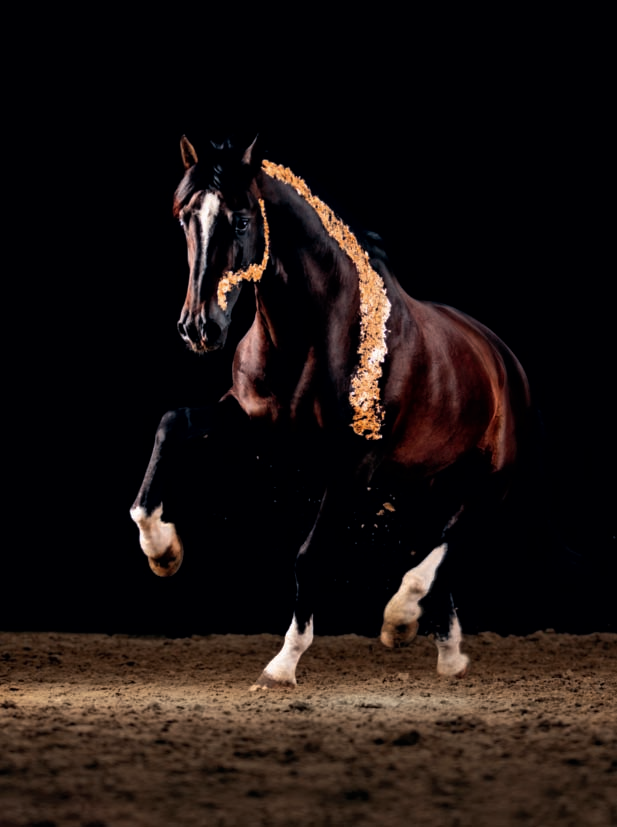 戴安娜·瓦爾(Diana Wahl)是一位來自德國(guó)帕德博恩的馬藝術(shù)攝影師,大多歐洲馬攝影師更崇尚于捕捉馬在自然中的狀態(tài),戴安娜更想要呈現(xiàn)馬的藝術(shù)性,以百年前歐洲宮廷肖像畫的方式,將馬的藝術(shù)形態(tài)躍然相紙上。 她的作品更注重藝術(shù)的張力與表現(xiàn),擅長(zhǎng)利用金箔、施華洛世奇或其他飾品對(duì)馬進(jìn)行裝飾,修飾馬的美。戴安娜最出圈的作品,便是以黑、金兩色為主色調(diào),創(chuàng)作而出的亦真亦幻的 "Glamour Horses"。 早在學(xué)生時(shí)代,戴安娜就展現(xiàn)出了對(duì)馬、對(duì)攝影的興趣,嘗試拍攝了幾組油菜花田中自由奔跑的駿馬后,她意識(shí)到這并不是自己所追求的藝術(shù)風(fēng)格。 這種形式固然是攝影的經(jīng)典表現(xiàn)形式,但戴安娜想創(chuàng)作出一些不一樣的東西,讓人眼前一亮。 直到一次偶然間在電視上看到一個(gè)模特秀,一名攝影師將閃光粉涂在模特身上,加以暗色的背景,以金箔的線條和大片面積呈現(xiàn)出不一樣的美,這便是“GlamourHorses”的靈感來源。 秉持著馬匹福利至上,不傷害馬匹被毛的原則,戴安娜幾經(jīng)波折才找到了將飾品附在馬身上的適合方法,很快便完成了第一組照片的拍攝。編輯好文案和圖片,但鼠標(biāo)卻停留在了發(fā)送鍵上遲遲不敢點(diǎn)下去,她擔(dān)心會(huì)遭到愛馬人士的質(zhì)疑。 推遲了 4周,戴安娜在社交媒體正式發(fā)表了她的第一組金箔作品,出乎意料地一炮而紅,收獲了大批粉絲,而這也成了她攝影事業(yè)的轉(zhuǎn)折點(diǎn)。 “在過去,只有尊貴的人士或畫面,才會(huì)加以金箔作為細(xì)節(jié)的裝飾,在馬身上涂抹金箔,凸顯馬的尊貴與高雅,也強(qiáng)調(diào)馬不只是一種動(dòng)物,更是上帝的藝術(shù)品。 ”以此為基礎(chǔ),戴安娜開始對(duì)金箔在馬身上的玩法進(jìn)行更多嘗試,點(diǎn)綴在馬鬃毛的零星金箔、順著馬頸部肌肉線條粘貼的線條形金箔、抑或是在馬白色別征上大面積涂 抹 金 色 ,去 突 出 馬 匹 的 肌 肉 線 條 、身體 靈 動(dòng) 的 美。 佳 能 R5/5DIII 和 RF70-200F 2.8L 是她最喜歡的機(jī)器。在大量粉絲的請(qǐng)求下,戴安娜在社交媒體開設(shè)了一個(gè)關(guān)于此系列的教學(xué)視頻,從金箔等飾品的粘貼方式,到燈光和攝像機(jī)位置,再到后期制作方法進(jìn)行教學(xué)。 2022年,戴安娜的“Glamour Horses”系列吸引了東京奧運(yùn)會(huì)盛裝舞步雙冠得主杰西卡 (Jessica vonBredow-Werndl ) 和三項(xiàng)賽個(gè)人冠軍 ( JuliaKrajewski ) 的合作拍攝。“我喜歡用照片去講故事,用相機(jī)帶我進(jìn)入更深的馬術(shù)世界?!遍e暇時(shí)刻,戴安娜便會(huì)拿著相機(jī)周游世界,深入各種文化去尋找創(chuàng)作靈感,創(chuàng)新出不一樣的藝術(shù)品。 |