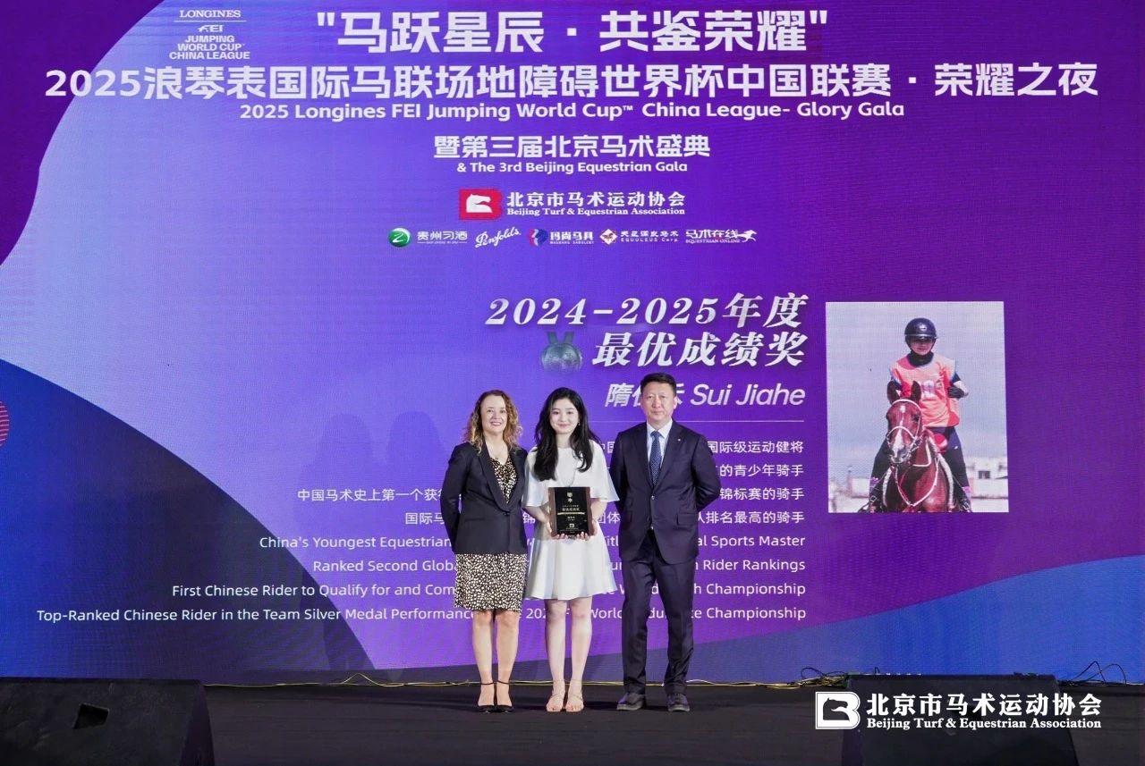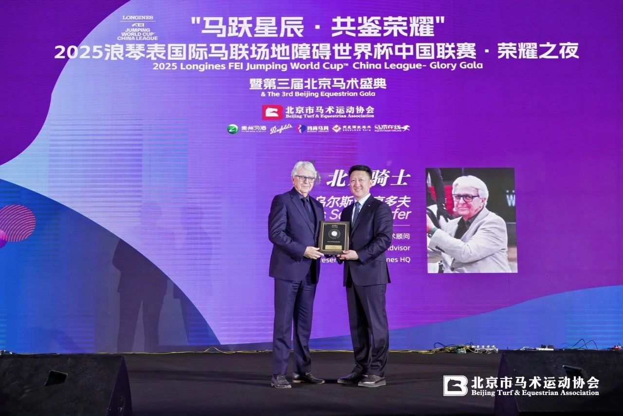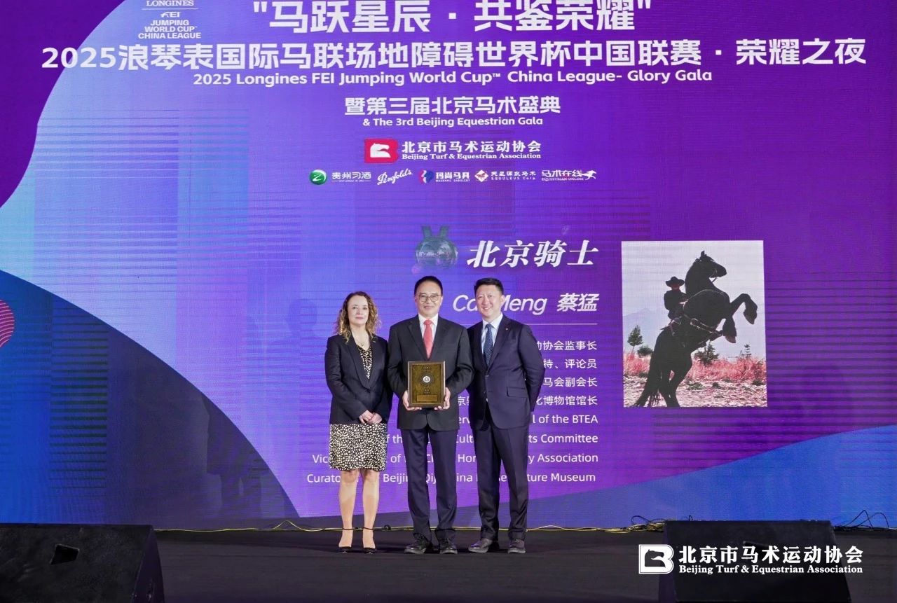 由北京市馬術(shù)運(yùn)動協(xié)會主辦,貴州習(xí)酒、奔富酒莊、瑪尚馬具、天星調(diào)良馬術(shù)、馬術(shù)在線聯(lián)合支持呈獻(xiàn)的2025浪琴表國際馬聯(lián)場地障礙世界杯中國聯(lián)賽·榮耀之夜暨第三屆北京馬術(shù)盛典于4月26晚圓滿落幕。 國際馬聯(lián)場地障礙世界杯是國際馬聯(lián)最重要的馬術(shù)聯(lián)賽之一,這場馬術(shù)聯(lián)賽的重新啟動對于豐富中國馬術(shù)賽事序列、推動中國馬術(shù)積極發(fā)展具有重要意義。 同時舉辦的第三屆北京馬術(shù)盛典,是北京馬術(shù)行業(yè)的年度回顧與總結(jié)盛會,旨在表彰在馬術(shù)領(lǐng)域做出杰出貢獻(xiàn)的個人,見證北京馬術(shù)發(fā)展的重要時刻。 國際馬聯(lián)秘書長、殘奧體育組織協(xié)會主席薩布麗娜·伊巴涅斯(Sabrina Ibá?ez)女士,浪琴表總部代表及馬術(shù)顧問烏爾斯·施亨多夫(Urs Schiendorfer)先生,中央廣播電視總臺編務(wù)會議成員、中央廣播電視總臺總經(jīng)理室總經(jīng)理彭建明先生,國際馬聯(lián)副主席、國際馬聯(lián)第八區(qū)主席黃啟芳先生,中國馬術(shù)協(xié)會秘書長鐘國偉先生,浪琴表中國區(qū)副總裁解琦先生、國際馬聯(lián)第八區(qū)主席南達(dá)-德維公主殿下(HRH Princess Nanda),國際馬聯(lián)顧問拉爾夫·斯特勞斯(Ralph Straus)先生,以及著名演員、中國戲劇家協(xié)會主席濮存昕先生,華貿(mào)集團(tuán)董事長、華貿(mào)中心創(chuàng)始人房超先生等嘉賓出席盛典。 盛典主辦方代表、北京市馬術(shù)運(yùn)動協(xié)會主席劉詩來先生致辭 北京市馬術(shù)運(yùn)動協(xié)會主席劉詩來先生表示:“2025浪琴表國際馬聯(lián)場地障礙世界杯中國聯(lián)賽的成功舉辦,凝聚著各方心血。展望未來,北京馬術(shù)協(xié)會將懷揣這份感恩,砥礪奮進(jìn)。北京馬協(xié)愿與各方攜手,進(jìn)一步推廣馬術(shù)運(yùn)動,挖掘馬術(shù)文化內(nèi)涵,提升賽事品質(zhì),為中國乃至世界馬術(shù)事業(yè)添磚加瓦?!蓖瑫r感謝國際馬聯(lián)秘書長的蒞臨,中國馬術(shù)協(xié)會對賽事的鼎力支持,以及中央電視臺對馬術(shù)運(yùn)動的廣泛傳播。 國際馬聯(lián)秘書長、殘奧體育組織協(xié)會主席薩布麗娜·伊巴涅斯(Sabrina Ibá?ez)女士致辭 薩布麗娜·伊巴涅斯女士表示:“中國的馬術(shù)運(yùn)動正蓬勃發(fā)展。今年,中國境內(nèi)共將舉辦13場從一星級到五星級不等的國際賽事,全部為國際馬聯(lián)奧運(yùn)項(xiàng)目之一的場地障礙賽,其中多場賽事將在北京舉行。國際馬聯(lián)正與中國主流媒體建立緊密合作,并希望助力中國馬術(shù)運(yùn)動員們征戰(zhàn)11月的全運(yùn)會、2026年在德國舉辦的國際馬聯(lián)世界錦標(biāo)賽,以及2028年洛杉磯奧運(yùn)會和殘奧會?!?/span> 中央廣播電視總臺編務(wù)會議成員兼總經(jīng)理室總經(jīng)理彭健明先生致辭 彭健明先生表示:“媒體傳播是體育運(yùn)動發(fā)展的重要引擎,中央廣播電視總臺將持續(xù)發(fā)揮自身的平臺優(yōu)勢、資源優(yōu)勢和傳播優(yōu)勢,以更加豐富多彩的形式、更具深度和廣度的視角,全方位呈現(xiàn)馬術(shù)運(yùn)動的精彩魅力。期待與各方緊密攜手,共同譜寫馬術(shù)運(yùn)動發(fā)展的華彩篇章,合力鑄就體育強(qiáng)國建設(shè)的新輝煌?!?/span> 榮耀之夜,三大獎項(xiàng)頒發(fā) 盛典共頒發(fā)北京騎士獎、杰出貢獻(xiàn)獎和 2024-2025年度最優(yōu)成績獎三大獎項(xiàng)。 「北京騎士獎」授予對推動北京馬術(shù)事業(yè)的普及與傳播產(chǎn)生巨大影響力,在推廣北京馬術(shù)運(yùn)動中具有積極貢獻(xiàn),并親身參與馬術(shù)運(yùn)動的杰出個人。通過北京騎士讓全社會了解馬術(shù)運(yùn)動、參與馬術(shù)運(yùn)動,喜愛馬術(shù)運(yùn)動,傳播馬術(shù)精神的正能量。 北京市馬術(shù)運(yùn)動協(xié)會主席劉詩來先生(右)為烏爾斯·施亨多夫先生(左)頒發(fā)“北京騎士獎” 烏爾斯·施亨多夫先生長期致力于推動浪琴對國際馬聯(lián)賽事的支持,提升了賽事標(biāo)準(zhǔn)。同時,他為中國頂尖賽事的落地、中國馬術(shù)國際交流和中國馬術(shù)事業(yè)的進(jìn)步貢獻(xiàn)卓著。 北京市馬術(shù)運(yùn)動協(xié)會主席劉詩來先生(左)國際馬聯(lián)秘書長薩布麗娜·伊巴涅斯女士(中)為濮存昕先生(右)頒發(fā)“北京騎士獎” 著名演員、中國戲劇家協(xié)會主席濮存昕先生長期投入盛裝舞步訓(xùn)練和比賽,并積極參與和推廣北京盛裝舞步賽事。他的參與讓大眾了解馬術(shù)運(yùn)動的魅力尤其是北京盛裝舞步運(yùn)動的發(fā)展成果。 北京市馬術(shù)運(yùn)動協(xié)會主席劉詩來先生(右)國際馬聯(lián)秘書長薩布麗娜·伊巴涅斯女士(左)為王代雪先生(中)頒發(fā)“北京騎士獎” 北京市馬術(shù)運(yùn)動協(xié)會副主席、北陸藥業(yè)創(chuàng)始人王代雪先生個人支持了“北京舞者”馬術(shù)盛裝舞步俱樂部聯(lián)賽連續(xù)成功舉辦10場,他的支持大大推動了北京盛裝舞步賽事的發(fā)展。 北京市馬術(shù)運(yùn)動協(xié)會主席劉詩來先生(右)國際馬聯(lián)秘書長薩布麗娜·伊巴涅斯女士(左)為蔡猛先生(中)頒發(fā)“北京騎士獎” 北京市馬術(shù)運(yùn)動協(xié)會監(jiān)事長、中國馬會副會長蔡猛先生參與了以往歷