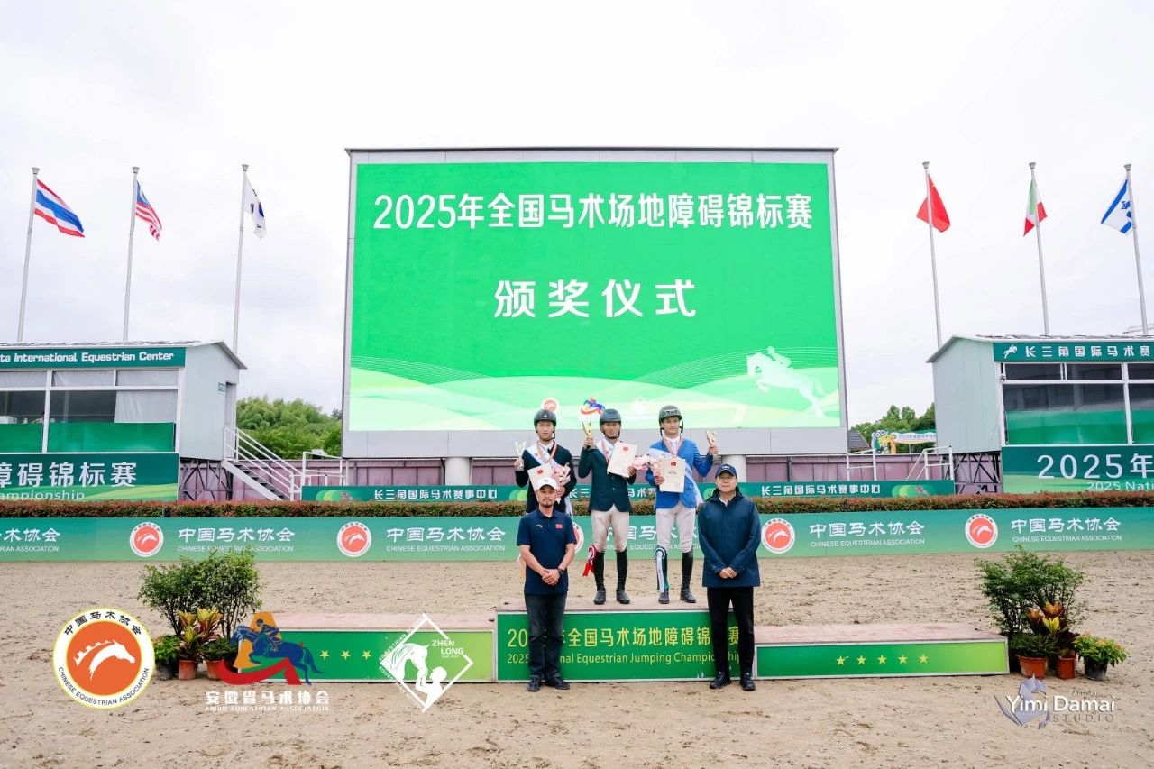 戰(zhàn)報(bào)速覽 2025年全國(guó)馬術(shù)場(chǎng)地障礙錦標(biāo)賽 —————————————————————— 6月8日個(gè)人賽 冠軍:山東隊(duì)騎手張勇搭檔“尼澤爾“ 亞軍:廣西隊(duì)騎手洪志華搭檔“如雙” 季軍:廣西隊(duì)騎手木拉得力搭檔“輕七尺” 6月6日?qǐng)F(tuán)體賽 冠軍:上海隊(duì) 張濱搭檔“CARTOSI MELLONI”、徐墨菲搭檔“非非”、張陽(yáng)搭檔“Ruby”、鄭文杰搭檔“咚咚” 亞軍:香港隊(duì) 梁巧羚搭檔“潘明卡”、沈憶淇搭檔“嵐光”、賴楨敏搭檔“恰比” 季軍:廣西隊(duì) 哈扎克拜搭檔“Bella”、洪志華搭檔“如雙”、木拉得力搭檔“輕七尺”、達(dá)布西力特搭檔“卡斯特羅” —————————————————————— 2025年6月8日,2025年全國(guó)馬術(shù)場(chǎng)地障礙錦標(biāo)賽個(gè)人賽落幕。山東隊(duì)騎手張勇搭檔“尼澤爾”以兩輪零罰分贏得個(gè)人冠軍,廣西隊(duì)騎手洪志華搭檔“如雙”以兩輪2罰分獲得亞軍,同為廣西隊(duì)的騎手木拉得力搭檔“輕七尺”以兩輪8罰分獲得季軍。 后排從左至右:廣西隊(duì)騎手洪志華、山東隊(duì)騎手張勇、廣西隊(duì)騎手木拉得力 頒獎(jiǎng)嘉賓:廣德長(zhǎng)三角國(guó)際馬術(shù)賽事中心負(fù)責(zé)人陳陣(左),中國(guó)馬術(shù)協(xié)會(huì)副秘書(shū)長(zhǎng)兼競(jìng)賽部部長(zhǎng)孫立生先生(右) 2025年全國(guó)馬術(shù)場(chǎng)地障礙錦標(biāo)賽由中國(guó)馬術(shù)協(xié)會(huì)主辦,在位于安徽省廣德市的長(zhǎng)三角國(guó)際馬術(shù)賽事中心舉辦。 長(zhǎng)三角國(guó)際馬術(shù)賽事中心在2025年1月1日,獲得了國(guó)際馬聯(lián)場(chǎng)地專家、奧林匹克委員會(huì)場(chǎng)地專家?jiàn)W利弗·霍伯格(Oliver Hoberg)的權(quán)威認(rèn)證,成為國(guó)內(nèi)首家獲得認(rèn)證的國(guó)際高標(biāo)準(zhǔn)馬術(shù)賽場(chǎng)。 本次賽事的路線設(shè)計(jì)師為孫志堅(jiān),他曾擔(dān)任國(guó)際馬聯(lián)CSI**中國(guó)場(chǎng)地障礙年度總決賽等多場(chǎng)2星級(jí)賽事的路線設(shè)計(jì)師。對(duì)于這次賽事,他表示,長(zhǎng)三角國(guó)際馬術(shù)賽事中心的場(chǎng)地比較大,且近期有連續(xù)的高強(qiáng)度賽事,因此路線設(shè)計(jì)主要遵循讓馬保持良好節(jié)奏與動(dòng)力的原則,同時(shí)也希望在視覺(jué)上展現(xiàn)馬術(shù)運(yùn)動(dòng)的魅力。 “我們?cè)谠O(shè)計(jì)路線的時(shí)候會(huì)預(yù)判場(chǎng)上的結(jié)果,然后在比賽過(guò)程中觀察騎手與馬匹的表現(xiàn)是否符合我們的預(yù)設(shè),賽后再進(jìn)行整體的總結(jié)復(fù)盤(pán),不斷改善。這次的賽事基本與我預(yù)想的一致,騎手與馬匹的表現(xiàn)都很出色?!?/span> 路線設(shè)計(jì)師孫志堅(jiān)在錦標(biāo)賽現(xiàn)場(chǎng)??何亦紅 2025年全國(guó)馬術(shù)場(chǎng)地障礙錦標(biāo)賽團(tuán)體賽(個(gè)人資格賽)于6月6日進(jìn)行,由張濱、徐墨菲、張陽(yáng)、鄭文杰組成的上海隊(duì)贏得團(tuán)體冠軍。由梁巧羚、沈憶淇、賴楨敏組成的香港隊(duì)獲得團(tuán)體亞軍。由哈扎克拜、洪志華、木拉得力、達(dá)布西力特組成的廣西隊(duì)獲得團(tuán)體季軍。 后排從左至右:香港隊(duì)(3人)、上海隊(duì)(4人)、廣西隊(duì)(4人) 21對(duì)人馬進(jìn)入個(gè)人賽第一輪,廣西隊(duì)騎手木拉得力搭檔“輕七尺”、山東隊(duì)騎手張勇搭檔“尼澤爾”和廣西隊(duì)騎手洪志華搭檔“如雙”以個(gè)人賽第一輪零罰分領(lǐng)銜14對(duì)人馬組合進(jìn)入個(gè)人賽第二輪。 團(tuán)體賽(個(gè)人資格賽)中山東隊(duì)騎手張勇搭檔“尼澤爾” 第二輪比賽中,廣西隊(duì)騎手洪志華搭檔“如雙”在場(chǎng)上表現(xiàn)平穩(wěn),僅獲得時(shí)間罰分2分。隨后出場(chǎng)的山東隊(duì)騎手張勇搭檔“尼澤爾”頂住壓力,實(shí)現(xiàn)了零罰分。最后一位出場(chǎng)的廣西隊(duì)騎手木拉得力搭檔“輕七尺”奮力爭(zhēng)奪,行進(jìn)時(shí)間達(dá)到了全場(chǎng)最短的69.77,但獲得了8分障礙罰分。最終,張勇以兩輪零罰分成功衛(wèi)冕。 馬術(shù)在線記者在個(gè)人賽后對(duì)山東隊(duì)騎手張勇進(jìn)行現(xiàn)場(chǎng)采訪 |