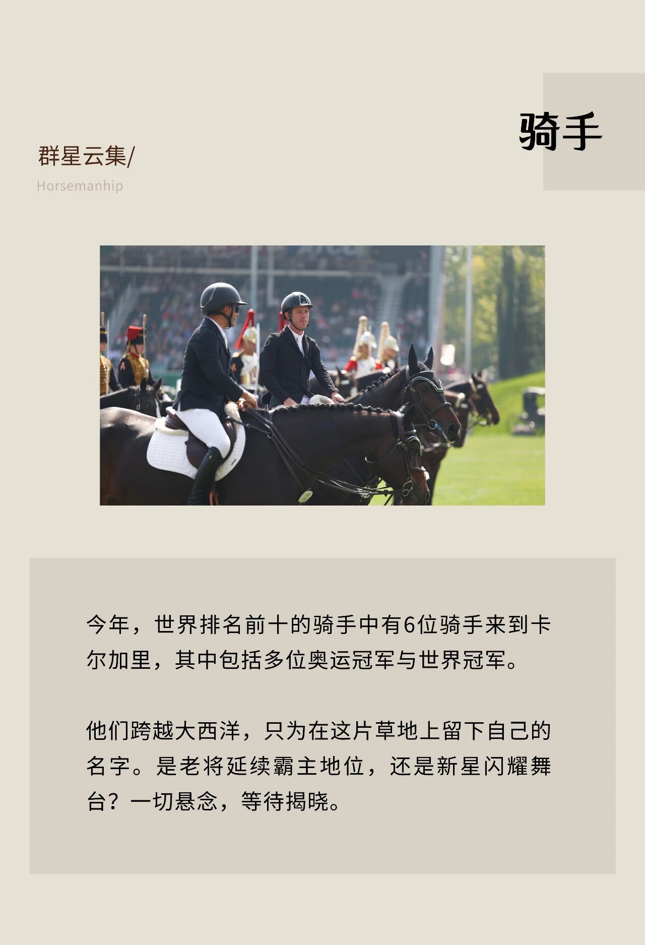 2025年的CSIO云杉草地大師賽,將迎來一場載入史冊的盛事。500萬加幣獎金池 + 50周年紀念,讓今年的勞力士呈獻CPKC國際大獎賽注定成為歷史性的一屆?!恶R術》雜志記者已經到達現場,帶來現場報道。 馬術雜志、馬術在線引進云杉草地大師賽勞力士呈獻CPKC國際大獎賽獨家直播版權,將在北京時間9月8日晚19:30帶來完整賽事畫面與演播室直播解說,讓大家在黃金時段第一時間感受這場北美最盛大的馬術盛會。 |