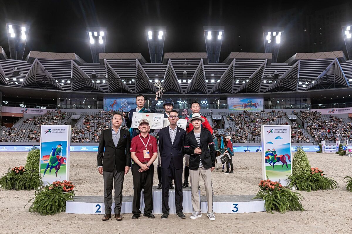 決賽開啟,難度提升 在10月6日下午的六歲馬決賽中,天色漸暗,賽場周圍的LED屏對于馬匹注意力的影響比上午大很多,這也為現(xiàn)場的馬與騎手帶來了更高的考驗(yàn)。 調(diào)教師通常會關(guān)注年青馬的專注度、現(xiàn)場表現(xiàn)力、性格等,因此現(xiàn)場比賽經(jīng)驗(yàn)不夠多的年青馬,如果能展現(xiàn)很好的天賦、穩(wěn)定的發(fā)揮和跳躍能力,即便是在有打桿的情況下,也會被視作有潛力的馬。 最后,張勇搭檔“青澀女孩”以零罰分、75.38秒的行進(jìn)時(shí)間,獲得六歲馬決賽的冠軍。騎手滿都呼搭檔“養(yǎng)樂多”獲得亞軍,騎手高曉坤搭檔“阿克琉斯”獲得季軍。 賽后,張勇在接受馬術(shù)在線采訪時(shí)表示,非常高興這次能夠來上海參加中國年青馬場地障礙賽,往年的每一屆年青馬大賽我都會參加。久事的場地條件非常好,也很國際化,不過對于沒有太多參賽經(jīng)驗(yàn)的年青馬來說,在較為封閉的場館里比賽會有些膽怯。 “因?yàn)槲移綍r(shí)也做一些年青馬的調(diào)訓(xùn)工作,所以這次我?guī)Я?匹馬過來參賽,5、6、7歲的馬匹都有。對于年青馬來說,最重要的是關(guān)注它們的身心健康,不要一味地追求成績,而是通過多參加賽事來增加它們關(guān)于比賽的快樂經(jīng)歷,同時(shí)促進(jìn)它們成長?!?/span> “年青馬是我們國內(nèi)彌補(bǔ)年青馬調(diào)教方面的一個(gè)很好的賽事,我希望中國年青馬場地障礙賽能夠持續(xù)辦下去,我也一定會每年都參加。”張勇笑著總結(jié)道。 七歲馬決賽的路線難度再次提升,例如,增加了一個(gè)雙橫木很小角度接ABC組合障礙。來自西班牙的騎手薩烏爾·普爾圖斯(Saul Portos)搭檔馬匹“N YANDRO”首先登場,全程將馬控制在柔和、完美的節(jié)奏中,馬匹自身也會在跳躍障礙時(shí)有意識收緊前腿與后腿,這種對于障礙的小心性是年青馬可貴的品質(zhì)之一。 擁有豐富年青馬調(diào)訓(xùn)經(jīng)驗(yàn)的中國騎手劉同晏隨后搭檔“要塞中心”出場,也順利以零罰分完賽,與薩烏爾·普爾圖斯進(jìn)入附加賽。最終,兩對人馬組合各獲得4分障礙罰分,薩烏爾·普爾圖斯搭檔“N YANDRO”以2.23秒的領(lǐng)先優(yōu)勢,奪得冠軍。劉同晏搭檔“要塞中心”取得亞軍,周小毛搭檔“星月”獲得季軍。 薩烏爾·普爾圖斯對馬術(shù)在線記者說:“這是我第一次在中國參加年青馬大賽,我來中國已經(jīng)六年了,在這期間我見證了中國馬術(shù)產(chǎn)業(yè)的發(fā)展。在歐洲,馬匹繁育是馬術(shù)產(chǎn)業(yè)里很重要的一環(huán),年青馬賽事也會有很多騎手帶著馬匹參加。如今,看到中國自主繁育的馬匹越來越多,年青馬場地障礙賽也成為亞洲首個(gè)國際馬聯(lián)認(rèn)證的年青馬賽事,這對于中國馬術(shù)未來的發(fā)展肯定是很好的,我也非常高興能夠參與到其中?!?/span> “今天我搭檔的七歲馬匹‘N YANDRO’是我的學(xué)生Angelina zimo Bian的馬,我和這匹馬配合有一年了,它在比賽中非常專注,總是盡它所能表現(xiàn)到最好,在今天比賽中的表現(xiàn)也非常好。我很希望在未來繼續(xù)參與年青馬賽事,這類賽事無論是對馬還是對人來說,都有極大的幫助?!?/span> 決賽頒獎儀式 最佳調(diào)教師:劉同晏 頒獎嘉賓:瑪尚馬具總經(jīng)理劉華華(左一);著名演員、歌手景崗山(右一)。 最佳馬工:盤雪潤 頒獎嘉賓:天駟龍駒賽事管理有限公司高級顧問、中國年青馬大賽賽事發(fā)起人欒樹(左一);瑪尚馬具總經(jīng)理劉華華(右一)。 六歲馬級別決賽頒獎:張勇搭檔“青澀女孩”奪得冠軍(后中),滿都呼搭檔“養(yǎng)樂多”榮獲亞軍(后左),高曉坤搭檔“阿克琉斯”獲得季軍(后右)。 頒獎嘉賓:中國電影表演藝術(shù)學(xué)會副會長、上海電影家協(xié)會副主席、上影演員劇團(tuán)團(tuán)長、國家一級演員佟瑞欣(左一);技術(shù)官員代表、賽事監(jiān)管長葉謀順(Mou soon Yap)(左二);上海久事國際馬術(shù)有限公司董事長洪磊(右二);著名歌手、音樂制作人、中國首位獲得國際歌唱比賽最高獎的流行歌手羅中旭(右一)。 七歲馬級別決賽頒獎:SAUL PORTOS 搭檔“N YANDRO”奪得冠軍(后中),劉同晏搭檔“要塞中心”榮獲亞軍(后左),周小毛搭檔“星月”獲得季軍(后右)。 頒獎嘉賓:中國馬術(shù)協(xié)會競技部部長賈大鵬(左一);技術(shù)官員代表、賽事裁判長沈曉玥(左二);上海久事國際馬術(shù)有限公司董事長洪磊(左三);著名演員、柏林電影節(jié)銀熊獎最佳女主角、中國電影金雞獎最佳女主角詠梅(右二);中國乒乓球運(yùn)動員、奧運(yùn)會冠軍、世界冠軍王濤(右一)。 CSIYH1*2025年中國年青馬場地障礙賽作為亞洲首個(gè)真正意義上的國際年青馬賽事,不僅為其他亞洲國家提供了重要范本,更向公眾彰顯了中國在馬術(shù)領(lǐng)域的長期承諾:中國既關(guān)注騎手培養(yǎng),也注重馬匹未來。 |