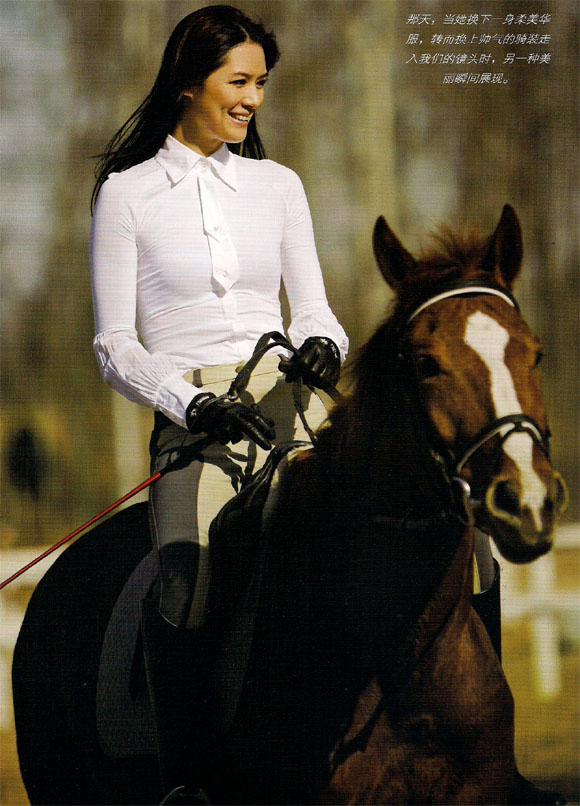 從賽艇運動員到名模,從名模到設(shè)計師,馬艷麗的每一次轉(zhuǎn)型都完美得無懈可擊。身為幸福工程的形象大使,她說,人的一生中會有不同的過程,每個過程都應(yīng)該有不同的意義和價值。于是,她下定決心為幸福工程做一輩子義務(wù)的打工者。她一手創(chuàng)辦的高級定制品牌Mary Ma,不僅以自己的名字命名以示紀念,更重要的是,她讓定制成為一種生活態(tài)度,“定制不一定就要完全打上‘奢侈’的標簽,它更多的是代表了一種生活方式,”她說。這就是馬艷麗,曾被靳羽西譽為“亞洲最美麗的女人”,賦予了“美麗”二宇更深刻的含義。那天,當她換下一身柔美華服,轉(zhuǎn)而換上帥氣的騎裝走入我們的鏡頭時,另一種美麗瞬間展現(xiàn)。 野·美麗 你知道,很多時候眼神是可以出賣一切的。 可能是因為向來低調(diào)的作風,馬艷麗很少開口說話,采訪也是有問才答,倒是她的貼身助理在挑馬前一直在囑咐,你們一定要保證她的安全,她雖然喜歡但不是經(jīng)常騎...... 為了拍照,攝制組挑了一匹比較有型的馬,騎師在馬場里活動了幾圈,馬有些躁動,想起助理的話,我們還是擔心地問了一下,“您覺得它可以嗎?”“嗯,沒問題?!蔽覀儽凰龍远ǖ幕卮鸹A艘幌拢幻靼姿窍騺砟懘?,還是確實心里有底。倒是她那鎮(zhèn)定的眼神,給了我們不容置疑的肯定。 整個過程相當順利,本以為這是她曾身為模特的特質(zhì),但攝影師說 “她就是在生活,與拍攝無關(guān)?!边@讓人突然注意到,鏡頭前一身騎裝的她那么自然地與馬兒親近著,不退卻、不躲閃,像極了一個老騎士在寵溺著自己的坐騎。翻身上馬,利落的身手,一招一式都做得有板有眼,在馬場里絲毫不覺遜色。 對于教練的夸獎,馬艷麗也只是淺笑著說,或許是因為之前練過體育的關(guān)系,協(xié)調(diào)性好,所以只要是和運動有關(guān)的項目,像高爾夫、馬術(shù),她都比一般人學(xué)得快,而且學(xué)得好,這完全是天賦使然。對于自己第一次騎馬的情形,對她來說,已經(jīng)過去十年了,但仍歷歷在目,因為那種怦然心動的感覺并不見得時常有,而她很慶幸能有機會遇到這么一項美好的運動,并一直堅持至今。 “那是1997年某一天的傍晚,我和幾個老師、同事借著演出的機會去參觀‘天下第一城’。在我們吃小吃的店旁邊正好有個馬場,里面是當?shù)剞r(nóng)民圈養(yǎng)的馬。馬場不是很大,但很漂亮,和現(xiàn)在專業(yè)的馬場相比起來一點也不遜色?!瘪R艷麗回憶道。那時候從沒有騎過馬的她,醉心于眼前的美景,于是躍躍欲試?!拔因T著馬順著一個斜坡一直向下走,馬越走越快,后來甚至有點小跑,一直跑過條小溪。記得那時候是秋天,一路上風景很美,但其實當時真的很危險,如果馬快跑起來,沒有任何經(jīng)驗的我是很容易出事的,所以感覺那時候的自己好勇敢?!彼Φ馈;蛟S因為無所畏懼,或許因為一種征服感,第一次騎馬的經(jīng)歷就讓馬艷麗深深愛上了它,并且從此一發(fā)不可收拾?!澳欠N在馬背上迎風飛馳的感覺真的很享受,無法言喻?!?/div> 一年后一次偶然的機會,讓她再次體驗馬兒飛奔時帶來的刺激。1998年,她剛到北京,舉目無親,于是她到懷柔去看個親戚?!澳抢镉幸粋€很大的馬場,雖然那時候我的技術(shù)不是很好,或者應(yīng)該說毫無技術(shù)可言,但仍舊無法抵抗那種吸引?!彼f。其買,那是一個很唯美很浪漫的畫面,一個美麗的少女騎在馬背上,迎著風,馳騁著,一頭飄逸的長發(fā)在風中飄散,夕陽西下,點點斑駁的陽光映射在身上,如同女神從天而降。但對馬艷麗來說,真實的情況并沒有描述中那么美好,當時整個空曠的馬場就只有她一個人在飛奔?!皠傞_始只是坐在馬背上,后來慢慢地行進中,再后來它突然開始奔跑起來,一連跑了三圈,速度很快,讓我措手不及,唯一的本能反應(yīng)就是緊緊地抓住韁繩?!彼龓е稽c后怕說道。當她從馬背上下來時,發(fā)現(xiàn)自己的雙手已經(jīng)全部破皮,并且還冒出血絲,當時在馬背上的她,卻緊張到一點感覺都沒有,完全沉浸在速度的快感中?!半m然很危險,但很讓人享受。”她微笑。 美·和諧 曾經(jīng),一次意外,差點讓她想要放棄騎馬,但心中卻是萬分不舍?!澳鞘?999年在拍《傾城之戀》的時候,當時有場戲是我和馬曉偉并排騎著馬。導(dǎo)演在前面的車上,可能是之前與馬的溝通不夠充分,我騎的馬一直很緊張,加上我對馬的控制能力不是很強。于是,在車子開動的時候,馬受驚了,開始加速奔跑。我有點害怕,但并沒有慌亂,只是拼命抓緊韁繩控制平衡,然后告訴自己說一定要冷靜。在拐彎處我想跳下馬,但是如果我跳下去,旁邊馬曉偉的馬一定會踩到我。幸好,那時候馬曉偉很機智,硬是讓自己的馬換到了我的另一邊,和我拉開有一段距離,很有英雄救美的感覺。于是我才努力把腳從腳蹬里面拔出來,下意識地往外跳,但還是被馬拖了一段距離?!被貞浧疬@段驚險往事,馬艷麗仍心有余悸,“之后我就失去意識了,大概昏迷了至少20分鐘。當醒來時看到我眼前是大家的臉,一張挨一張,都緊張地看著我,很擔心的樣子,而我,完全忘了剛才發(fā)生了什么事情。當時我穿的是白色衣服,地上因為剛下過雨很泥濘,我看著自己渾身都是泥,還覺得很茫然,身體上也沒有什么不適,總之是種很奇特的感覺。后來去醫(yī)院做了一遍檢查,還好,沒受什么傷。” 那次是她這輩子第一次經(jīng)歷的暫時性失憶,