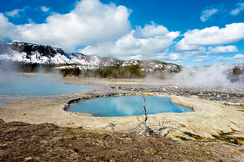 一只禿鷲,從草叢中飛了起來,撲棱著小一米的大翅膀,一個轉(zhuǎn)身,向著更遠的大山飛去?!斑@邊走?!迸W?Matt 示意我們跟上。 在蒙大拿陰沉的天空下,浪里飛,翁布,David 和我踩著 Matt 坐騎的馬蹄印,穿越在白雪皚皚的黃石國家公園內(nèi)。 回到剛才的那只禿鷲,雖然隔著大幾百米,牛仔 Matt 并未錯過大鳥起飛的地點。“一定有什么東西?!盡att 說。 馬蹄踏著積雪,深一腳淺一腳地穿行在張牙舞爪的灌木叢中。氣溫并不是很低,但蒙大拿冬天的天氣變化多端,剛才還如鉛色般陰沉的天空,此時卻白云朵朵碧青湛藍,當然也許轉(zhuǎn)過幾個山頭就又會冷風嗖嗖,凍雪擊面。 胯下的比利時溫血馬,突然重心后移,頭微微揚起,前肢慌亂地踏了幾下,大鼻孔特魯特魯?shù)貒娭謿?。我趕緊放松身體,騎坐向前鼓勵馬把重心回到四條腿上,松韁,并平靜地給了個全世界馬都能聽懂的聲音“喔……”。 在黃石深處積雪濕滑的山坡上,騎著一匹 175 公分的高頭大馬,我相信,從我眼睛到傾斜的地面足有三米高,馬再不聽話,那感覺真是不踏實。這時,牛仔 Matt 已經(jīng)下馬,只見一叢灌木后面,一頭馬鹿尸體,開膛破肚的,很新鮮地“陳列”著,周圍腳印龐雜,而剛才那只禿鷲應該就是在享受美味。 “狼”Matt 說。 “應該就是在兩天前?!?/div> “你看,這雪地上的腳印?!表樦?Matt 所指,在馬鹿尸體旁混亂的雪地之外,一行遠去的狼的足跡,每個蹄印足有小碗大小。 “其他足跡被雪蓋上了,這一行新的應該是又回來吃時留下的?!盡att邊上馬邊說。 “起碼有 150 磅重?!?/div> “真是一只大狼?!?/div> 臆想著兩天前,荒原中狼鹿大戰(zhàn)的場面,我們繼續(xù)翻山越嶺,而地貌隨著我們的前進慢慢發(fā)生了變化,低矮的灌木被高大的松柏替代,進入森林后,雪越來越深了,有時一腳下去并未到底,咯噔一下,馬還會下陷十幾公分。顯然,雪的下面還是雪。 林海雪原,間或有幾株白樺點綴在松林間,映著樹木間隙灑下來的陽光,雪面上的冰晶熠熠閃爍,好像灑滿了一層細碎的鉆石,大冬天的,沒有鳥叫,無風,靜得只能聽見馬踏積雪的聲音。 “注意,”Matt 的提醒打破了寂靜?!翱︵辏︵辍贝鬁匮R這次的下陷,踏碎了冰面,水沒了他的管骨,我才知道,我們正在過一條小河。黃石公園有一條比較知名的長河,無論多冷都不會封凍,因為它的沿線都是地熱溫泉,河水流過雪原時冒著熱氣,岸兩邊時而積雪一片,時而熱氣騰騰。景色蔚為壯觀。美洲野牛,麋鹿,各種水鳥都成群聚集在這條河邊,吃草的吃草,睡覺的睡覺,岸邊高高松枝上還能看到美國的國鳥——白頭海雕,一絲不茍地監(jiān)視著河里路過的魚兒。 鹿角,馬鹿的五叉大鹿角,讓我們每個人都從剛才的安靜中醒了過來。又是 Matt,一路上什么七百米外飛起一只禿鷲啊,什么馬鹿尸體啊、150 磅野狼的爪印啊、豺撲捉雪下老鼠的痕跡啊,都是他發(fā)現(xiàn)的。這回,即使順著他手指方向很努力地查看,我們也沒有在半山腰看到這只大鹿角。Matt 也懶得和我們廢話了,把馬韁繩交給大衛(wèi),三步兩步爬上山坡,在一株低矮的松樹邊魔術般變出了一只足有一米三長的五叉大鹿角。麻利地綁在了馬鞍后面。自言自語地說:這是他在野外撿到的最大的鹿角。最少能賣 100 塊! 蒼天啊!不給我們??!一起發(fā)現(xiàn)的,見者有份嘛。但是我狹隘的想法在返回營地后,很快被蒙大拿藍色的天空和黃石潔白的冰雪洗滌了。 “送給你!這是黃石給你們的禮物。” 我們緊握著Matt的手, 啥也不說了!合影留念!必須的!!每個人!?。?/div> 杰克·倫敦的《野性的召喚》、《白牙》,曾經(jīng)讓少年的我對北美蒼莽的荒原魂縈夢繞。心頭總有一個低沉的聲音對我說:伙計,來上一回真正的狗拉雪橇冰原穿越吧。而這次的黃石之旅,讓我初嘗滋味,算是為以后真正的穿越熱熱身吧。 從沒經(jīng)歷過冰雪運動,而訓狗師在簡單的講解之后,就讓我獨自駕駛著 9條狗的雪橇一個胡哨“飛”入了叢林!下坡減速,上坡助力,拐彎踩單側,身體站直,放松,不要用扶手找平衡。我的天,太刺激了。幾個大的坡度之后,帽子推上去了,圍脖揣兜里了,棉襖也敞開了,熱!在冰天雪地中,一群形態(tài)各異,擅長快跑的狗拉著我,穿林海,過雪原,氣沖霄漢! 黃石的冬天真的美!不說那些知名的間歇泉,單就現(xiàn)在,我們穿越在真正的林海雪原中,遠處,世界上最高的天然滑雪場高聳入云,腳下雪橇劃過起伏的山地激起的雪花如浪花般飛濺。大自然給予萬物的生命力似乎從寒冷的凍土中鉆入了我們體內(nèi),蒸騰起無限的喜悅。而眼前這些堅強結實的雪橇犬,在無垠的白色荒原上飛快地奔跑,就好像跳動的音符伴著耳邊的山風,演奏出世上最迷人的音樂。 真的醉在這一片崇山峻嶺之中了! 文、圖/安濤 |