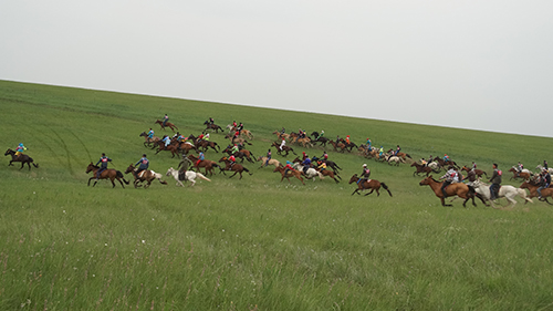 中國草原大賽馬發(fā)起于 2005 年,地點(diǎn)在內(nèi)蒙古錫林郭勒盟西烏珠穆泌旗的天堂草原。由于從起點(diǎn)的成吉思汗嘹望山下到西烏珠穆沁旗巴拉嘎爾高勒鎮(zhèn)主會(huì)場恰好是 30.5 公里的距離,“西烏珠穆沁旗 30.5 公里中國草原大賽馬”便由此誕生了。 首屆比賽以 206 匹馬參加單場比賽,打破了 1939 年英國利物浦單場參賽 66 匹馬的世界吉尼斯紀(jì)錄,成為中國草原長距離賽馬的第一品牌賽事?;仡欉@項(xiàng)已長達(dá)十年的賽事,其間,北京大馬主——?jiǎng)⒅痉降陌⒗R挑戰(zhàn)失利印象最深,他的兩匹馬不到 20 公里先后因傷退賽;隨后濟(jì)南楊武慶的汗血寶馬氣勢逼人,結(jié)果藏在草叢中的鼠洞和高低不平的草地讓汗血馬還沒到?jīng)_刺階段,便無奈放棄了戰(zhàn)斗。 2013 年,總部設(shè)在北京的西部馬術(shù)促進(jìn)會(huì)派出 15 匹半血馬前來挑戰(zhàn),結(jié)果只有一匹取得了第十名的不錯(cuò)成績,經(jīng)查,還是租借呼倫貝爾的一匹草原馬;2015 年,北京金盾馬術(shù)電視頻道俱樂部選出三匹半血馬參賽,這是第四次城市馬向草原馬發(fā)起的挑戰(zhàn)。 2015 年 7 月,西烏珠穆沁草原風(fēng)景秀麗,水草豐美。今年的 30.5 公里大賽馬的賽道,由往年固定的西烏旗西邊的成吉思汗瞭望山改到了東南方向的烏蘭哈拉嘎蘇木。西烏旗書記周金樁解釋說:“我們希望把全國賽事與傳統(tǒng)的牧民那達(dá)慕大會(huì)融為一體,把賽事的全國影響力和當(dāng)?shù)啬撩裥腋V笖?shù)結(jié)合起來,尋找節(jié)省、高效、接地氣的活動(dòng)模式”。 為了適應(yīng)新賽道,參賽馬主們在比賽前一天就趕到了賽地。新賽道相比以往有了不小的變化,草地雖更遼闊但起伏更多,尤其在出發(fā)點(diǎn)就是一個(gè)很大的下坡,這不僅更難控制鳴槍后興奮的賽馬,造成比賽前半段過多耗費(fèi)體力,對十歲以下的小騎手更是個(gè)嚴(yán)駿考驗(yàn)。 賽前,來自全國各地的馬主和騎手陸續(xù)抵達(dá),本賽有五對人馬非常引人注目。首先是第一、二屆蟬聯(lián)冠軍的呼倫貝爾馬主——茫來,他己有六年未出山,是公認(rèn)的草原耐力賽的王者。第二位是來自中國馬都核心區(qū)錫林浩特市的白音希勒牧場的牧人——趙建平,他家里有四千多畝草場,養(yǎng)馬、調(diào)教馬是他最大的樂趣。2007 年他曾帶兩匹馬參加比賽,其中一匹奪得冠軍,另外一匹也取得了第四名的好成績。他還常去外蒙古參加比賽,經(jīng)驗(yàn)豐富,獎(jiǎng)牌也得了不少。他今年帶來參賽的是一匹純種蒙古馬,體格粗壯,耐力驚人。第三位是“快馬之鄉(xiāng)”西蘇旗的老漢格格日勒圖的半血黑馬,聽說他是吊馬高手,前年從北京森林牧場買了一匹難以馴服的半血馬,苦練一年,即將亮相。第四位就是北京金盾馬術(shù)頻道俱樂部的三匹半血馬,為了給馬熱身,十天前,馬主王志剛就帶著馬匹和騎手們奔赴第二屆中國馬都大賽馬賽場,并取得了第二屆中國馬都大賽馬 3200米速度賽的冠軍。這次前來挑戰(zhàn) 30.5 公里大賽,他在馬匹的選擇和訓(xùn)練上都做了充分的準(zhǔn)備。草原上地貌復(fù)雜,草地起伏大,還常有看不到的鼠洞,前幾年前來挑戰(zhàn)的半血馬和阿拉伯馬雖然起跑速度快,前半段占了優(yōu)勢,但最后都出現(xiàn)了大小傷情,被迫中途退賽,他希望改變這一切。第五位就是東道主西烏珠穆泌旗當(dāng)?shù)啬撩竦鸟R,西烏旗是中國白馬之鄉(xiāng),當(dāng)?shù)氐臑踔槟虑唏R是蒙古馬的核心類型,但遺憾的是,每次比賽當(dāng)?shù)伛R都能進(jìn)前六名,卻從未奪冠。 西烏旗旗長朝魯說,我們期待奪冠,但我們首要的,是讓中國第一品牌的中國草原大賽馬保證公平、公正的品質(zhì)。比賽地點(diǎn)在西烏旗,就會(huì)給當(dāng)?shù)貛砭薮笥绊懥?,也促進(jìn)了當(dāng)?shù)芈糜螛I(yè)和馬產(chǎn)業(yè)的發(fā)展,這比冠軍更重要。 7 月 17 日清晨,來自四面八方的騎手陸續(xù)抵達(dá)賽場。發(fā)令槍響,190 匹賽馬奮力狂奔,噠噠的馬蹄伴著小騎手的呼喊聲響徹草原。在出發(fā)后的 5 公里處,當(dāng)?shù)啬撩竦?14 號(hào)蒙古馬一直遙遙領(lǐng)先,緊隨其后的是西蘇旗和阿巴嘎的幾匹馬,茫來的 124 號(hào)馬和趙建平的 17 號(hào)馬位于中段。而王志剛的馬出發(fā)有些晚了,和前面的馬拉開了大約 600 多米的距離。起跑十公里后,一直領(lǐng)先的 14 號(hào)馬,在極速中馬蹄突然踩進(jìn)鼠洞,身體向前猛的閃了一下,雖然騎手迅速拉正,但速度還是慢了下來。此時(shí),來自“快馬之鄉(xiāng)”西蘇旗的兩匹 10 號(hào)和 11 號(hào)馬已遙遙領(lǐng)先,哈巴嘎的130 號(hào)紅馬和 16 號(hào)花馬緊隨其后。領(lǐng)先的還有東道主西烏旗烏蘭哈拉嘎的 9 號(hào)黑馬。趙建平的 17 號(hào)開始加速,124 號(hào)芒來的黑馬也緊追了上來。在最后精彩的五公里中,來自東道主西烏旗的蒙古黑馬不甘示弱,一度領(lǐng)先,緊跟在 10 號(hào)和 11 號(hào)賽馬之后,阿巴嘎的蒙古花馬也開始沖刺。但最終,還是西蘇旗馬主格格日勒圖的 10 號(hào)馬問鼎冠軍,他的11 號(hào)也位居亞軍。第三名是阿巴嘎旗布達(dá)希拉圖的 130 號(hào)蒙古紅馬,第四名是西烏旗阿木古楞的蒙古黑馬,錫林浩特市趙建平的 17號(hào)黃馬取得第五,呼倫貝爾芒來的 124 號(hào)黑馬第六,阿巴嘎馬主革命的 16 號(hào)花馬第七,蘇尼特