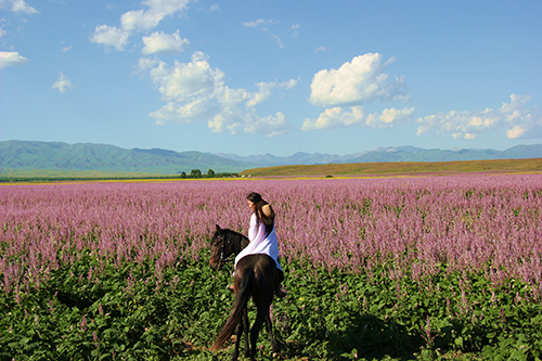 父親十七歲在新疆部隊(duì)做弼馬溫,看管軍馬。而我現(xiàn)在湖南也做了個(gè)弼馬溫,除了主持工作之外還經(jīng)營(yíng)著一家馬術(shù)俱樂(lè)部:新江國(guó)際馬術(shù)俱樂(lè)部。 新疆于我,是遙遠(yuǎn)記憶深處的夢(mèng)。母親對(duì)我說(shuō):丹丹,你滿周歲那天,在新疆草原上學(xué)會(huì)了走路。父親告訴我:丹丹,你還不會(huì)走路之前,我就把你放在軍馬的馬背上開(kāi)始學(xué)騎馬了。 可自六歲隨父親轉(zhuǎn)業(yè)回到湖南,新疆的草原,就已經(jīng)成為我靈魂里抹不去卻又看不見(jiàn)的夢(mèng)境!然而,這夢(mèng)在 2015 年夏天突然被照進(jìn)現(xiàn)實(shí)。 尋夢(mèng)之旅啟程 7 月初,我受到邀請(qǐng)前往昭蘇主持并解說(shuō)中國(guó)馬會(huì)在伊犁天馬節(jié)上舉辦的絲綢之路·中國(guó)杯速度賽,驚喜與忙亂中整理行裝,拿著機(jī)票登上飛機(jī)時(shí),仍然恍若夢(mèng)中,感覺(jué)那么的不真實(shí)。 從湘江之南到天山之北,早八點(diǎn)至晚八點(diǎn)十二個(gè)小時(shí)的輾轉(zhuǎn)顛簸,我竟一路都未合眼,莫名的興奮。直到在機(jī)窗外看到白云下面連綿起伏的祁連雪山、再轉(zhuǎn)乘小飛機(jī)抵達(dá)伊寧時(shí)才意識(shí)到,此刻的我已經(jīng)切切實(shí)實(shí)地踏在第二故鄉(xiāng)的土地上,湖南弼馬溫的尋夢(mèng)之旅已經(jīng)啟程。 天山是世界七大山系之一,位于地球上最大的一塊陸地,歐亞大陸的腹地。天山東西橫跨中國(guó)、哈薩克斯坦、吉爾吉斯斯坦和烏茲別克斯坦四國(guó),全長(zhǎng)2500 公里,綿延中國(guó)境內(nèi) 1700 公里。天山山脈把新疆大致分成南疆和北疆,南邊是塔里木盆地,北邊是準(zhǔn)噶爾盆地。 天山的托木爾峰、博格達(dá)峰和汗騰格里峰終年積雪,云霧繚繞。夏季來(lái)臨,雪山融雪孕育的河流在天山腳下蜿蜒,滋潤(rùn)著廣袤的草場(chǎng),形成翡翠般的湖泊和險(xiǎn)峻的峽谷,哈薩克族、蒙古族的牧民們?cè)谶@里生活棲息,轉(zhuǎn)場(chǎng)放牧,全然雪域高原田園牧歌式的場(chǎng)景。 來(lái)機(jī)場(chǎng)接我的是兩位帥哥,告訴我要開(kāi)車穿過(guò)伊寧河,翻過(guò)天山的一座主峰才能抵達(dá)昭蘇縣城。于是,沿途的雪山、草甸、湖泊、峽谷,都被我拍進(jìn)了相機(jī)里!一切都是如此的遼闊和純凈,情不自禁一起放聲高歌:咱們新疆好地方吖,天山南北好牧場(chǎng)! 從冬天直接過(guò)度到夏季的昭蘇大草原,此時(shí)正是綠草如茵,牛羊遍野的最美時(shí)節(jié)。雪山近在眼前,云兒觸手可及,馬兒在山坡上自由地吃草,一幅純美的自然畫卷?yè)涿娑鴣?lái)。 我們的頭頂一路陽(yáng)光燦爛,但車窗前的路面上卻濕漉漉的,司機(jī)說(shuō)雨一直在我們的前方下著,這是山神在幫我洗凈旅途的風(fēng)塵。 昭蘇,這個(gè)新疆雨量最為充沛的縣域,也是新疆唯一沒(méi)有荒漠的縣域,烏孫古國(guó)的遺址,天馬的故鄉(xiāng)?,F(xiàn)在我終于走進(jìn)這片被上天過(guò)分寵愛(ài)的土地,去領(lǐng)略它大氣坦蕩的美,渾然天成的美,并不只是靜靜欣賞,卻也可以去觸摸去叨擾。 絲路歡歌天馬情 天馬節(jié)召開(kāi)的消息早在兩個(gè)月前就傳了出去,方圓幾百公里的牧民們都穿著節(jié)日盛裝攜家?guī)Э趶乃拿姘朔节s來(lái),哈薩克族、維吾爾族、蒙古族等各民族的同胞們共聚一場(chǎng)屬于他們的盛大節(jié)日!所以這小小的縣城房源爆滿,遠(yuǎn)郊的鄉(xiāng)村氈房也都住滿了前來(lái)過(guò)節(jié)的人們! 7月12日,2015 新疆伊犁天馬國(guó)際旅游節(jié)在昭蘇盛大開(kāi)幕,天馬文化旅游園人山人海,座無(wú)虛席,來(lái)自國(guó)內(nèi)外的嘉賓、游客、演職人員近萬(wàn)人參加了開(kāi)幕式。在藍(lán)天白云、連綿雪山、絢爛花海、無(wú)際草原的映襯下,開(kāi)幕式成了一幅絕美的畫卷,一片歡樂(lè)的海洋。 昭蘇是古絲綢之路的北道重鎮(zhèn),絲路上的古驛站。兩千年多來(lái),人們?cè)跒鯇O山下這片遼闊的草原繁衍生息,創(chuàng)造出絢麗多彩的文化,孕育了淳樸的民族風(fēng)情,積淀了厚重的歷史記憶,保持了自然與人類的和諧共存。 開(kāi)幕式主題是“絲路歡歌天馬情”,現(xiàn)場(chǎng)彩綢翻飛,綠裙飛揚(yáng),綠衣少女們用靈動(dòng)的舞姿闡釋著昭蘇的生命之色。兩千多年前,這片綠色大地成為絲綢之路北道要徑。古往今來(lái),綠色滋養(yǎng)昭蘇生靈,凝聚各族人民,這抹綠是絲綢之路的永恒記憶?!安皇菑堯q通西域,安得佳種自西來(lái)”。2100 多年前,張騫兩次出使西域,打通了這條聯(lián)接西域與中原文明的商貿(mào)文化通道,成就了新疆與祖國(guó)內(nèi)地血肉相連的千古佳話。從此,絡(luò)繹不絕的各國(guó)商賈通過(guò)絲綢之路進(jìn)行各類商品貿(mào)易,使這條綿延萬(wàn)里的“絲綢之路”不再荒涼,讓文明在此匯聚。 開(kāi)幕式上,中國(guó)馬業(yè)協(xié)會(huì)理事長(zhǎng)賈幼陵為“天山論馬”高峰論壇永久會(huì)址授牌,昭蘇自此成為中國(guó)“天山論馬”高峰論壇永久會(huì)址。自治區(qū)旅游局黨組成員、紀(jì)檢組長(zhǎng)陶軍英為夏塔 4A 級(jí)景區(qū)授牌。 州黨委書記黃三平和中國(guó)馬業(yè)協(xié)會(huì)理事長(zhǎng)賈幼陵一起敲響開(kāi)賽銅鑼,中國(guó)馬業(yè)協(xié)會(huì)一級(jí)賽絲綢之路·中國(guó)杯速度賽(純血馬組 2