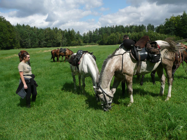 2008年在摩洛哥騎馬穿越時,聽一個德國人說起在波蘭騎馬的經(jīng)歷,他給了我?guī)讉€關(guān)鍵字:速度快、驚險、刺激。雖時隔已久,但想去波蘭騎馬的心意卻從未有過動搖。于是在忙完德國的公干之后,我上網(wǎng)找到了一個口碑和價格均不錯的波蘭馬場,成功完成在線報名,至此,正式踏上了別具一格的波蘭馬背穿越之旅。 德國的工作結(jié)束后我馬上訂了從柏林到波蘭的火車票,利用了剩余的空閑時間騎馬。出發(fā)那天柏林下著小雨,但絲毫沒有影響到我此行激動的心情,更讓我意外的是,車廂里還遇到了兩個和我同一目的地的德國馬友?;疖嚲従忞x開柏林總站,兩個小時后隨著窗外景觀的變化,我的手機(jī)收到了中國移動發(fā)來的短信,內(nèi)容是祝我在波蘭旅行愉快,緊接著,波蘭到了!在一個邊境小站,我們從德國的國際列車換上了波蘭的國內(nèi)列車。在這里,我要特別給大家推薦一個低碳經(jīng)濟(jì)的行程路線,那就是從歐洲去波蘭最好先乘國際列車到邊境附近換乘波蘭國內(nèi)列車,這樣就能節(jié)約不少錢,因?yàn)椴ㄌm的國內(nèi)列車很便宜。 落馬 在波蘭小城斯盧普斯克(音譯),我們一行下了車。這時我打了一連串噴嚏,糟糕,花粉過敏。親愛的波蘭,要知道,鼻炎患者是不需要用鮮花來歡迎的。更糟的是由于我出發(fā)時太倉促,忘記了帶藥。同行的兩個德國馬友非常友好地表示要幫我看管行李,讓我去尋找藥店。在離車站不遠(yuǎn)處,我找到了一個小藥店,老板50 多歲,不會說英語但笑容可掬。我盡力比劃著表達(dá)了我的意圖,老板很聰明,馬上給了我一種噴劑,使用后立竿見影。也是在這里,我學(xué)會了第一句波蘭語:“典庫嚴(yán)姆”,是謝謝的意思。經(jīng)過半小時左右的等待,一個有著斯拉夫面孔、高大強(qiáng)壯的波蘭小伙子開車來接我們,他叫亞羅斯拉夫,我還是頭次聽到這種名字,據(jù)說這是個典型的波蘭名字。 我們的大本營是馬場老板的家,位于一個環(huán)山臨湖,覆蓋著大片森林的小鎮(zhèn),簡單的休整后大家齊聚老板家后院草坪上的小餐廳開了個小會。老板對照地圖給大家講了穿越路線, 還說了些具體注意事項(xiàng),并耐心地詢問每個人騎馬的水平和經(jīng)驗(yàn)。會后我們享用了豐盛的波蘭餐和當(dāng)?shù)氐氐赖募t酒。席間小馬在草坪的遠(yuǎn)處散步,據(jù)說它們還在訓(xùn)練中。飯罷,老板要求大家去馬場試騎一下。 馬場位于森林邊,馬兒高大強(qiáng)壯,大多是著名的大波蘭馬(wielkopolski)。老板根據(jù)每個人的經(jīng)驗(yàn)和體重給大家分配馬匹,領(lǐng)到馬匹后大家開始刷馬、備馬、上銜鐵,上銜鐵時我稍感有些生疏,因?yàn)椴ㄌm的銜鐵和籠頭是分開的,需要單上,而且還有一些不熟悉的扣兒,好在我不算笨,很快就學(xué)會了。我的馬兒名叫“沖鋒號”,是一匹高大的棗紅馬。別看我身高180 公分,可要爬上去還得借助凳子、樹墩等輔助物。這些基礎(chǔ)工作熟悉之后,老板介紹我們認(rèn)識了領(lǐng)隊(duì),她叫馬婭,是個有紋身的波蘭女人,握手瞬間我發(fā)現(xiàn)她的手掌居然比我的還大。隨著領(lǐng)隊(duì)的指令我們開始在圍欄內(nèi)排隊(duì),做慢步、快步、輕快步和跑步的練習(xí),目的是人馬磨合。悠閑多日的馬兒們異常興奮,特別是我的馬總要沖到前面,但我擔(dān)心它沖上去會破壞整個隊(duì)伍的節(jié)奏,所以我不斷地控制它,竭盡全力避免它沖出去,只是“沖鋒號”突然一低頭,很有個性地尥了一個幅度很大的蹶子,速度似閃電地躥了出去。事實(shí)證明,這個蹶子很漂亮也很成功,我飛了出去,還好我反應(yīng)夠快,落地的瞬間打了個小滾兒,順勢站了起來。 檢查后發(fā)現(xiàn)除了肩膀一點(diǎn)擦傷外,別的部位均無大礙。老板過來很關(guān)切地問:“沒傷著吧?這馬營養(yǎng)好,閑的時間較長,不過,是匹好馬?!彼€說現(xiàn)在如若想換馬還來得及。我覺得如果換馬,這件事多少會給我心理留下點(diǎn)陰影,既然他說是好馬,我信他,接受這個挑戰(zhàn),繼續(xù)和“沖鋒號”磨合。于是我撿起丟掉的“小面子”放進(jìn)口袋,重新跨上馬背,因?yàn)槲疑钚盼业慕叹殫罡卉娬f過的話:“沒有馬的問題,只有人的問題。”曾在火車站接我們的小伙子亞羅斯拉夫走過來,拍著我的肩膀說:“你是不是學(xué)過功夫?我覺得你摔得很好看?!边@時我的“小面子”從口袋里探出頭來,小得意了一番。 回到駐地已經(jīng)很晚,餐廳里擺著豐富的晚餐,有香腸、烤肉、奶酪等等。值得一提的是波蘭的啤酒,這里的伏特加略帶甜味,喝后胃里暖烘烘的,很舒服。利用吃喝的機(jī)會我也終于把人都認(rèn)全了,馬隊(duì)共8 個人,除了我這個中國人外,就有6 個是德國人,而另1 個是來自波蘭的女中學(xué)生,年紀(jì)最小,18 歲,叫納塔利亞。飯后,火車上遇到的一個德國朋友給我送來了跌打損傷藥膏,讓我很感動。同時,隱隱作痛的肩膀提醒我,今后的日子里控制這匹興奮的高頭大馬一定不能掉以輕心! 穿越 第二天,天氣晴朗。我們在領(lǐng)隊(duì)馬婭的帶領(lǐng)下進(jìn)了森林,首先映入眼簾的是遍布草地的紅色蘑菇,如此艷麗的色彩搭配不得不讓人眼前一亮,還有在繁華都市中不可多得的鳥語花香更是映襯出這里獨(dú)有的韻味。不一會兒,游思就被拉回到現(xiàn)實(shí),前方突然出現(xiàn)鹿群在飛跑,領(lǐng)