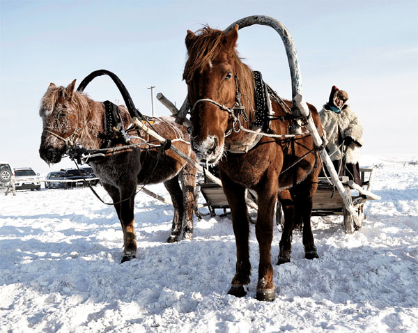 作為那達慕的傳統(tǒng)項目,“米日干”已經(jīng)在鄂溫克旗成為一種獨特的體育休閑娛樂的象征。帕米爾告訴我,“作為北京馬協(xié)的會員單位,他剛剛代表鄂溫克自治旗馬業(yè)協(xié)會從法國考察回來。法國的輕駕車基地非常先進,無論是硬件設施還是管理機制,亦或行業(yè)受重視程度都讓他自嘆不如?!倍潭處滋熘?,帕米爾驚嘆于國外的先進技術的同時,又深深感到了自己的壓力?!岸鯗乜似斓妮p駕車比賽環(huán)境還僅限在民間競技和旅游項目的娛樂,無論從經(jīng)濟上還是自然環(huán)境上都無法向國外看齊,這將是一個長期的發(fā)展過程。”帕米爾說:“但是,作為中國的‘輕駕車之鄉(xiāng)’,我們有責任和義務將鄂旗的輕駕車文化保護起來。鄂旗現(xiàn)在已經(jīng)培養(yǎng)了幾名專業(yè)的制作輕駕車的手藝人,還將申請鄂旗輕駕車的制造專利?!边@次出國考察回來,帕米爾還特地帶回了幾套法國輕駕車的配具,旨在效仿和學習國外的先進技術,讓鄂旗的“米日干”輕駕車能夠發(fā)揚光大。正像鄂溫克旗旗長色音圖在開幕式中的致辭說的那樣,我們應該盡最大的努力將傳統(tǒng)的民族文化保留下來,但也要注意與時俱進。今天,冬季那達慕的項目設置既有傳統(tǒng)項目,也有一些像“米日干”這樣相對較新的項目。我們的目的就是讓傳統(tǒng)的文化為廣大的牧民服務,使人們的生活更加美好?!?/div>