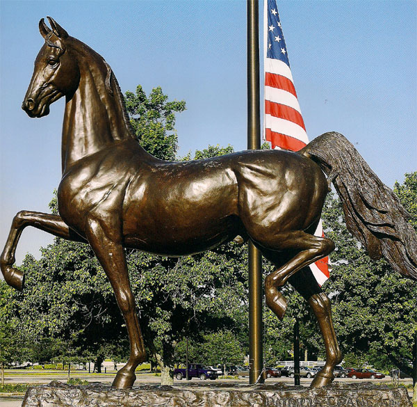 冬日,位于美國中部的萊克星頓(Lexington)沒有寒意,天還是那么湛藍,風也不知躲到哪里去了。周六,兒子休息,說帶我去市里逛逛。我分外高興,心想,異國市區(qū)繁華熱鬧,風情萬種, 一定會讓我大開眼界。我們漫步在起伏的公路上,置身于廣闊的大自然中,置身于萬籟俱寂中。我放眼望去,往日綠色的草坪夾雜些許黃色,樹林間隱約可見宅邸,偶爾路邊有白色的圍籬。松樹雖然翠綠,但因為是落葉松,所以松針稀稀落落掛在樹上,黃色的松針散落在樹下。 我們到了市區(qū),走了一段路,幾乎沒有行人,是在較高的建筑群中穿行,清冷帶來少許恐懼。見到幾家店鋪,但都關(guān)門。透過窗子,看到是賣衣服的,賣鐘表的,物品也不多。迎面來一位老女人,白皙的臉龐,藍眼睛,拖著行李箱,向我們討錢,說是打電話,要零錢,兒子給了她。 到了市中心一個不大的廣場,聽到淙淙的流水聲,尋聲望去,是人造的小型瀑布飛速其間。十幾個美國人,在樹下休息,樓前幾匹非常醒目的馬塑像吸引了我們。塑像有真馬那么大,金屬的,渾身涂滿鈾,白地還有紅綠藍黃等色的斑塊,不規(guī)則的斑塊邊緣是突起的金線,很像中國的景泰藍,在陽光下,熠熠生輝,光艷美麗。一匹狂奔揚蹄的馬,活靈活現(xiàn),雕塑者將靈魂里的歌聲流瀉到馬步上--大地就是琴鍵,馬蹄踩踏在音樂上,一股泉流般的樂音從馬蹄下升起,把你和馬一起浸入其中。這些馬塑像,真是巧奪天工,惟妙惟肖。 我有些不解,為什么市中心擺放馬的塑像?兒子告訴我,肯塔基州盛產(chǎn)早熟禾屬的草,這種得天獨厚的綠草(Blue Grass)是最好的馬料,而其他地方?jīng)]有這種馬最愛吃的草。據(jù)說如果將這種草移植到他處,也沒有長在肯塔基那樣的效果。肯塔基是“青草之州”,正因為擁有綠草(Blue Grass),肯塔基良馬中心能夠培育出世界一流的種馬。這里養(yǎng)馬、賽馬業(yè)以及與馬相關(guān)的產(chǎn)業(yè)非常發(fā)達,肯塔基擁有“世界馬都”之稱。我明白了前幾天在報紙上看到的肯塔基人的名言:“將自己的全部使命牢記于心,那就是將榮譽和崇敬帶給我們的馬兒,因為它們給予我們的要比我們能給予它們的多得多?!瘪R是萊克星頓甚至肯塔基州的標志! 兒子提議去馬公園,我的興致來了。心里想象著公園華麗高大的門,形態(tài)各異的馬,說不定還有中國的千里馬呢。沿著寂靜的人行道前行,撲入視野的是綠與淡淡的黃,遠處一帶綠色小丘,丘上馬兒一群,分散著。心想,這里真是養(yǎng)馬的地方。走到小丘,定睛看,哪是真馬?哪是活馬?是塑像!形態(tài)各異的塑像!有的馬仰首長嘶,有的馬低頭吃草,有的兩馬親昵,有的馬兩前蹄子高高抬起,做奔跑狀 一對小馬嬉戲,那份童稚天真,那份童趣,或許他們天生就是一對?雕塑者竟然塑造得如此這般鮮活,讓人油然而生愛意。它就像是鄰居家的青春少女,臉上洋溢著愉快的光輝,豐腴的前腿叫人想偷偷伸過手去摸上一摸。瞧,它那脈脈含笑的樣子,應(yīng)該是不會生氣的。我情不自禁地用手撫摸它,敲敲它。金屬雕塑,顏色黑中略帶綠,大約是銅的。 再看看周圍,空空蕩蕩,什么也沒有,連柵欄都沒有,幾尊塑像散落在小丘上。這哪是公園?我不解。兒子告訴我說:“美國的公園設(shè)計對場地和環(huán)境的現(xiàn)狀十分重視,不去輕易改變它們,而是盡可能發(fā)揮場地的特征和優(yōu)點,消除不利因素,將人工因素融合到自然因素之中?!蔽蚁耄@樣的公園,能使市民很快融入不受城市喧囂干擾的自然環(huán)境中,城市公園就成了自然的天堂,這種建設(shè)理念也正確。 次日,星期天,兒子開車帶我去美國馬鞍博物館(American Saddle Horse Museum)和肯塔基馬公園(Kentucky Horse Park)。從肯塔基大學出發(fā),走75號公路北120出口。在路上我們看見很多美國人開車去教堂。也看見一種專門運送馬匹的汽車,汽車的窗子很大,馬自由自在地將頭伸出車窗外,忽閃大眼睛,左顧右盼。馬兒,你是透氣,還是觀看一路風光呢?這是肯塔基公路上的獨特風景。 肯塔基馬公園,一米左右的矮墻,上面刻有建公園的時間,非常簡單的英文。我一計算,竟然有百余年的歷史了。公園很大,占地面積1032英畝,大得讓人感到空曠。公園正中央, 一尊巨大的馬塑像屹立于壇上。那是曾經(jīng)在美國獲得三連冠的賽馬John Henry的塑像,它揭示了這公園是以馬為主題的公園。在壇前面還寫著“走近馬”、“進入馬的世界”的英文。 塑像顯現(xiàn)賽馬John Henry無與倫比的強壯和俊美勻稱,頸項上披散的鬣鬃長長的,散發(fā)著力與威嚴,雄渾的馬蹄洋溢著奔放與靈氣,它英氣勃勃的神態(tài),讓我堅信這匹馬能思考,有感情。雕塑者用他精巧的手,聰明的智慧,將這匹馬的筋骨、血脈、氣韻、精神惟妙惟肖地鑄成銅像。銅像是力與美的巧妙結(jié)合。瞻仰銅像,我仿佛看見賽馬John Henry平日輕快地小跑,噴著鼻息,四蹄發(fā)出有節(jié)奏的聲音,看見它在賽場上跳躍,起伏,奔馳,最后大顛地狂奔,更看見它獲得冠軍榮耀自豪的樣子。塑像左側(cè),是“馬國際博物館”和“美國鞍馬博物館”,介紹太約50個品種的馬,有兒童騎的矮馬,成人騎的高馬,純種賽馬等。還有些關(guān)于馬母與子親情,純種馬冠軍,以及偉大的賽馬John Henry退休后,在這里享受到特別照顧的介紹。最后,我們還觀看了馬的短片電影。 我們從這里得知:肯塔基馬公園,近日榮獲了由三家最著名的純血馬產(chǎn)業(yè)