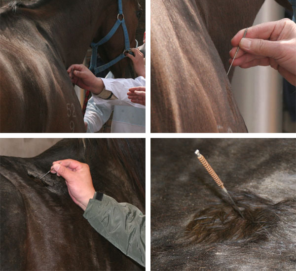 時(shí)至今日,馬術(shù)運(yùn)動(dòng)已經(jīng)慢慢融入我們的生活,作為一項(xiàng)貴族運(yùn)動(dòng)被大家熟知和認(rèn)知。馬匹奮斗不止自強(qiáng)不息的精神帶給我們?nèi)祟悾绊懼祟惖陌l(fā)展,同樣人類也有著一成不變的愛(ài)心、熱心照顧著馬匹的健康成長(zhǎng),繁育著一代又一代的良馬,奠定馬的豐富文化底蘊(yùn)。我國(guó)傳統(tǒng)的醫(yī)療保?。ㄈ玑?灸)更是功不可沒(méi),傳承至今,如今我們要做的不只是單一醫(yī)療、保健,還要作為一種學(xué)術(shù)延傳后代,弘揚(yáng)國(guó)內(nèi)外。 針療簡(jiǎn)介 在中醫(yī)療法中針療,對(duì)運(yùn)動(dòng)馬匹有著明顯的效果,同時(shí)需要看接受馬匹對(duì)針的感受能力,反應(yīng)能力,體制好的賽馬效果更為明顯,正所謂“用之有道,取之有方”。通常臨床針?lè)ㄓ邪揍?火針,電針,水針。不同的癥狀施以不同的針療法,像關(guān)節(jié)處不宜用電針,蹄關(guān)節(jié)以下多用血針,球節(jié)以下只能皮下注射,但共同的要求是手術(shù)之前將馬匹妥善保定,需要診療的部位一定要用酒精棉球消毒,每項(xiàng)手術(shù)都要嚴(yán)謹(jǐn)。眾所周知,“尺有所短,寸有所長(zhǎng)”一體化的療法,至善至美,比如說(shuō),對(duì)突然腰跨閃傷的馬匹從尾根無(wú)毛的尾本穴, 正中稍偏,針刺出血,扎此處出血更好,不出血也有效,同時(shí)也可以用百會(huì)穴,尾根穴 尾尖穴配合治療,由此可見(jiàn),關(guān)于穴位的配合也是治療的關(guān)鍵。再比如搶風(fēng)穴,位于馬前肢外側(cè),間關(guān)節(jié)斜后下方,凹陷正中處,用圓利針或火針直刺3-4cm,毫針8-10cm處,對(duì)閃傷夾氣,前肢麻木,風(fēng)濕等癥有很好的療效。針療不僅僅要求術(shù)者對(duì)針的正確使用和操作,同時(shí)要精通馬匹的穴位。 操作及應(yīng)急 為確保馬匹和術(shù)者的安全,以及保證針療的順利進(jìn)行,首先是對(duì)馬進(jìn)行適當(dāng)?shù)谋6ǎ瑢⑵浔6ㄔ谒闹鶛诨蛄鶛谠龠M(jìn)行手術(shù),施針前選擇適當(dāng)?shù)尼樉卟z查有無(wú)生銹、帶鉤、針柄松動(dòng)或彎折現(xiàn)象,有上述情況禁止使用。消毒很必要:一般用75%酒精消毒,必要時(shí)可用蒸氣和煮沸消毒,當(dāng)然對(duì)術(shù)者手指和即將針術(shù)剪毛后的穴位用酒精,碘酒涂擦,待干后施針。通常對(duì)運(yùn)動(dòng)馬匹的骨胯閃傷,后肢風(fēng)濕,腰胯風(fēng)濕用的火針療法,就有著代表性的操作技能,選擇針具,檢查,消毒,擦干后,用棉花將針尖及針體包纏成棗狀,長(zhǎng)度由針刺深度決定,一般略長(zhǎng)于針刺深度,占針節(jié)的三分之二,棉球的直徑約1--1.5cm,要求棉花內(nèi)松外緊,前端捋尖,以便于點(diǎn)燃,后端收緊,但棉花和針柄之間留一定的空隙,就可在選定的穴位消毒后,浸入石蠟油中點(diǎn)燃,針尖向下并不斷轉(zhuǎn)動(dòng),等燒完后用鑷子刮脫收縮變黑的棉球,迅速刺入,停留15分鐘,為了促使局部組織發(fā)生較深的灼傷,在一定的時(shí)間內(nèi)保持對(duì)穴位的持續(xù)刺激,在起針時(shí)將針體輕輕捻轉(zhuǎn),一只手按壓穴位皮膚,另一只手將針體拔出,術(shù)后護(hù)理也很重要,為防止感染,將針孔消毒,用藥膏,膠布封閉。從此操作過(guò)程看要求術(shù)者要具備有準(zhǔn)確定位穴位、角度、深度、進(jìn)針的緩急、留針的尺寸、 行針的方法針刺的強(qiáng)度、退針的指法。手術(shù)過(guò)程中穴位的選取要取決于獸醫(yī)的手感,用手觸摸時(shí),要觀看馬匹有沒(méi)有壓疼,是不是有小結(jié)節(jié),腫塊等。在施針的過(guò)程當(dāng)中可能會(huì)出現(xiàn)一些意外的情況,一旦發(fā)生切記“冷靜”并及時(shí)采取措施:如馬匹騷動(dòng)不安或肌肉收縮引起的彎針,火針后針孔化膿等。所以對(duì)于術(shù)者要有應(yīng)急的措施,以不變應(yīng)萬(wàn)變,對(duì)于彎針,術(shù)者不要用力拔針,待馬匹安靜后,輕輕捻轉(zhuǎn)針體,按順時(shí)針?lè)较蚓従彴纬?;如果火針后針孔有化膿,?yīng)清潔針孔,排除濃汁,再用碘酒。必要時(shí)需切開(kāi)排膿。經(jīng)過(guò)多年的針刺療法,總結(jié)出寶貴臨床經(jīng)驗(yàn),為今后運(yùn)動(dòng)馬匹的傷病作出更準(zhǔn)確的診療法。 用途與療效 針療在臨床應(yīng)用中對(duì)運(yùn)動(dòng)馬匹有著獨(dú)特之處,如肩膊閃傷,使用針療方法療效更佳顯著,該法除有針刺作用外還有電流的理化治療作用。同一病癥可以有不同的針療方法,但是相同的針療也要具備不同的場(chǎng)合才可以使用,比如說(shuō)風(fēng)濕癥可以用電針療法,也可以用火針療法,可是火針療法在北方使用的更多些,在南方只有冬季和春季多用些。同樣水針療法是針和藥物相結(jié)合的新法,在穴位痛點(diǎn)或肌肉起止點(diǎn),注射起到雙重的作用,而且此法用藥量小,對(duì)肌肉注射1/5—1/3就可以看到明顯的療效,此法對(duì)風(fēng)濕癥,神經(jīng)麻痹等多種常見(jiàn)病和多發(fā)病癥有顯而易見(jiàn)的成效。因此,有著治病廣泛、療效迅速、操作安全、簡(jiǎn)便易學(xué)、便于推廣等特點(diǎn)的針療,今后必將得到國(guó)內(nèi)外業(yè)內(nèi)人士的重視。 文/趙建強(qiáng),圖/李勇鋼 |