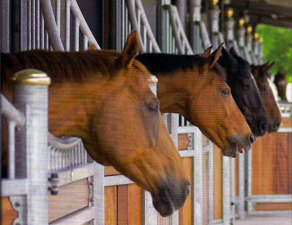 一匹運動馬每天進(jìn)食的飼料是其身體重量的2.5%,這重量是包括粗糙的飼料和濃縮的飼料。每日科學(xué)合理的飼養(yǎng)說起來很容易,但做起來很難。怎樣才能科學(xué)合理的飼養(yǎng)呢? 中國有句老話“病從口入”。有很多馬生病都與飼養(yǎng)有著密不可分的直接關(guān)系,如果你仔細(xì)觀察你的馬場或你的馬,在每年間有多少腹痛等疾病,就能看出你是否科學(xué)的飼養(yǎng)。 有部分馬不吃料也長膘,但是運動起來全身痛,昨天前腿痛,今天后腿痛,接著腰痛、肌肉痛。這是什么問題呢?這與飼養(yǎng)管理、飼草料中的營養(yǎng)均衡,加運動量的大小有關(guān)。除此之外,運動員和飼養(yǎng)員的溝通,也是必不可少的。如果不管馬匹是否運動或者休息,飼養(yǎng)員都按照統(tǒng)一的飼養(yǎng)方法每天定時定量的給馬匹喂食,馬匹就會出現(xiàn)各種不適,如上述所說馬匹出現(xiàn)的“胖痛”等癥狀。 賽期飼養(yǎng)管理 通常馬匹在比賽之前,要特別注意飼養(yǎng)的方法,不要隨意更換飼料成份及重量。注意飼喂方法,賽前一般3-4小時喂完飼料,此頓喂量不易過大,否則會造成消化道負(fù)擔(dān)過重,易發(fā)病。體重增加,降低運動成績,腹部過大同樣會影響動作和靈活性。因此,比賽之前馬的日糧體積要小,同時質(zhì)量要高,營養(yǎng)要全面。 當(dāng)馬匹劇烈運動后需及時補充能量,吃一些容易消化吸收的碳水化合物飼料,如:燕麥、大麥等。用糖和維生素一起補充運動馬有助于消除疲勞。除此之外,鹽也是不可缺少的,運動馬出汗多,通過汗液排出鹽分,應(yīng)注意補充。馬匹有個體差異,應(yīng)按照馬匹特點分別規(guī)定日糧,不能絕對平均。運動馬要嚴(yán)格強調(diào)遵守飼養(yǎng)制度和飼喂方法,飼喂時間、飼喂順序要嚴(yán)格固定,不要隨意改動。 特別注意馬匹劇烈運動后,應(yīng)限制飲入大量冷水,因為運動后的馬匹會出大量的汗,讓其立即飲用大量冷水會引起馬匹的多種不適的。應(yīng)首先讓馬飲幾口水,然后在10分鐘之內(nèi)讓其飲足水。馬匹劇烈運動后,最好飲用溫水。 非賽期飼養(yǎng)管理 運動馬匹由于比賽期間的劇烈運動,生理高度緊張,體力消耗大,容易疲勞。因此賽后要進(jìn)行細(xì)致管理和愛護(hù)。多飼喂一些蛋白質(zhì)含量高、容易消化的飼料,這樣消化率可以提高25-30%。 馬匹除了每日食用營養(yǎng)豐富的飼料之外,還應(yīng)該添加些多汁鮮美的兼食來為馬匹補充多種維生素及酸類物質(zhì),如:蘋果、胡蘿卜、西瓜等。其中蘋果富含多種維生素和酸類物質(zhì),有助于代謝掉體內(nèi)多余鹽分及時清除體內(nèi)的代謝“垃圾”。而胡蘿卜中含有蛋白質(zhì)、脂肪、碳水化合物、鈣、磷等多種營養(yǎng)成分,都是馬兒非常需要和喜歡的食物。特別是劇烈運動后的馬對維生素需量大增,如維生素不足,馬對傳染病抵抗力降低,創(chuàng)傷不易愈合。而且馬容易疲勞,關(guān)節(jié)發(fā)病工作能力下降,缺鈣時馬容易出汗。同時,磷對神經(jīng)和肌肉活動也是必不可缺的。 生病期飼養(yǎng)管理 一般馬因為各種不適或疾病進(jìn)入休息期,同時運動量也會大幅度減小,所以休息期應(yīng)減料三分之一至二分之一。并且改善為粗料喂養(yǎng),這樣可以避免馬匹體重增加、積蓄脂肪和造成“腹痛”。 通常在馬匹休息或閑散時期應(yīng)有計劃的進(jìn)行飼養(yǎng),并且特別注意谷類飼料的攝入量,在此期間運動員與飼養(yǎng)員應(yīng)積極溝通,做好休息期間的飼養(yǎng)計劃。將谷類飼料減少到三分之一至二分之一,并用粗糙飼料(如干草、青草等)來維持馬匹消化系統(tǒng)運作和馬匹健康的主要維生素。如果馬匹常要留在馬房,取消運動,即使是一天,這天的飼料必須減少濃縮飼料的成份,而用粗糙飼料代替。如果馬匹病情好轉(zhuǎn)時,應(yīng)逐漸加入精飼料。并保證馬匹的適當(dāng)活動,不應(yīng)長時間圈養(yǎng),應(yīng)輕度活動,有助于恢復(fù)體力,最好自由活動,每天自由活動。最好不少于2小時。 日常飼養(yǎng)管理 運動馬匹肌肉工作,取決于它的消化和代謝特點。馬的物質(zhì)能量代謝及飼料份量的正確比例是依據(jù)馬匹的品種、大小、年齡、性情、狀態(tài)和工作要求而定。同時日糧中粗飼料(如干草、青草等)、精飼料(如谷物、蛋白質(zhì)、脂肪等)和多汁鮮味的飼料(如新鮮青草、甜菜、胡蘿卜和蘋果等)必須根據(jù)馬的需要進(jìn)行平衡。 日常的飼養(yǎng)要模仿馬匹的天然進(jìn)食方式 “少吃多餐”。每日應(yīng)給馬匹備有充足清水;每次喂飼的份量要少許,但要保持一定的規(guī)律;飼養(yǎng)后,不要立刻做劇烈的運動和被運輸外出;不要給馬匹食用變質(zhì)和發(fā)霉的飼料;保持飼料盆和馬槽清潔,清理剩余食物;飼料應(yīng)儲存在干凈的地方,并保持飼草的干爽;定期給馬匹驅(qū)蟲。 在馬匹的飼養(yǎng)過程中,日糧纖維素最適合含量為日糧干物質(zhì)的16%,如超過16%則日糧利用率會降低。馬匹日糧中鈣磷比應(yīng)為1:1或1:0.75,馬匹非常需要多種維生素和賴氨酸。馬匹日糧要有全價性,過多的使用高熱量,高蛋白的精料并不好,如果運動量不足容易造成消化疾病和蹄葉炎。粗纖維飼料是必要的,因為粗纖維飼料能促進(jìn)胃腸的蠕動,提高吸收和排泄功能,從而把消化過程中產(chǎn)生的一