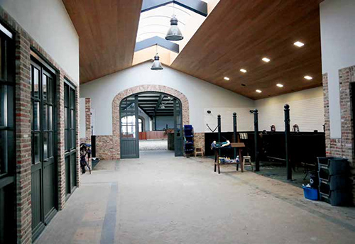 馬房供暖區(qū) 冬季,許多馬場(chǎng)會(huì)選擇在整個(gè)馬場(chǎng)空間內(nèi)進(jìn)行大面積的供暖。其實(shí),獨(dú)立的加熱裝置更為劃算,安裝起來(lái)也更方便。獨(dú)立的加熱裝置是通過(guò)燃?xì)饣蛘邿崴雇ㄟ^(guò)風(fēng)扇裝置排出的氣流升溫。馬場(chǎng)供暖還可以選擇利用熱水管散熱到四周這種方式,但是這種方法并沒(méi)有得到普遍應(yīng)用。溫度加熱到約 4.5-10℃就足夠把室內(nèi)的冷空氣驅(qū)散。為了確定所需的供暖指數(shù),我們需要計(jì)算具有代表性的室外溫度、理想的室內(nèi)溫度、建筑體絕緣水平以及能夠清除冬季水分的通風(fēng)率,以此來(lái)保持熱量平衡。 考慮到不打擾馬匹和騎手的訓(xùn)練,加熱裝置通常放置在建筑物的高處。這樣做的一大弊端就是暖氣排放在了高處,不能自然地降落到馬匹和騎手身處的區(qū)域(熱空氣上升)。對(duì)一個(gè)約 18.3 米 ×36.6 米長(zhǎng)的場(chǎng)地而言,應(yīng)計(jì)劃安放至少兩個(gè),最好是四個(gè)加熱器。這樣的安裝可以直接加熱馬場(chǎng)內(nèi)部的空氣,在馬場(chǎng)設(shè)計(jì)中廣受推崇并被普遍地使用。 單個(gè)加熱裝置利用小而行之有效的風(fēng)扇直接進(jìn)行水平上的增溫,但是卻不能使熱空氣散播到整個(gè)馬場(chǎng)。在馬場(chǎng)那樣大的一個(gè)內(nèi)部空間里如果只有單一的暖氣流通路徑,就會(huì)面臨許多挑戰(zhàn):馬場(chǎng)中的空氣會(huì)產(chǎn)生分層,暖空氣上升到天花板,騎手和馬匹很少能受益其中。安裝了風(fēng)扇的天花板可以使空氣均勻混合,把適宜的暖氣吹散開(kāi)來(lái),到達(dá)地面。加熱裝置在安裝時(shí)考慮到方便于維修,應(yīng)該能夠通過(guò)梯子到達(dá)或者是利用輪滑裝置牽引出來(lái)。燃?xì)庑图訜崞鲬?yīng)注意燃?xì)夤艿滥軌蛲ǖ矫恳粋€(gè)單獨(dú)的加熱器中。典型的加熱裝置功率一般為約73854200-263765000 焦耳/小時(shí)。 加熱裝置風(fēng)扇以及空氣在管道流通時(shí)所產(chǎn)生的噪音是室內(nèi)供暖系統(tǒng)的一大明顯弊端。對(duì)作為訓(xùn)練場(chǎng)、展示臺(tái)以及競(jìng)技場(chǎng)的室內(nèi)馬房來(lái)說(shuō),降低供暖設(shè)備的噪音尤為重要。 用來(lái)控制馬房室內(nèi)溫度的加熱裝置有望通過(guò)一種農(nóng)業(yè)級(jí)恒溫器達(dá)到理想溫度。恒溫器是一種相對(duì)比較便宜的溫度控制設(shè)備,但是設(shè)置之后的溫度設(shè)置表盤(pán)不夠高度精確,可以在恒溫器旁邊掛上一只簡(jiǎn)單便宜的溫度計(jì),來(lái)檢查恒溫器的控制和加熱功能是否正常。恒溫器大致放在人頭部的高度,這樣馬匹、騎手和教練才能感到溫暖、舒適。大部分恒溫器通過(guò)安裝在裝置上的線(xiàn)圈來(lái)檢測(cè)溫度,也可以通過(guò)遠(yuǎn)程傳感器來(lái)感知離它較遠(yuǎn)地方的溫度。恒溫器應(yīng)遠(yuǎn)離加熱裝置以及其他冷熱源,避免暴曬和輻射,否則將會(huì)雜糅進(jìn)輻射源的溫度,從而不能正確顯示出馬房的溫度。此外,灰塵堆積將會(huì)造成恒溫器反應(yīng)遲緩。 對(duì)于大型商業(yè)或公共展示區(qū)來(lái)說(shuō),供暖系統(tǒng)設(shè)計(jì)會(huì)更為復(fù)雜。大型商業(yè)或公共展示區(qū)通常會(huì)使用商業(yè)型建筑里典型的供暖設(shè)備類(lèi)型。農(nóng)業(yè)型環(huán)境中存在的挑戰(zhàn)在這里依然存在,比如室內(nèi)馬場(chǎng)中嚴(yán)重的灰塵和高濕環(huán)境將會(huì)帶來(lái)設(shè)計(jì)上以及維修上的挑戰(zhàn)。在擁有大量觀眾席,經(jīng)常舉辦各種賽事的馬場(chǎng)中,大部分熱量會(huì)直接輸送到觀眾席,輻射的熱量會(huì)散播到觀眾席上空,能夠讓顧客感到溫暖舒適。 不管供暖系統(tǒng)是簡(jiǎn)單還是復(fù)雜,風(fēng)扇、控制器以及供暖器的設(shè)計(jì)都應(yīng)適合農(nóng)業(yè)應(yīng)用。農(nóng)業(yè)設(shè)備通過(guò)材料和設(shè)計(jì)加工以適應(yīng)工作環(huán)境,比如耐濕防塵的發(fā)動(dòng)機(jī)外殼能夠在潮濕多塵的環(huán)境下工作許多年。 不管供暖系統(tǒng)是簡(jiǎn)單還是復(fù)雜,風(fēng)扇、控制器以及供暖器設(shè)計(jì)都應(yīng)選擇適合在潮濕多塵環(huán)境下應(yīng)用的設(shè)計(jì)。 考慮到暖氣的冷凝,如果想要降低熱量損耗,我們建議在邊墻和房頂使用大量絕緣設(shè)計(jì)。通風(fēng)口仍然需要保留,以清除冬季產(chǎn)生的水分。在有暖氣的馬場(chǎng)中使用機(jī)械通風(fēng)口要更加注意空氣的流通率,相比之下,自然通風(fēng)口能夠自然地進(jìn)行空氣流通??梢栽隈R場(chǎng)的機(jī)械通風(fēng)口中設(shè)計(jì)一個(gè)自控裝置,當(dāng)濕度達(dá)到了一個(gè)數(shù)值后,可以進(jìn)行自動(dòng)調(diào)節(jié)通風(fēng)。 加熱空氣會(huì)產(chǎn)生更多水分,增加濕度;所以室內(nèi)馬場(chǎng)一旦進(jìn)行供暖,就需要對(duì)空氣的冷凝控制進(jìn)行嚴(yán)密謹(jǐn)慎的管理和操作,當(dāng)不再供暖時(shí),應(yīng)檢測(cè)是否還存在周期性的冷凝。供暖停止后,馬場(chǎng)中的通風(fēng)口將潮濕的空氣替換成室外更為干燥的空氣。如果溫暖潮濕的空氣在馬場(chǎng)中冷卻,寒冷的邊墻和屋頂都將出現(xiàn)冷凝現(xiàn)象。 管道中的空氣 馬場(chǎng)中應(yīng)該使用能夠隔離