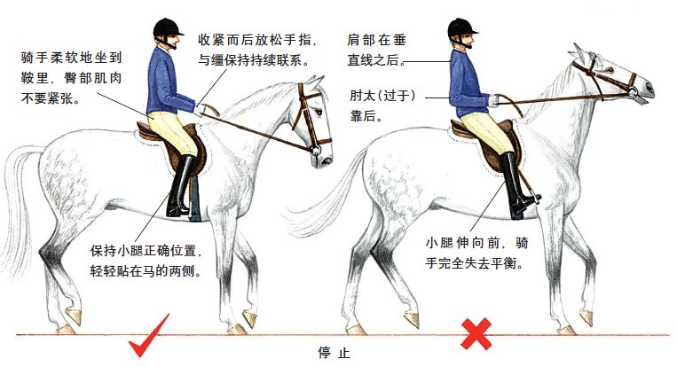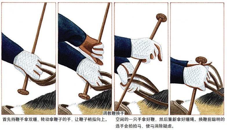 身體的重量 初學者特別應(yīng)注意坐在鞍子中間,平均分配體重。一旦扭曲畸形習慣養(yǎng)成是很難改正的。 扭曲習慣的騎手也會使馬變得扭曲,因為馬總是處于騎手重心之下并朝著重心方向前進。 坐姿不正的騎手可通過不一樣長的蹬帶看出。事實上,是很可能由于騎手滑向左側(cè)或右側(cè),就會把身體更多的重量放到相應(yīng)的腳蹬上。 轉(zhuǎn)彎和圈乘的練習中,當馬換方向時,普遍的錯誤是騎手會滑向鞍子外側(cè)。騎手內(nèi)側(cè)髖關(guān)節(jié)垮掉重量放到外側(cè)腳蹬。向內(nèi)側(cè)倒也是錯誤的。 總是偏向一側(cè)的騎手,他跳障礙時,馬匹通常是扭曲的。當馬騰空時,騎手偏向右側(cè)馬匹就會向右轉(zhuǎn)。這一點騎手可以加以利用。 必要時好的騎手會用重心給馬一個微妙的影響。特別是在高水平的訓(xùn)練或比賽時,對馬的影響會更大。選手使用重心時,會輕輕向前推動一側(cè)或兩側(cè)髖關(guān)節(jié)。 當騎手已經(jīng)養(yǎng)成扭曲畸形的壞習慣,首先要求他的坐姿兩側(cè)均平穩(wěn)正直,而只考慮重心輔助。 長期畸形的騎手,不僅對自己本身的能力與輔助運用有壞的影響,在這樣使用輔助時也會使馬偏于一側(cè),讓馬僵硬。 騎手的聲音 訓(xùn)練馬匹的過程中,人類的聲音扮演著重要的角色。 自從馬匹與人類相處以來,它就學會理解人類各種各樣的聲音語調(diào)。這些聲音與喂養(yǎng)時間、愉快、責備等緊密相連。一般情況下,當叫馬匹時它知道過來。對指令也有反應(yīng),例如“立定站好”。 當馬匹長大些,就要進行打圈訓(xùn)練,它要學習不同的要求指令,例如:“慢步”、“快步”、“跑步”、“立定”、“穩(wěn)定”和“很好”。一旦口頭要求變成一系列的身體指令時,我們稱之為“輔助”。但是相當長時間那些口頭命令就成為騎手的輔助,這些輔助可以讓馬更明白我們的要求。 即使訓(xùn)練到最高水平,同樣要用到聲音。聲音能夠讓馬愉悅、安靜、緩和、受到鼓舞或是責備,所有這些取決于騎手如何使用聲音輔助。 馬匹會很快獲悉騎手的感覺,對緊張或攻擊性詞語做出相應(yīng)的反應(yīng)。 騎手的驚恐或尖叫會使馬更緊張。他也可以用溫柔的話語讓馬很快地安靜下來。 要讓馬匹知道它做得很好,這一點至關(guān)重要。騎手的一句:“很好”會讓馬高興并受到鼓勵。責備的喉音則表明不高興。 要注意用相同的話語,相同的語調(diào),馬匹會對相應(yīng)的聲音語調(diào)有反應(yīng)。 初學騎手的基本輔助 初學者應(yīng)知道的第一件事就是如何讓馬匹停止。 騎手的身體是正直的,既不能前傾,也不向后仰。小腿輕輕地靠到馬匹兩側(cè),不應(yīng)夾緊或僵硬。保持與韁的聯(lián)系:輕握住手指,指尖觸到手掌,可控制韁繩的松緊。在馬匹完全明白你的指令之前,騎手可重復(fù)做收放手指的動作。一句溫柔的“哦”“停”都可以幫助馬匹理解指令。記住,每位騎手給馬輔助的方式都略有不同,必須讓馬調(diào)整并適應(yīng)這輕微的變化。 從立定到慢步或快步:騎手與韁保持穩(wěn)定的聯(lián)系,并在小腿的原位置,向內(nèi)輕輕地擠壓馬匹。馬匹做出相應(yīng)的反應(yīng)時,騎手必須注意不要向后拉動韁繩,但一定保持很好的聯(lián)系。 轉(zhuǎn)向:向左轉(zhuǎn)時,騎手應(yīng)保持體重均等地分配到兩坐骨上,左腿向里靠,腳趾不要向外轉(zhuǎn),握緊左手手指,加大與左側(cè)韁的聯(lián)系。當馬開始轉(zhuǎn)彎時它的脖頸會向前進的方向屈撓。騎手輕微地向前移動右韁, 給它一點。但是不能丟掉右韁,在騎手的手和馬嘴之間必須繼續(xù)保持很好的聯(lián)系。如果右韁太松,馬匹只把脖頸轉(zhuǎn)向左側(cè),然而繼續(xù)直線前進而沒有轉(zhuǎn)向。 人工輔助 馬刺和鞭子是大家熟知的人工輔助。初學者甚至初級騎手不應(yīng)用馬刺,當騎手失去平衡或不能控制腿時,他們就會濫用馬刺。 馬刺最長的金屬臂應(yīng)位于腳的外側(cè),馬刺尖朝下,并沿馬靴的縫合處。金屬扣和帶子的末端應(yīng)在腳的外側(cè)。馬刺的末端應(yīng)光滑,避免傷到馬匹。只用馬刺內(nèi)側(cè)碰到馬體。 對初級騎手而言用長鞭或短鞭,是更安全的。 調(diào)教鞭很長,當騎手手持韁繩時,鞭子同樣可到達騎手的腿后。 調(diào)教鞭不適用于跳障礙,應(yīng)用短的障礙鞭。 使用鞭子時不應(yīng)該盲目,當馬匹忽略騎手腿輔助時,騎手應(yīng)迅速清晰地用鞭提醒馬,這樣比頻繁地靠馬,讓馬失去感覺效果更好。 可以任意手持鞭,但必要時,應(yīng)該換手。如果馬匹不服從,例如,不服從右腿的輔助,鞭子應(yīng)很快換到右手去幫助腿的輔助。 |
