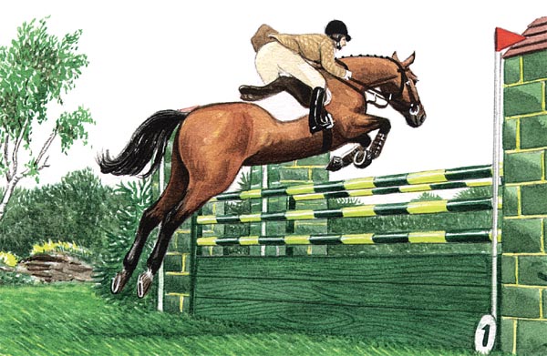 總是同一條腿落地 在跳障礙時(shí),許多馬匹總是習(xí)慣用左腿落地或習(xí)慣用右腿落地,這是馬匹的平衡導(dǎo)致的。有時(shí)候這個(gè)問題是因?yàn)轳R匹在跳躍到空中時(shí),身體扭曲而發(fā)生的。 跳全程時(shí),馬匹要有能力自己換領(lǐng)先腿,這一點(diǎn)是很重要的。否則騎手需幾次強(qiáng)迫馬匹來(lái)?yè)Q領(lǐng)先腿。而當(dāng)你在比賽中,這樣做就會(huì)破壞全程的節(jié)奏和流暢性,也會(huì)消耗時(shí)間。而這樣的時(shí)間罰分是沒有必要的,也是很昂貴的懲罰。在爭(zhēng)時(shí)賽中,加速的步法會(huì)自然調(diào)節(jié)馬匹的平衡,這時(shí)馬匹會(huì)自己換腿。 騎手是可以影響馬匹的腿向正確方向落地的,但不用夸張地把身體偏向一側(cè),正確的方式是,把重量穩(wěn)定的放在微微偏向要去的一側(cè)的腳蹬上。這么輕輕的重量就會(huì)影響到馬匹平衡,馬匹就會(huì)自然以正確的腿著地,向要去的方向前進(jìn)。 在拐彎處,擺一個(gè)交叉桿,在交叉桿的前后各放一個(gè)地桿,這樣的練習(xí)可以改進(jìn)馬匹以正確的腿著地。(如下圖) 這樣既可以練習(xí)馬匹起跳,也可以鼓勵(lì)馬匹向正確的前進(jìn)方向落地。這個(gè)練習(xí)也能預(yù)防馬匹在空中扭曲,并保持它的后軀穩(wěn)定,這是很有效的柔軟性練習(xí),且在障礙中只有騎手把重心穩(wěn)定地放到內(nèi)側(cè)腳蹬上,才能教馬匹很快找到正確的腿。 如果你懷疑馬匹有任何身體上的不舒服,從而引起以上的問題,請(qǐng)找獸醫(yī)檢查馬匹。 如果你第一輪罰分零分,那么就要盡快找到復(fù)賽的路線。這樣你就會(huì)有更多的時(shí)間研究路線,確切地知道去哪里,怎樣跳每一道障礙。要以縮短步而不是大步跳障礙,否則不能落地后盡快回轉(zhuǎn)。 比賽中的時(shí)間 大多數(shù)的比賽都由爭(zhēng)時(shí)賽決定勝負(fù)。罰分是零分雖是最重要的,但如果都是零分的話,騎手和馬匹都應(yīng)快速完成爭(zhēng)時(shí)賽的路線,從而去贏得勝利與獎(jiǎng)金。而一匹年輕且沒有經(jīng)驗(yàn)的馬匹,不應(yīng)該在爭(zhēng)時(shí)賽中爭(zhēng)奪。它可以在跳完障礙之后稍微快一些回轉(zhuǎn)或做小一點(diǎn)的回轉(zhuǎn),但不能失去節(jié)奏、平衡與動(dòng)力。因?yàn)楣?jié)奏、平衡與動(dòng)力在比賽中是最重要的。 每匹馬都有能力在規(guī)定時(shí)間內(nèi)完成全程比賽。如果無(wú)法在規(guī)定時(shí)間內(nèi)完成,那是因缺乏訓(xùn)練和練習(xí)的不夠,但是沒有必要像速度賽馬一樣去搶時(shí)間。而應(yīng)合理有效地運(yùn)用小回轉(zhuǎn)來(lái)節(jié)約時(shí)間。 在回轉(zhuǎn)時(shí),馬匹需要有很好的控制及服從性,而這些來(lái)自于你平時(shí)在家中的訓(xùn)練。服從性好的馬匹不會(huì)反抗騎手的要求,但馬匹必須具有很好的平衡,才能對(duì)你的要求做出反應(yīng),平衡同樣來(lái)源于正確的平地工作。平地工作可以讓馬匹更柔軟,有更好的運(yùn)動(dòng)能力和好的平衡。 在平時(shí)訓(xùn)練時(shí),練習(xí)馬匹落地后,左右小回轉(zhuǎn)去下一道障礙是非常重要的。你也需要練習(xí)馬匹以小角度跳躍障礙,以及把幾道障礙串起來(lái)跳。然后根據(jù)馬匹訓(xùn)練狀況來(lái)做最小的回轉(zhuǎn)。任何來(lái)自馬匹的反抗都會(huì)影響跳躍障礙,甚至出現(xiàn)錯(cuò)誤,而且會(huì)破壞全程的流暢性,以及損失更多的時(shí)間。 在練習(xí)落地后的小回轉(zhuǎn)時(shí),可以在地上放地桿和擺放很矮的障礙。如果馬匹能夠在這些練習(xí)中保持平衡了,那么即使跳高一點(diǎn)的障礙之后的回轉(zhuǎn),它也不會(huì)覺得很難。 最后思考 盛裝舞步或平地工作和場(chǎng)地障礙都應(yīng)是同步的。平地工作訓(xùn)練得好一些,馬匹會(huì)在跳障礙時(shí)發(fā)揮得更好,騎手也更容易掌握馬匹。練一匹服從而且有素的馬需要很多時(shí)間,甚至可能是幾年。有些馬匹比較容易訓(xùn)練,騎手騎這樣的馬匹也會(huì)有樂趣。它們可能天生有能力去跳躍,但不是每個(gè)騎手都那么幸運(yùn),能擁有這樣有天賦的馬匹的。所以我們要堅(jiān)持而且有耐心。訓(xùn)練一匹馬,而且要有目的且克服各種問題堅(jiān)持訓(xùn)練,這是很有挑戰(zhàn)性的,雖然做起來(lái)困難而且辛苦,但是如果你訓(xùn)練成功了,就會(huì)有很大的滿足感。 騎手和馬匹都需要做很多跳障礙練習(xí)。先從地桿練習(xí),到體操練習(xí),然后用不同步法跳不同種類的障礙,以及變換角度跳和各種回轉(zhuǎn),這些內(nèi)容都應(yīng)有計(jì)劃地練習(xí)。試著平時(shí)多跳一些小全程,不要只跳一道障礙或跳完一道障礙后,馬匹就變成凌亂的快步或不協(xié)調(diào)的跑步。每做完一個(gè)練習(xí),都要有很好地向下變換,而且不要讓馬匹來(lái)決定下一步去哪里。有機(jī)會(huì)的話,多看看專業(yè)人員訓(xùn)練。 觀看也能學(xué)到很多。最高水平的跳障礙就是一種藝術(shù)。而高水平的騎手有出色的技術(shù)和準(zhǔn)確性。我們奢望有那么高的水平,但是把低水平的做好了,也會(huì)有滿足感,也有很大樂趣。 不要因比賽中沒有平時(shí)訓(xùn)練做得好而失望,每個(gè)比賽環(huán)境是不同的,很多因素都可以影響人和馬匹造成緊張,如果能獲得多一些比賽經(jīn