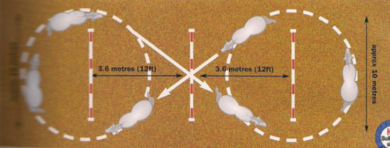 眾所周知,場(chǎng)地障礙需要馬匹要在有節(jié)奏的同時(shí)還能保持平衡,但能做到二者兼顧并不容易。比如說(shuō),有些馬匹平時(shí)謹(jǐn)慎小心,一旦開(kāi)始跳障礙就變得急躁起來(lái),往往容易要韁沖障。針對(duì)這一問(wèn)題,本文向讀者介紹提高馬匹場(chǎng)地障礙能力的一種常用練習(xí)——8字形練習(xí)。 8字形練習(xí) 如圖所示,這項(xiàng)練習(xí)需要擺放三個(gè)平行的障礙桿,每個(gè)障礙相距一個(gè)成年馬匹的跑步步幅,通常在12—14英尺,相當(dāng)于3.6—4.2米。雖然設(shè)置了三個(gè)障礙桿,但在這個(gè)練習(xí)中,馬匹僅需跳越中間的障礙,而環(huán)繞其余兩邊的障礙做圈乘運(yùn)動(dòng)。 從任何一邊的圈乘環(huán)繞開(kāi)始這項(xiàng)練習(xí),先從一個(gè)方向進(jìn)行10米圈乘,斜角跳越中間的障礙,然后變換方向,進(jìn)行另外一側(cè)的10米圈乘,如此循環(huán)。 也許聽(tīng)起來(lái),這似乎是一個(gè)高水平的訓(xùn)練,但實(shí)際上,無(wú)論之前是否接受過(guò)斜角跳越的訓(xùn)練,各種水平的騎手和馬匹都可以進(jìn)行8字形練習(xí)。如果是初學(xué)者,用45cm高的障礙桿同樣可以達(dá)到練習(xí)效果。 起跳線(點(diǎn))參照地桿 初學(xué)者還可以借助起跳線(點(diǎn))參照地桿輔助練習(xí)——可以將兩個(gè)地桿分別平行地放在中間障礙桿的兩邊用以提醒馬匹的起跳位置。 重復(fù)練習(xí) 每當(dāng)8字形練習(xí)進(jìn)行了十幾個(gè)來(lái)回以后,騎手和馬匹可以停下來(lái)休息幾分鐘,然后繼續(xù)練習(xí)。每次間歇時(shí)間,騎手可以把障礙桿調(diào)高以增加難度和挑戰(zhàn)。這樣,從較低的高度開(kāi)始跳越,相信通過(guò)持續(xù)的循序漸進(jìn)的練習(xí),馬匹就可以駕馭越來(lái)越高的障礙桿了。 8字形練習(xí)針對(duì)障礙跳越能力欠佳的馬匹具有很突出的校正作用: 1)針對(duì)易于左右擺動(dòng)不穩(wěn)定的馬匹 8字形練習(xí)有利于促使馬匹不得不在兩道障礙之間重新找回平衡,并以直線跳越障礙,從而有效改善并解決馬匹跳越障礙時(shí)左右擺動(dòng)的問(wèn)題。 2)針對(duì)易于要韁沖障的馬匹 由于在跳完一道障礙后總是讓馬匹先進(jìn)行一個(gè)10米的圈乘,再跳越第二道障礙,因此可以有效控制馬匹的速度和節(jié)奏,讓馬匹避免橫沖直撞到下一道障礙的這種情況。 3)教會(huì)馬匹空中換腿 練習(xí)中,跳完一道障礙后的10米圈乘留給馬匹充足的時(shí)間,促使它有意識(shí)地去檢查自己是否用錯(cuò)了腿,并重新平衡身體,因此有利于馬匹熟練掌握空中換腿的技巧。 進(jìn)階練習(xí) 經(jīng)過(guò)系統(tǒng)的8字形練習(xí)后,將場(chǎng)地上現(xiàn)有的障礙桿調(diào)整到同一個(gè)高度,然后騎乘馬匹依次跳越這三個(gè)障礙,騎手會(huì)發(fā)現(xiàn)馬匹已經(jīng)學(xué)會(huì)有節(jié)奏并且平穩(wěn)地跳越障礙了,而不再要韁沖障。 小貼士 不要無(wú)謂地重復(fù)同一個(gè)練習(xí)或是讓馬匹重復(fù)跳越同一個(gè)障礙,騎手應(yīng)該時(shí)不時(shí)地更換障礙的難度,讓它接受新鮮的挑戰(zhàn)。所以,每次練習(xí)結(jié)束后,要養(yǎng)成清理練習(xí)場(chǎng)地的習(xí)慣,這樣能促使在下一次訓(xùn)練的時(shí)候給馬匹擺出新的障礙桿組合,而不是沿用舊的。 |